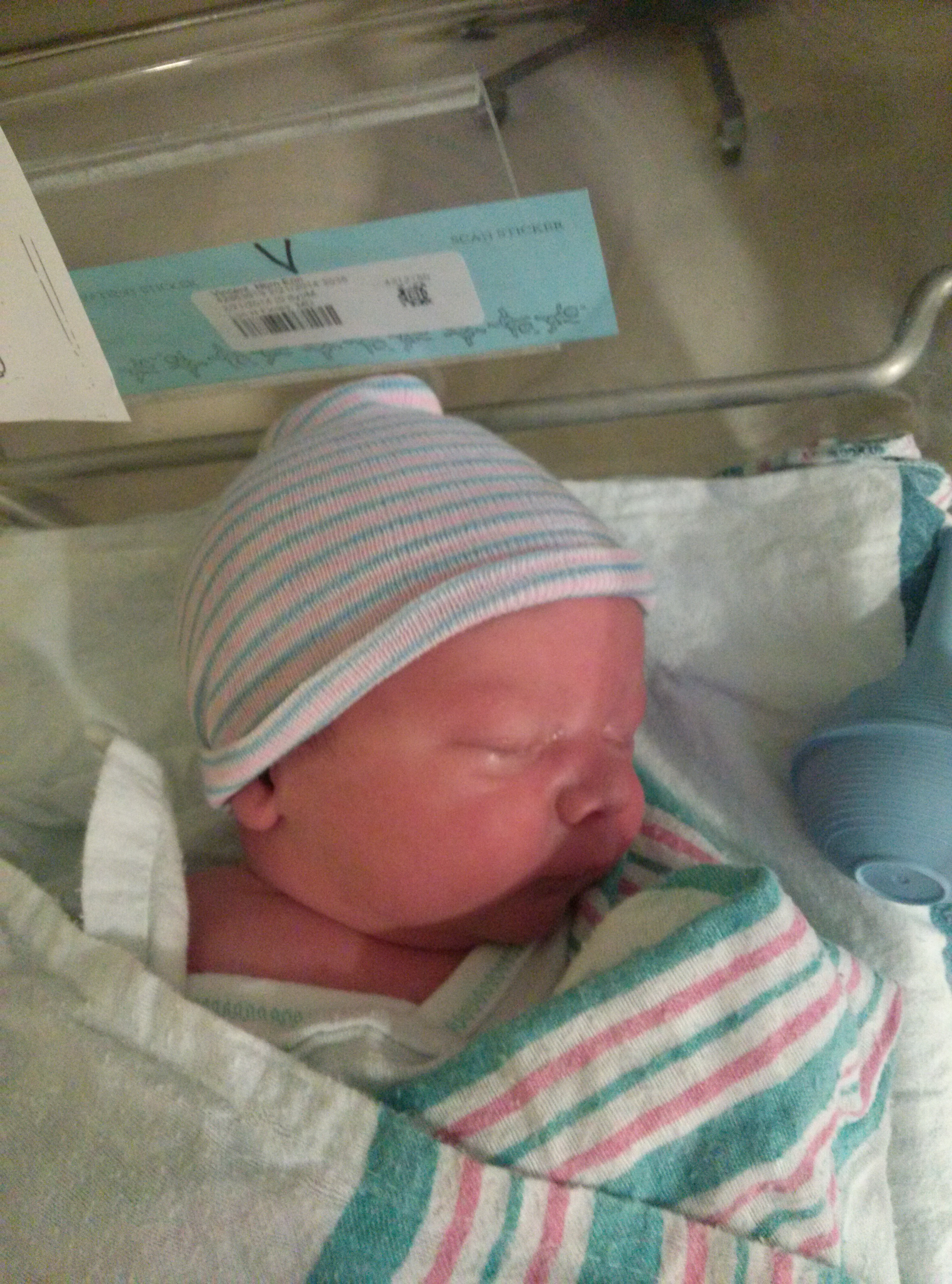 UPDATE: Zaiden Oba arrived via non-emergency c-section (never tucked his chin) at 8:35pm MST on 2/21/14. He weighs 7lbs and is 19.75" long. He had a little trouble figuring out breathing, but he's doing great and has nursed a couple times for a few minutes. My water broke on its own (plus pitocin) and he was out 1.5hrs later. My phone is not cooperating, will add photo soon.