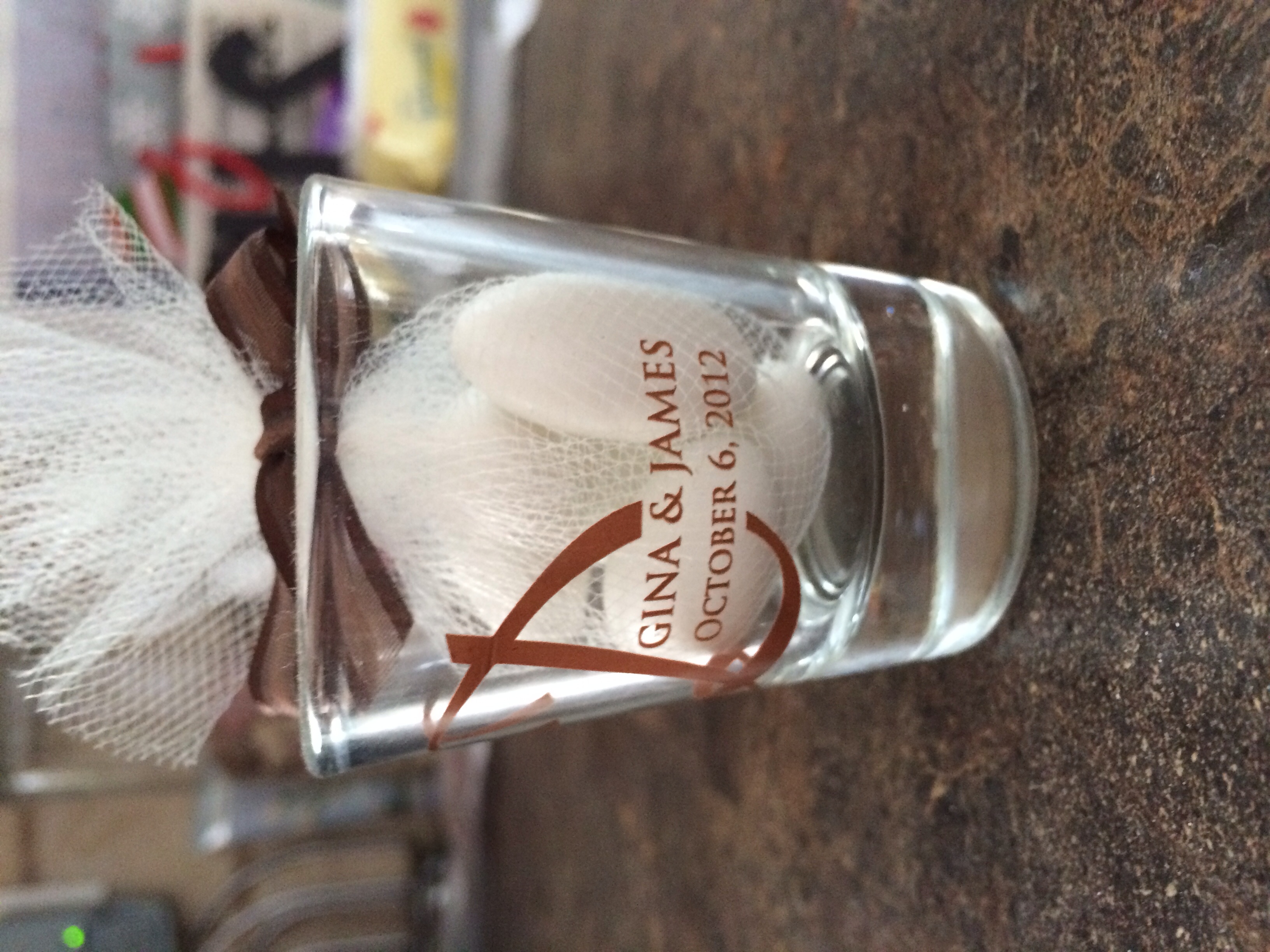 As far as party favors the cutest one I've seen is a couple that run a karaoke company gave a CD of their favorite songs. It sounds really cheesy but they were music people so it made it really cool. Also, they named each of their tables by a song instead of a number. So, we were sitting at "don't go breakin my heart" which was track number 10, so table 10. It sounds more confusing than it really was.