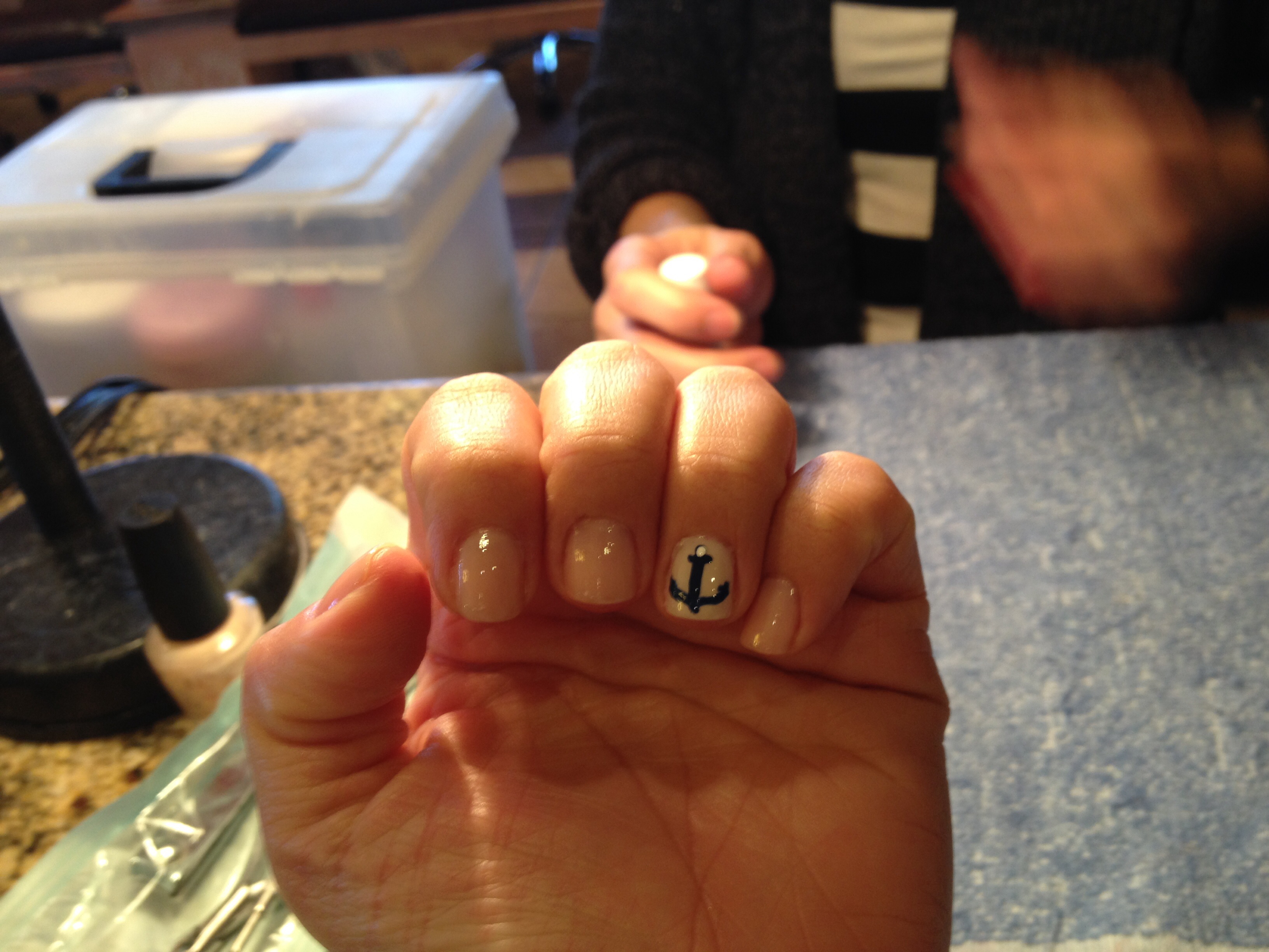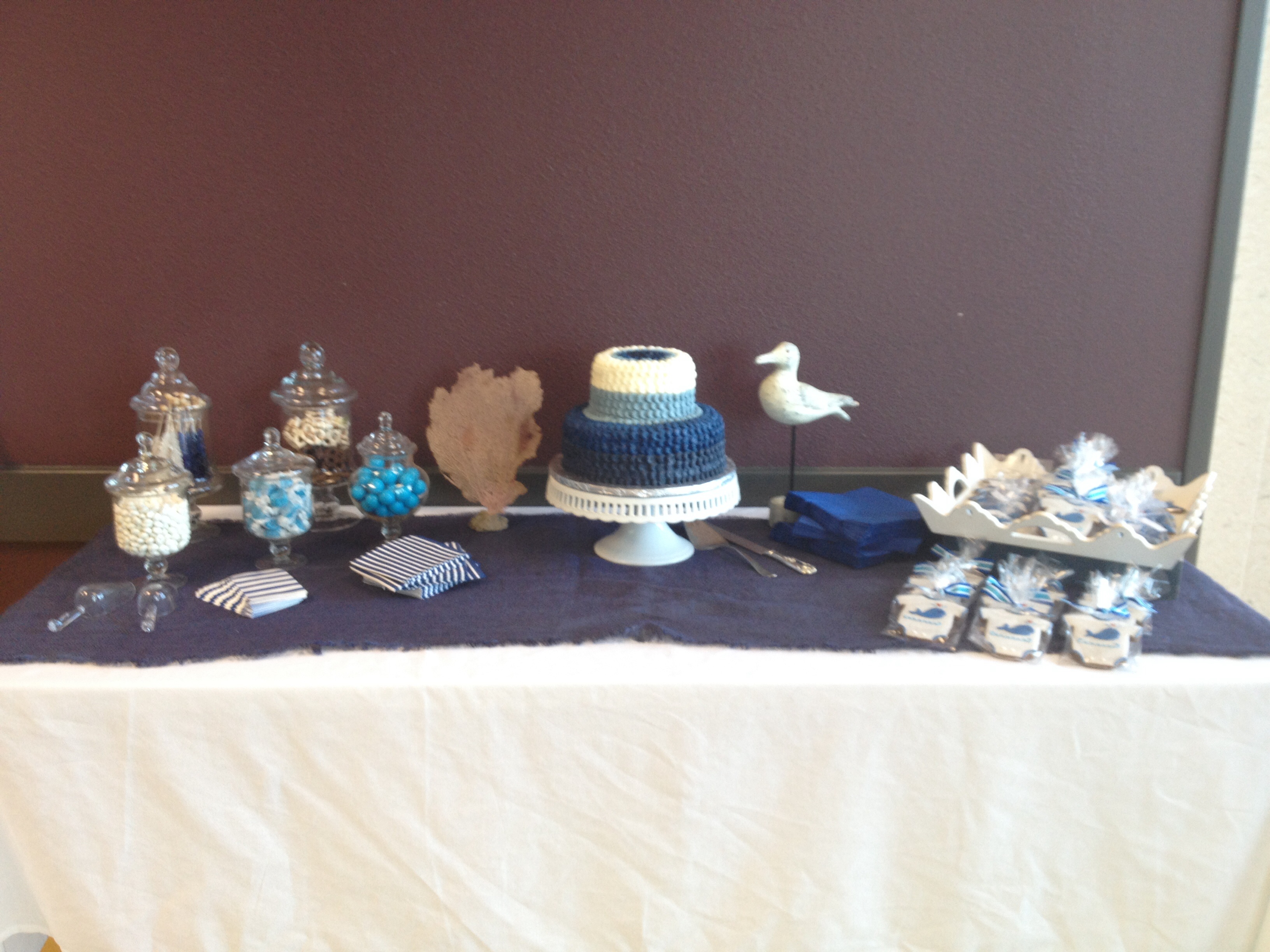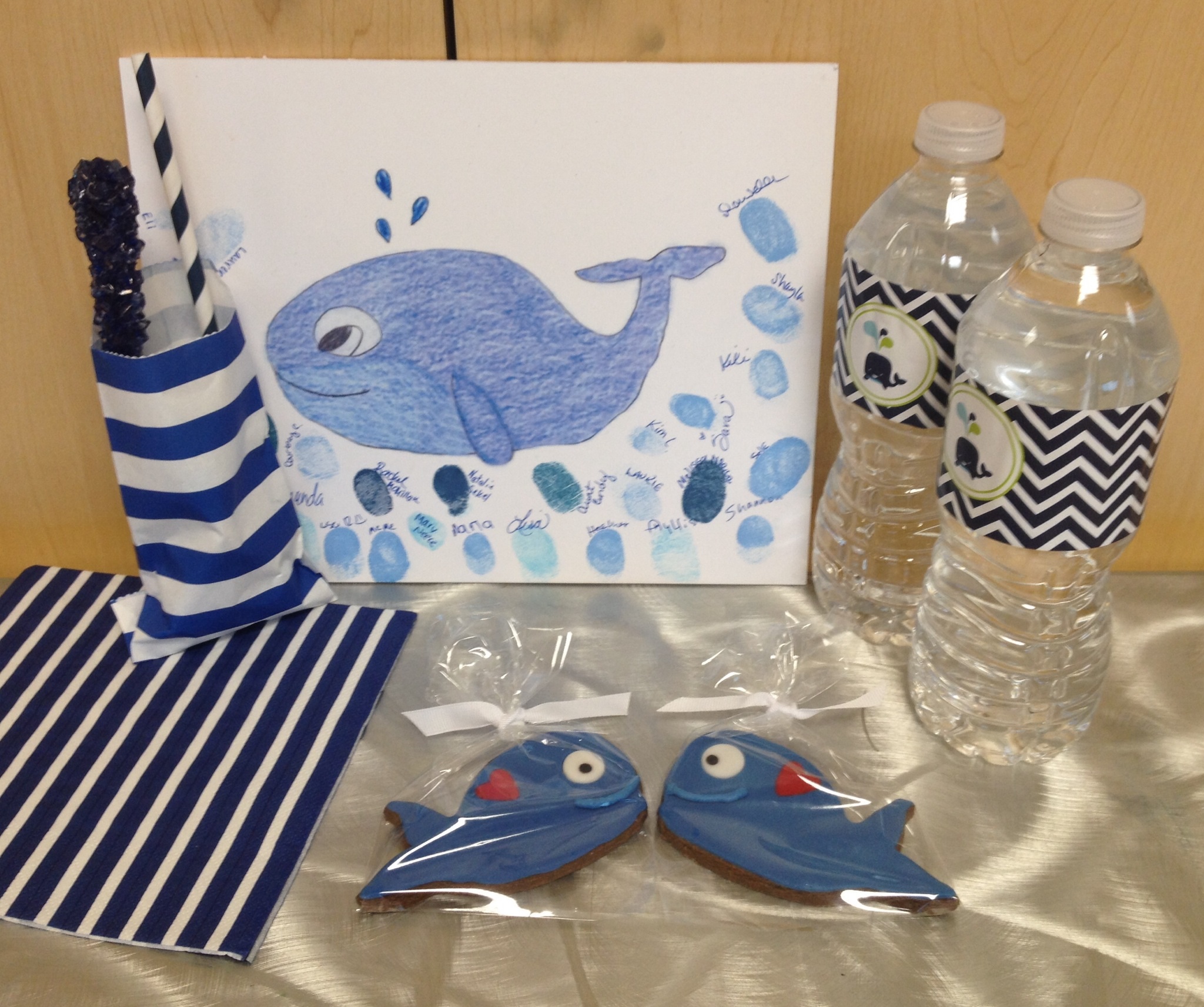 Nautical theme baby boy. His big brother free handed a whale on canvas for the guests to thumb-print sign. My nails even played along and dressed in theme!