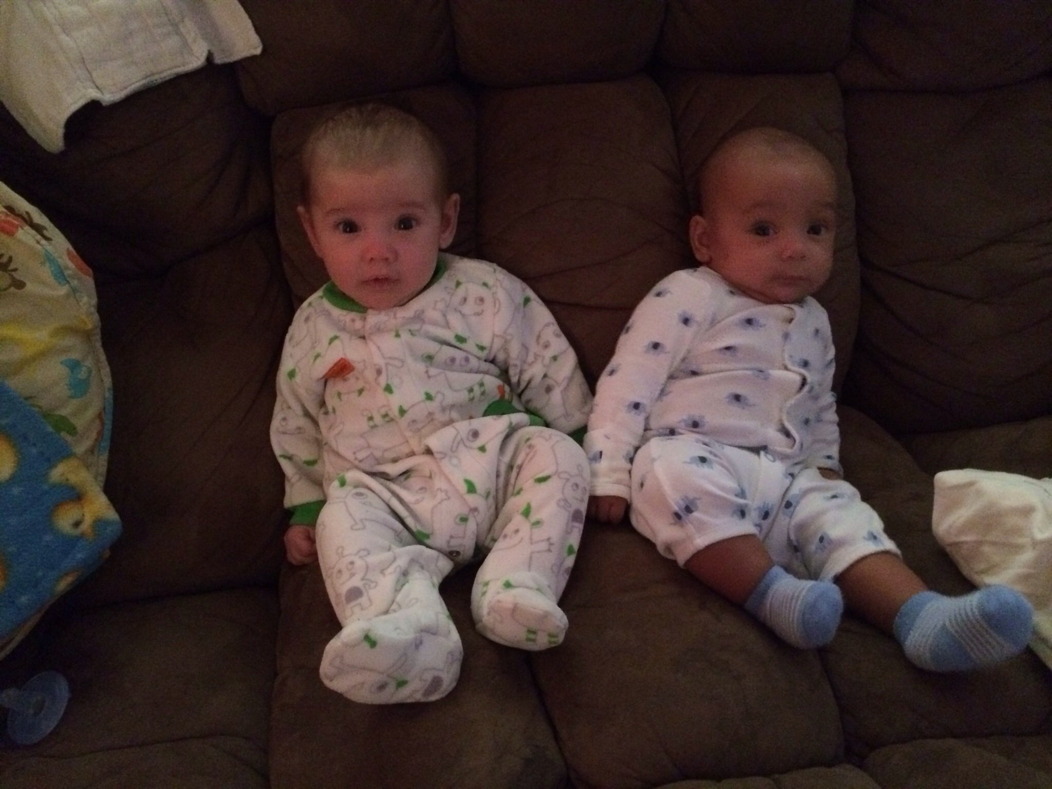 So most of you don't know that my mom and me were both pregnant at the same time. I was due 12/2 and she 12/7 both with boys. Neither came on their EDDs. They're exactly a month apart. Anyways I stay at my home with both boys during the day. Well this morning during my pumping session, they both decided to throw fits so I stopped to calm them back down well meanwhile my damn cat jumped on the table and knocked my bottles on to the floor and spilled a good 2 ounces on to the floor. Then the dogs want outside which scares the babies so they start crying all over again. One has a poop explosion and the other pukes down my back and.. On to the cat. Today is going fabulous Lol.