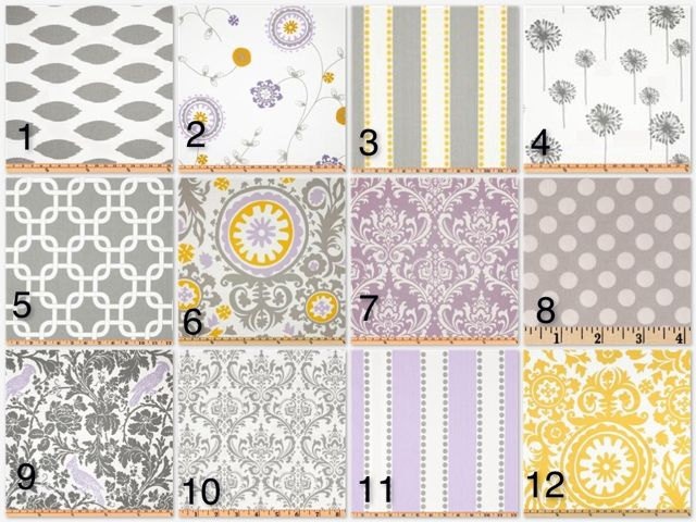 We are doing a grey, lavender and hits of yellow in our nursery. So far, we converted a chair from Ikea into a rocker and we have her bedding, the Genevieve collection, with a lace crib skirt, from pottery barn. We picked out a fabric (number 6) and are having a roman shade made for the window. Our crib is a light oak, it was my husband's crib and we have the matching dresser. Then we have a cream/oak vintage changing table. Now we just need wall decor and a little miss to put in the room We are currently in the process of selling and moving into a new house so the room is in a bit of a shamble with pieces here and there but maybe one day soon I can post the final product haha