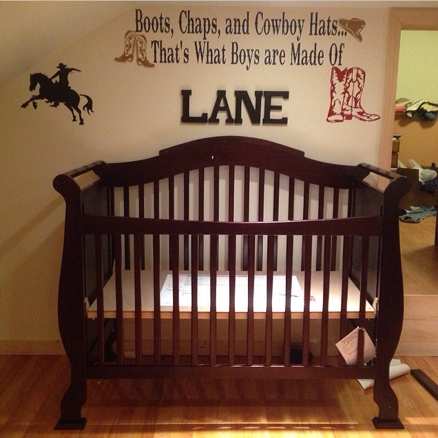Got the crib put together :-) now... Just gotta wait for some gifts to come in so we an finish...(dresser and bedding have been claimed, I just need to wait to get them) come on April!