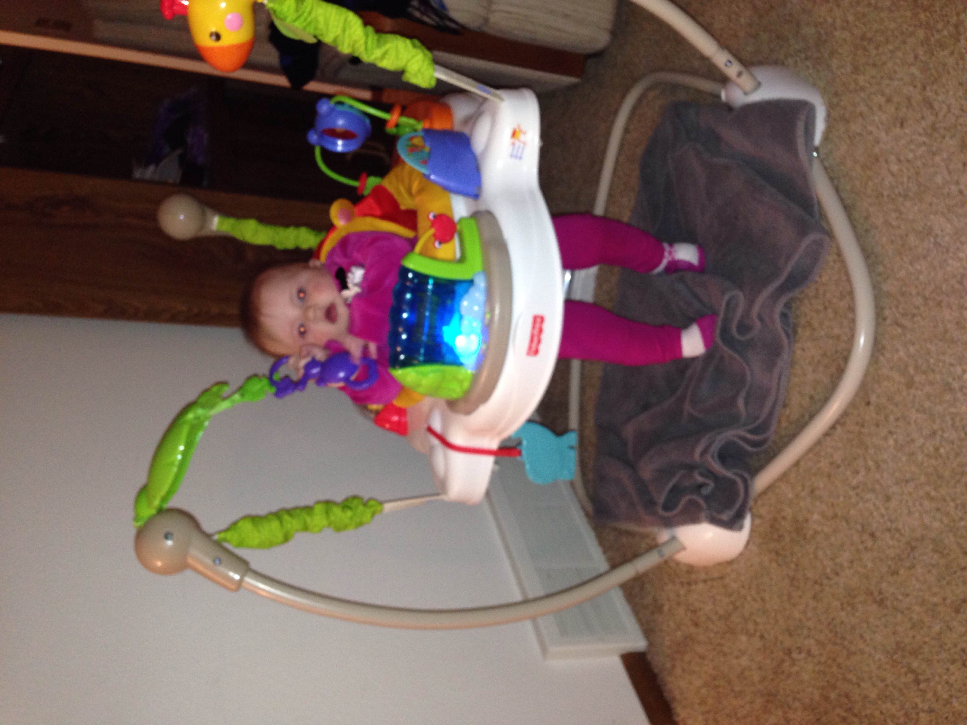 DD loves her monkey on her jumparoo. The way she pulls on it makes me nervous though. I'm sure FP has tested this out though right?