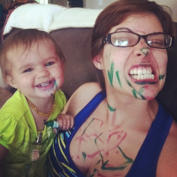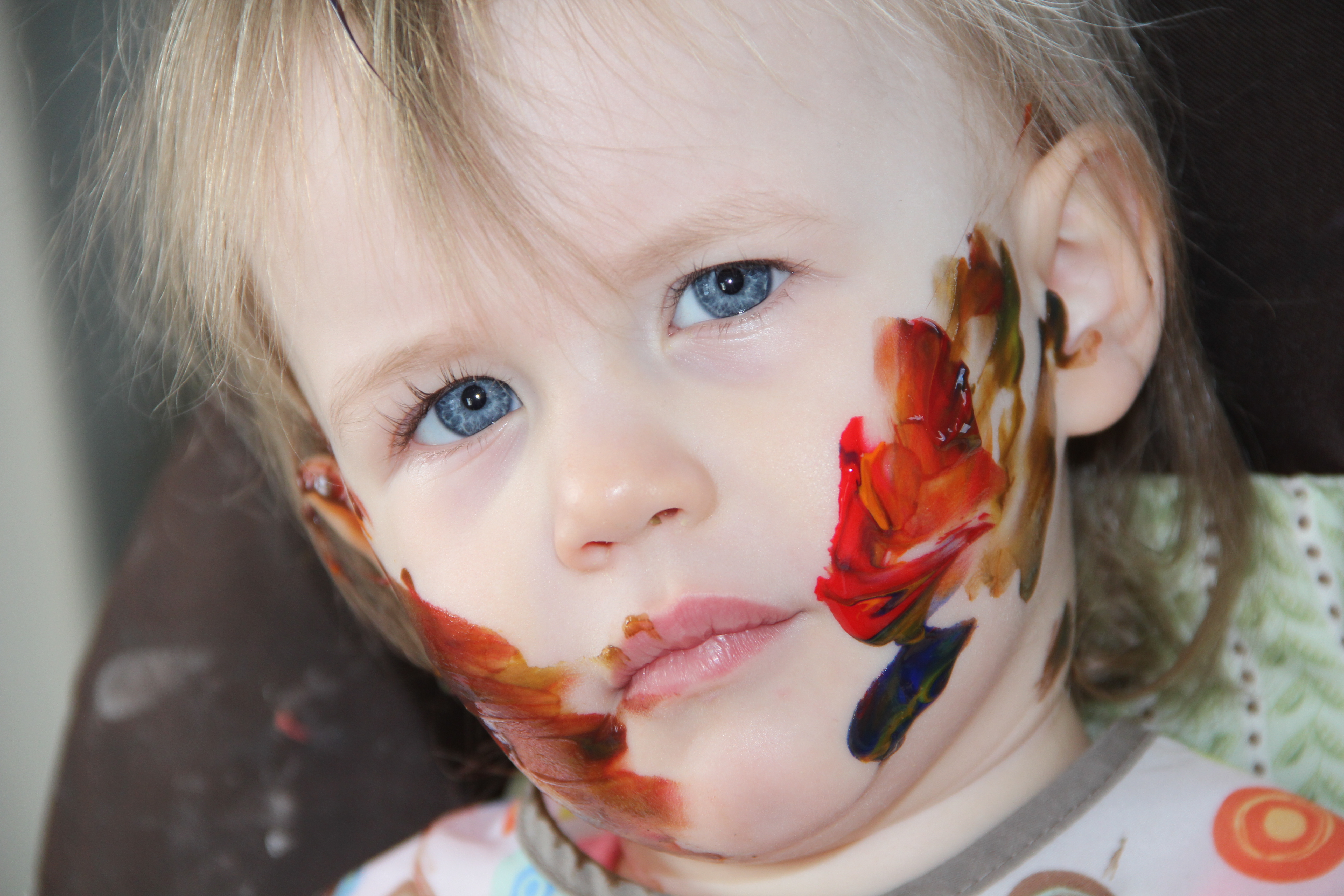I took this photo of C yesterday and I love it.  She's a very intense little girl sometimes, and takes her finger painting very seriously, lol!  I just love her eyes and her mouth in this one.