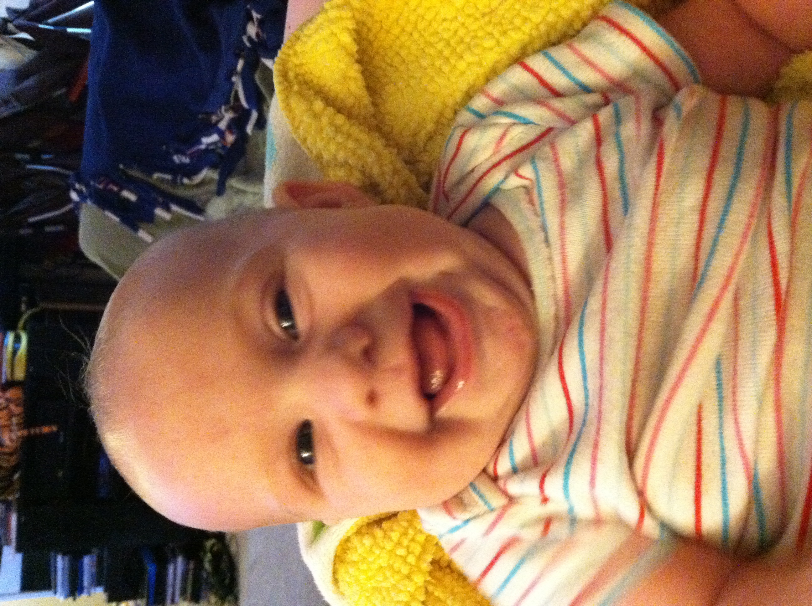 Thanks to @crazy4mas9 I now know that My LO is 11 weeks today. Haha I had lost count of the weeks. Addison was in a pretty good mood today and gave me some beautiful big smiles.