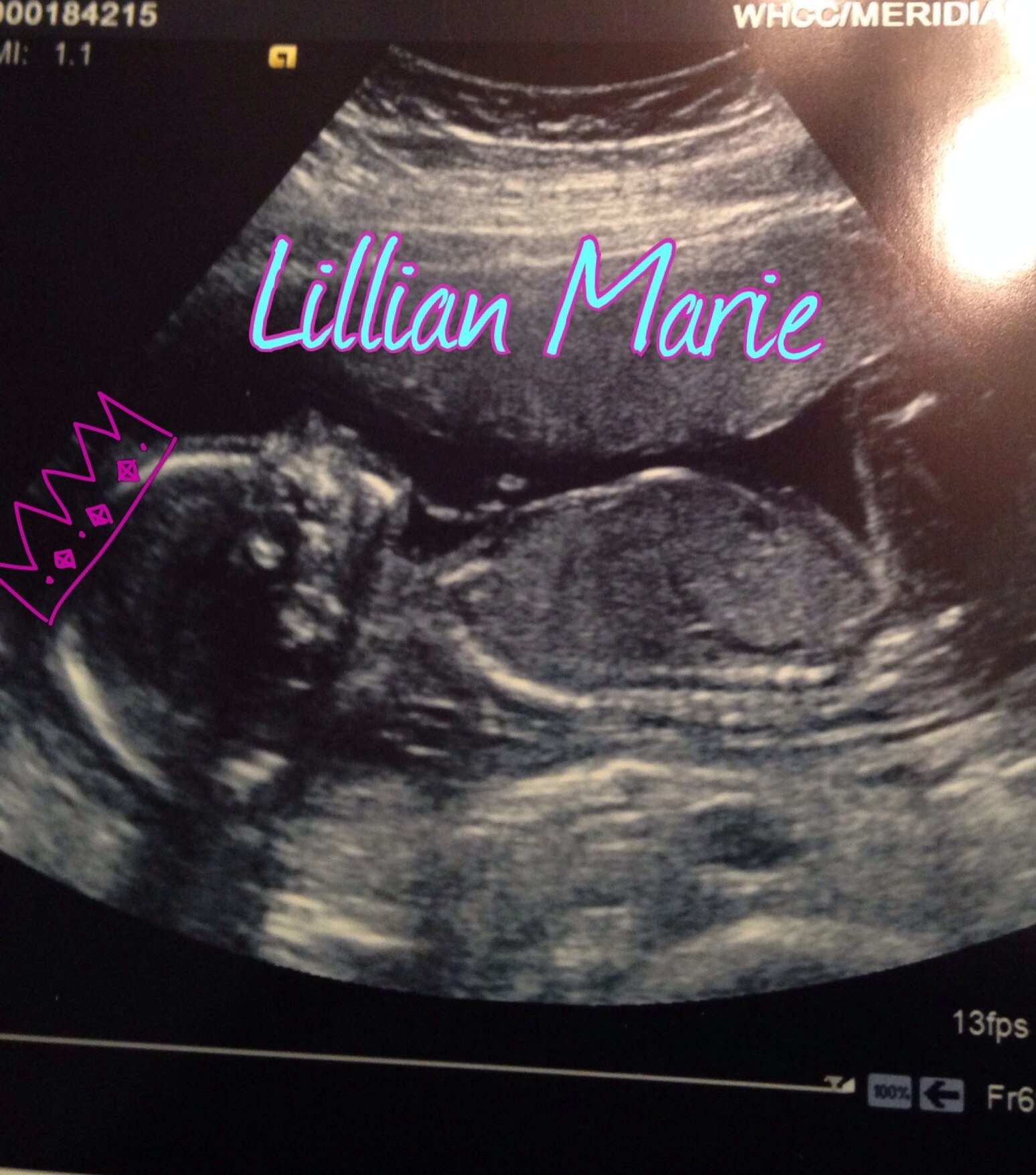 PINK!!!!!!!! I was actually really shocked, I felt I was having a boy since I found out I was pg! All the dreams I have had have pointed to a boy but the f-ed up dream I had the night before my scan pointed girl. (I won't go into details of the dream but let's just say, it involved wrapping the baby up in tin foil and gluing her to a backboard to keep her warm lol) Anyway, she looks perfect! She is measuring right on track at 19w2d, and weighing in a roughly 9oz. We are ecstatic (especially me) to be having a little princess. So without further ado, I give you Lillian Marie!!
