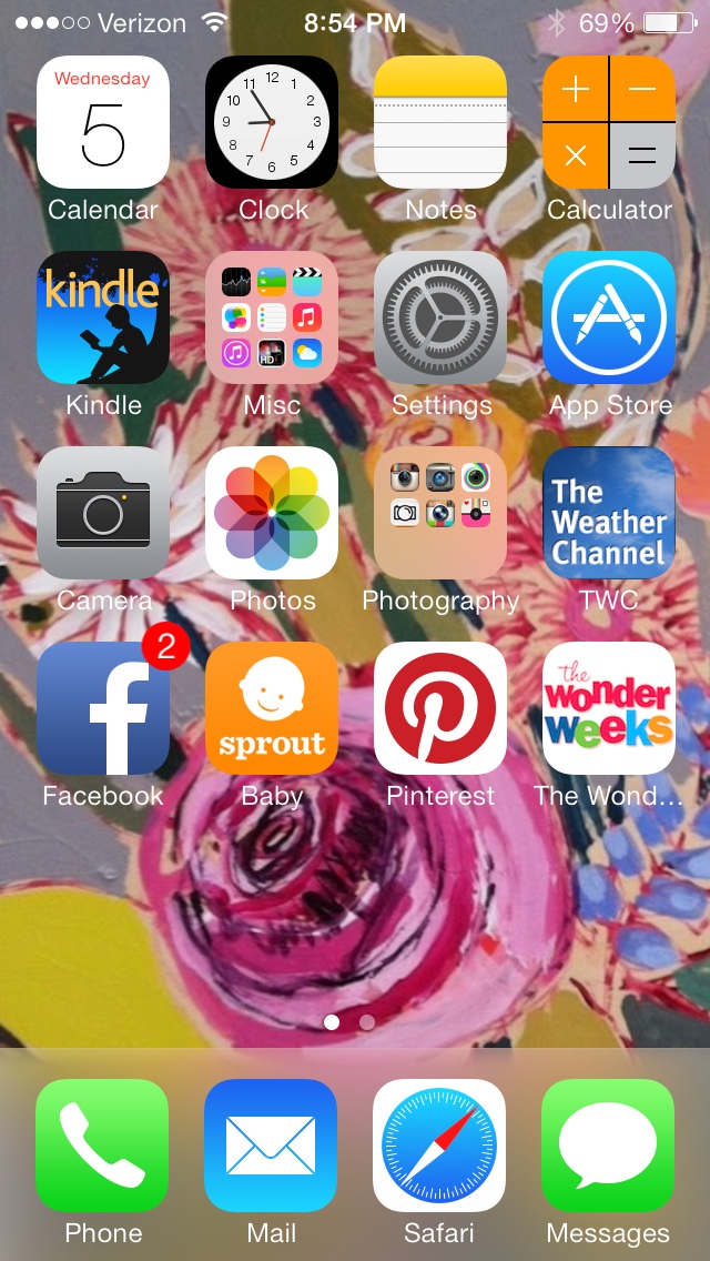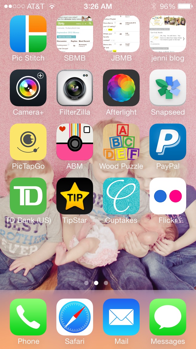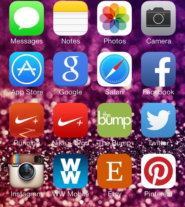 My first page is my music, camera, Twitter, FB, IG, TWC, nursing app, etc. second page is a few mobile links I saved (my 2 BMB's S12 and J14 and then my blog link) and then my photo editing apps, etc. And even though I have 4 kids, there's exactly ONE game on my phone and it's Reid's favorite.