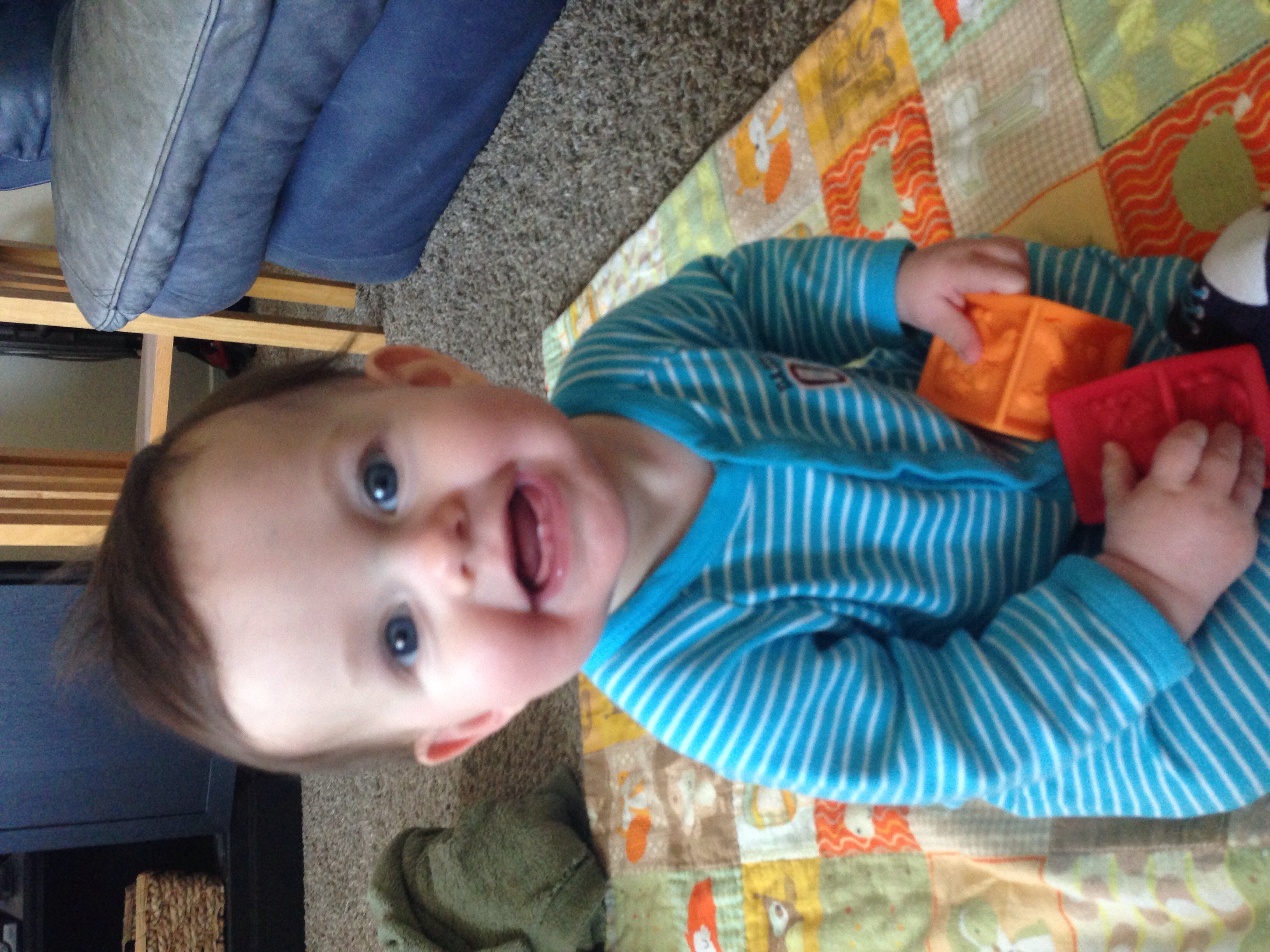 One of my neighbors was getting rid of a play kitchen and I was heading out to the garage to put the baby in the car so we could drive down and pick it up. I open the door to the garage and trip over our recycling bin and drop the baby (who is in his infant seat) as I fall. He's fine, just scared. I'm fine, just scared too. We've been saying we're going to install the convertible seat every weekend for like a month now and haven't gotten around to it and now I'm so glad! It would have been so much worse if he hadn't been protected by his seat! Anyway, I still feel terrible about dropping him