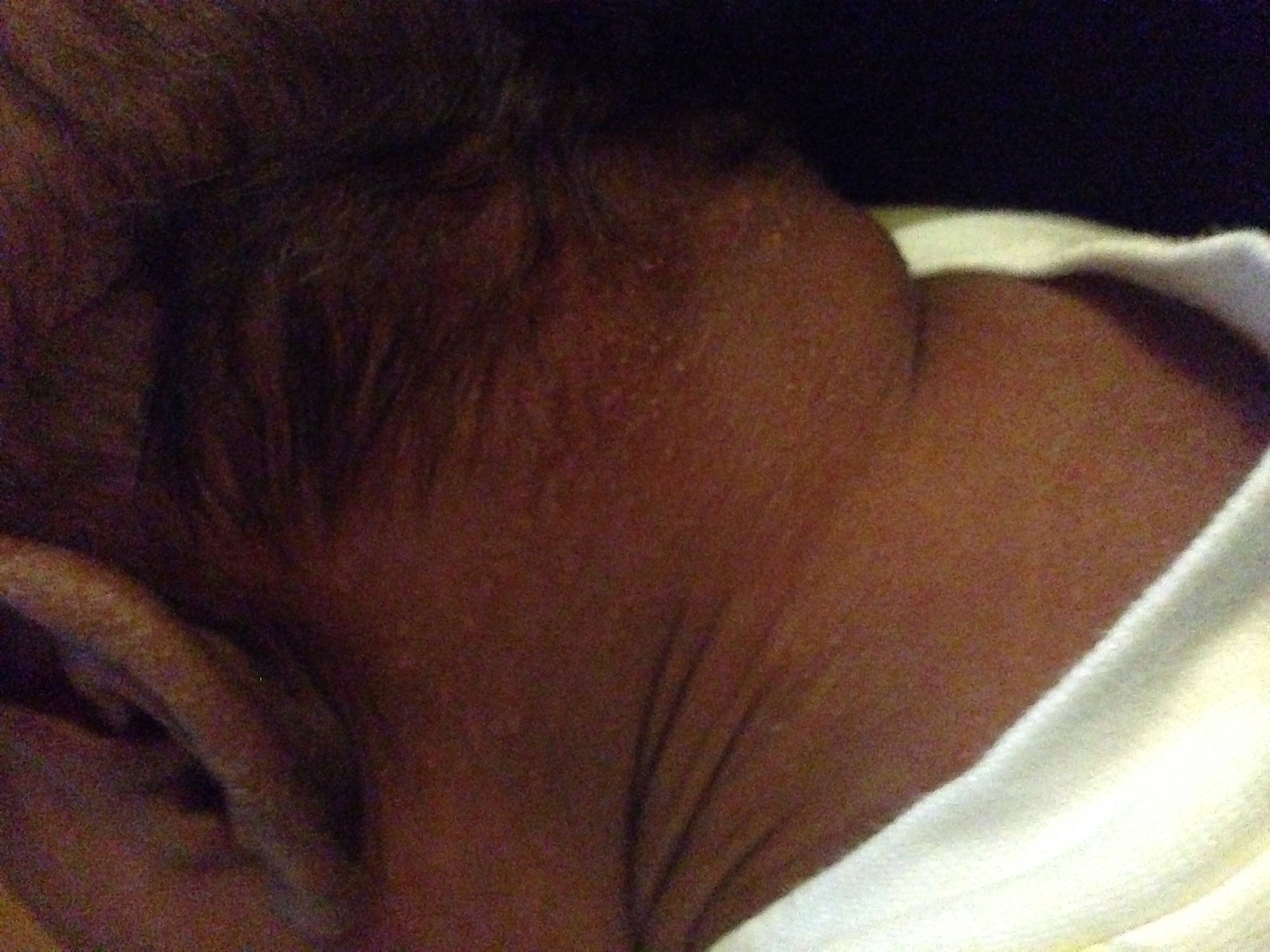 At first I was thinking baby acne for sure, but now his neck is pretty broken out.