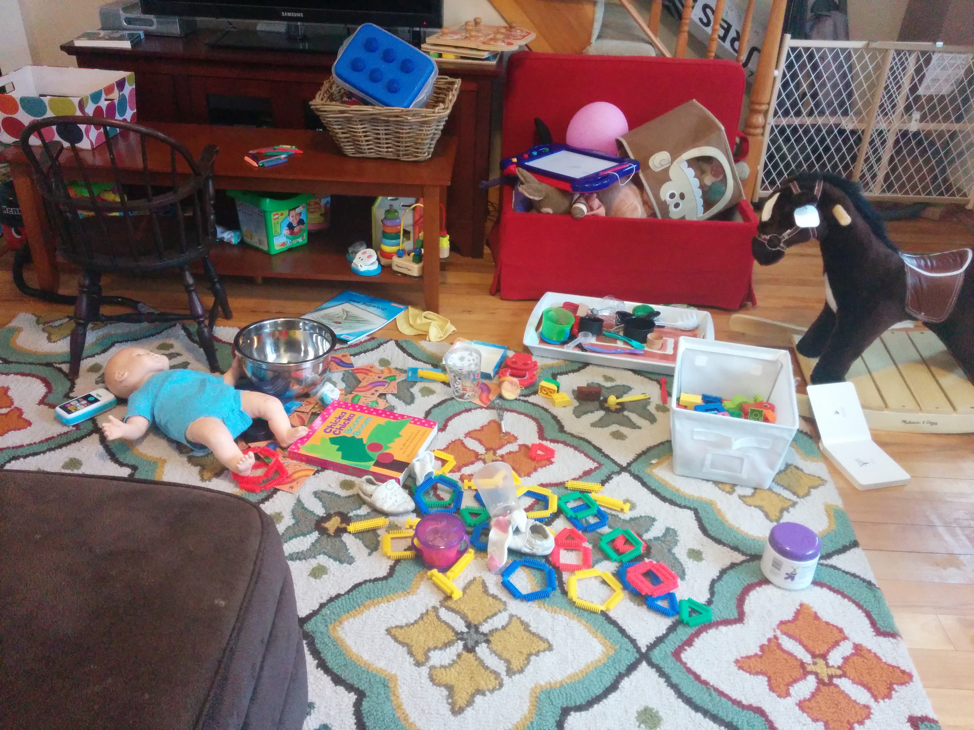 Maybe I'm the crazy one but I could care less that my living room is scattered with toys.