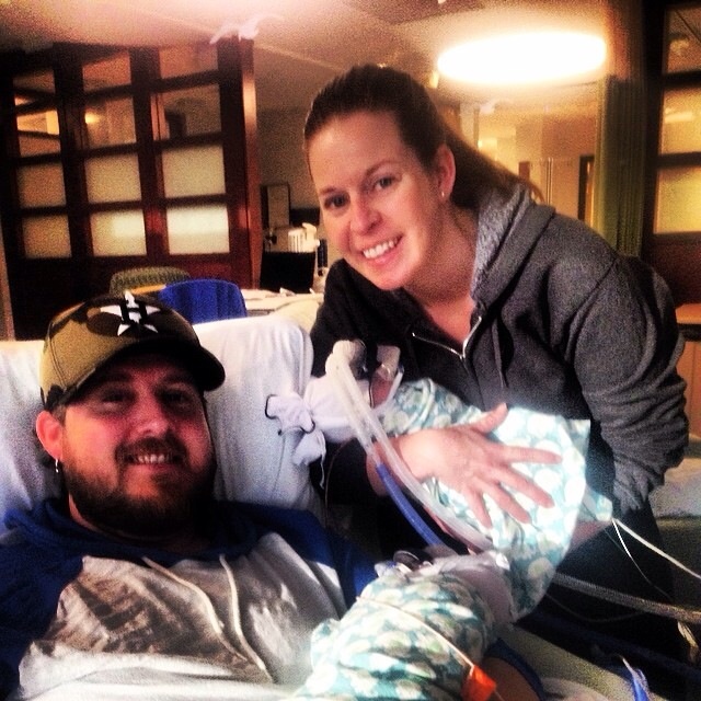 We are in cribs, off the CPAP and on a cannula, and started "nuzzling" today!! And our nurses finally got in in a room with a half wall so we can sit next to each other when we hold so we got to take our first family photo!! Boys are 6 weeks (33x6 adjusted)... It's just been a blessed week. I go back to work tomorrow until they come home so it's been nice to go back on a positive note! Deep sigh...