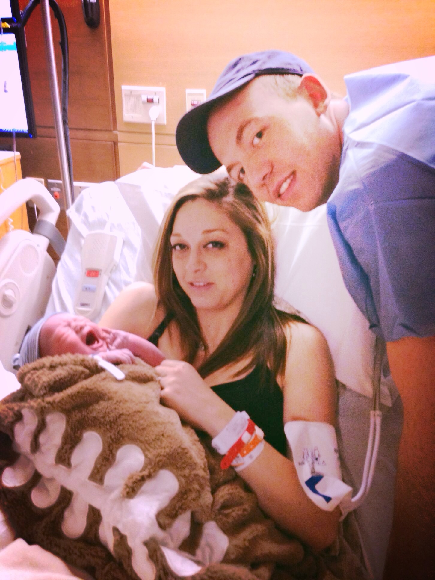 so I went to the bathroom to empty my bladder and low and behold even afterwards I continued to leak some fluids. I put a pad on and went to inform DH that I thought my water had broken. Of course his response was are you sure you didn't just pee your pants? Well he had me second guessing my self until just a few seconds later a big gush soaked my pad! Well called my OB's office and the nurse told me to go immediately to the hospital for baby to be monitored. It took quite a while for us to get our DD and older DS somewhere to go so it ended up being close to 11:30 by the time we got to L&D triage where they tested and sure enough I was leaking amniotic fluid and was dilated to a 3 50% thinned (a move up from the 2cm I had been for 3 weeks). This entire time I was not having contractions strangely enough. At about 1:30 they had me in a room and started a pitocin drip. Started contracting about every 4min but was not in serious pain. Soon found out my OB was not on call this weekend so I was going to have another OB in his practice whom I had never met deliver my baby... Umm ok?? He came in and met us at about 5 and checked me again I was now at 4cm 60% thinned. Progress and I was still not in much pain but they upped the pitocin. Ouch!! Finally by 6pm I was very uncomfortable! I was on the birthing ball some to help things go faster. I was starting to feel a lot of pressure so I had her check me at 6 and I was at 6cm and now at -1 station instead of -3. Things went crazy from there!! I tried standing while leaning on DH and was feeling like I needed to have a bm bad!! I had the nurse check me and I was at 7cm at this point I wanted rest so I laid down. I finally decided I couldn't take anymore and asked for an epidural. Well she hung me a bag of fluids and I was told I would have to finish that before I received the epidural. Ya right the pressure I started experiencing was unreal!! She checked me again and wouldn't even tell me how progressed I was. I knew then I was complete and my body was in fact going to push this baby out whether anyone was ready or not. The nurse had called the OB the first time I was at 7cm to have him come to deliver well he was still no where to be found!! The nurses all just stared at each other and one was asking for a table for baby and I was pushing that baby out!!! No one said not to, but no one said I could either I pushed like I was about to have the biggest poop ever and I didn't even care if I did in the process! I could def feel LO's head about to crown and no one knew what to do! So I pushed like no other and bam!!! There was my sweet boy's head and now the shoulders ouch!! He came out and he nurses just all kind of looked stunned. He was born at 8:18pm 8lb8oz 20 3/4in! The Dr finally made an appearance after we had delivered placenta and everything!! I can't believe how fast I went from 6 to pushing (approx 2hrs). I ended up with a med free birth even though I hadn't planned on it in the end and Nurse Cassie is who delivered my son!! Wow!! It was not the exact experience I expected to have, but it was pretty empowering to have let my body be in charge and deliver him how it felt it needed to. Ok sorry for typos, length, and absolutely no editing (I am mobile). Recovery has been mostly a breeze other than contracting while nursing, but he latched beautifully and continues to be a great little nurser!! Ok for the long read here are my AW pics!!!