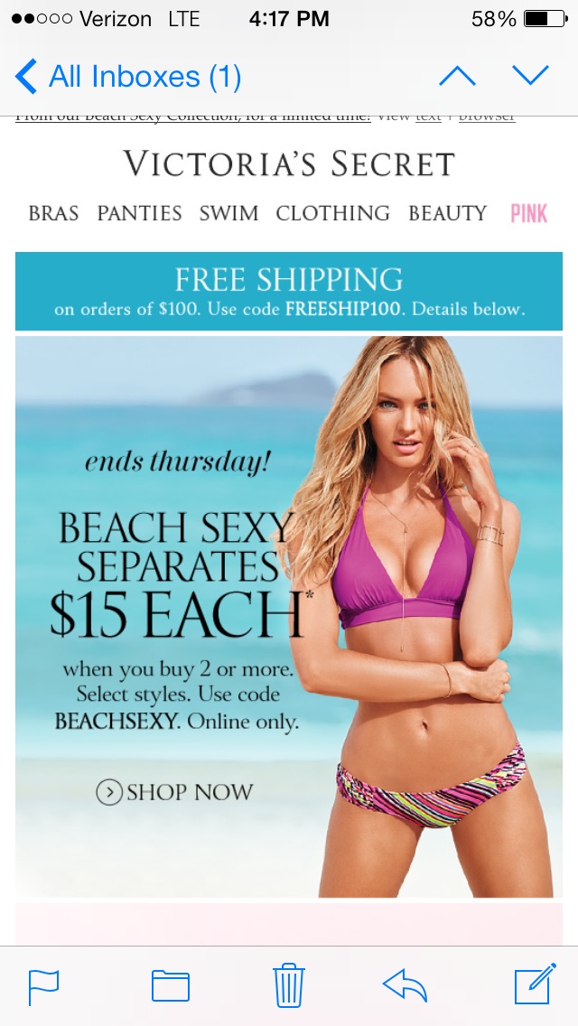 I found this really cute swimsuit on Victoria Secret but it's so darn expensive. I think I might just buy the top and buy a cheap pair of plain bikini bottoms.