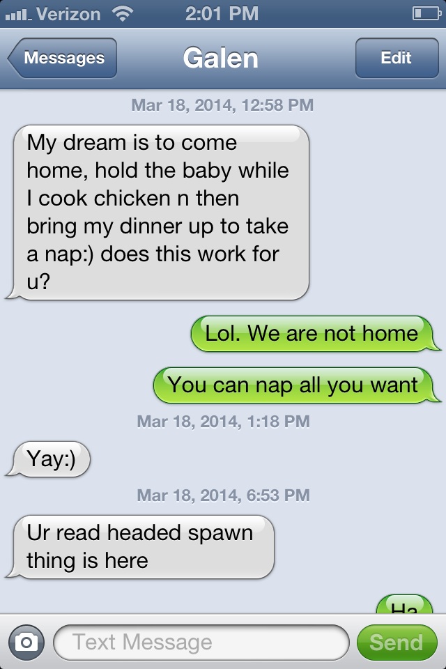 • He loves to nap and thinks my son is a diseased spawn thing. Haha. He never did get a nap. ( insert evil laugh)