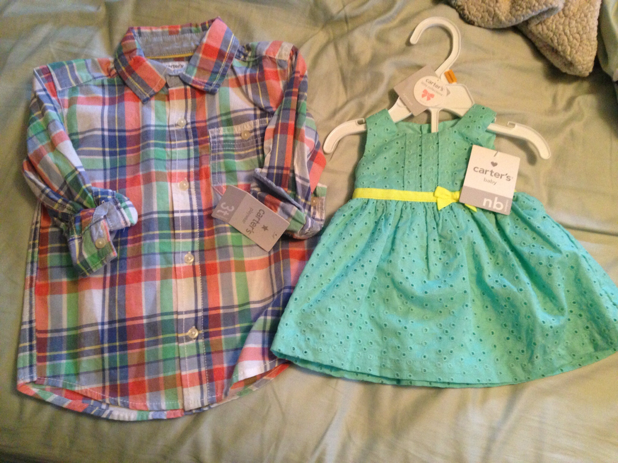 Ugh just went there yesterday and spent $60... Whoops. BUT for every $50 you spend, you get $10 Carter's cash. So there's that! And I shouldn't feel too bad because I only two things for my own kids, and then 2 things for a friend that just had a baby and a onesie for my future niece. Check out the coordinating outfits I got for dd and ds for their pictures we're having taken this weekend: