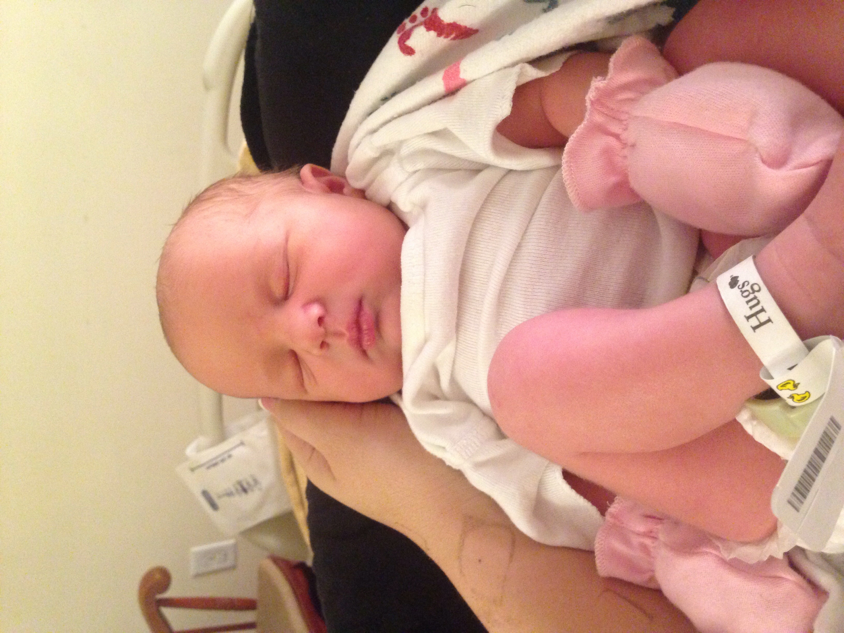 We went in at noon Friday for our scheduled C section due to her being breech. I'm a FTM so I was terrified of having a section. Everything went really really well! Thank goodness for modern medicine! Epideral/spinal wasn't as bad as I thought. Didn't feel much except tons if pressure. They had a difficult time "digging" her out because she was so high and buried in my rib cage. Right after they got her out I got really nauseas, and didn't get to see her much because I was trying to not puke. My husband and I were both I tears. His heart was immediately stolen. He stayed with her when I finally puked on myself. Lol. Felt much better after that!! We got skin to skin as soon as we got into recovery. She was on the boob by 3pm. She's a great feeder!! Our stay at the hospital went very well. She lost weight, then gained!! The first night there I got pretty sick, do I was out of it Saturday. Saturday night tested our sanity. By Sunday we had it down. Bilirubin levels very low, passed hearing screening, pediatrician says she's perfect! We are now home and getting settled. Trying to not hold her alllll the time. Easier said than done. My milk is starting to come in so my boobs are HUGE and hurt realllllly bad. Blah. But I don't care because she's finally here! We are beyond smitten. Hope all of you ladies had a great weekend! And for those of you waiting for your little ones, being patient is hard-I know, but the wait is sooooooo worth it!!!