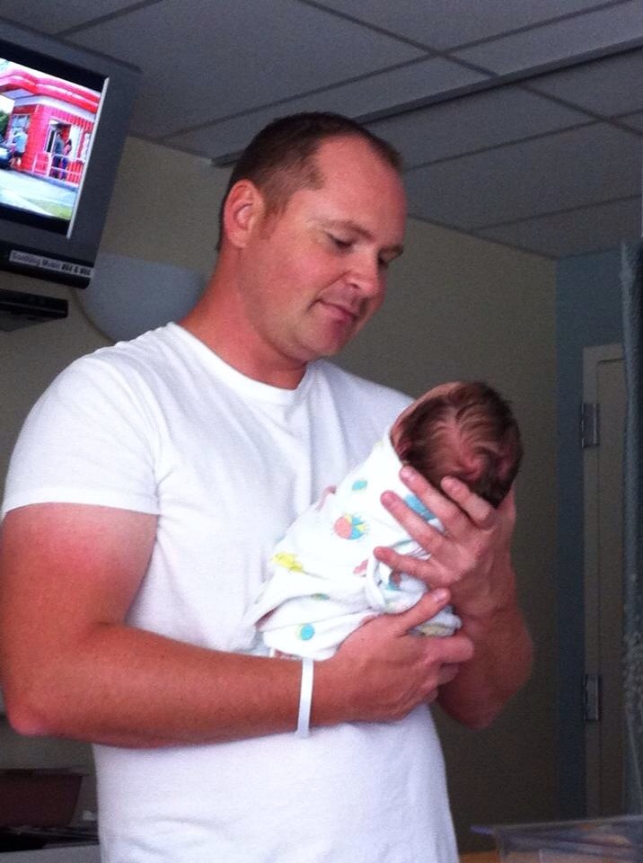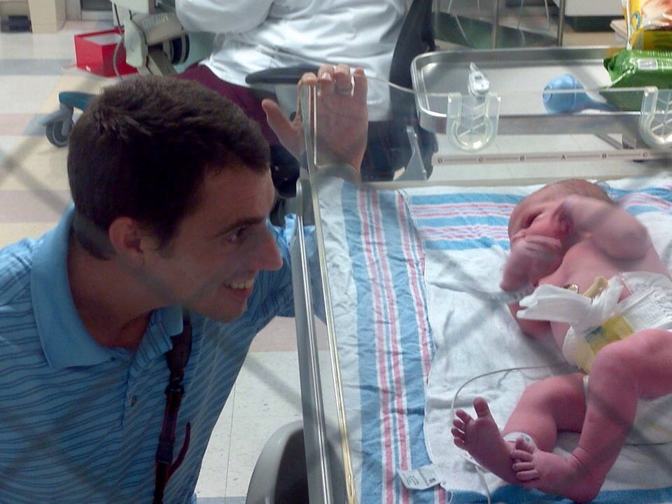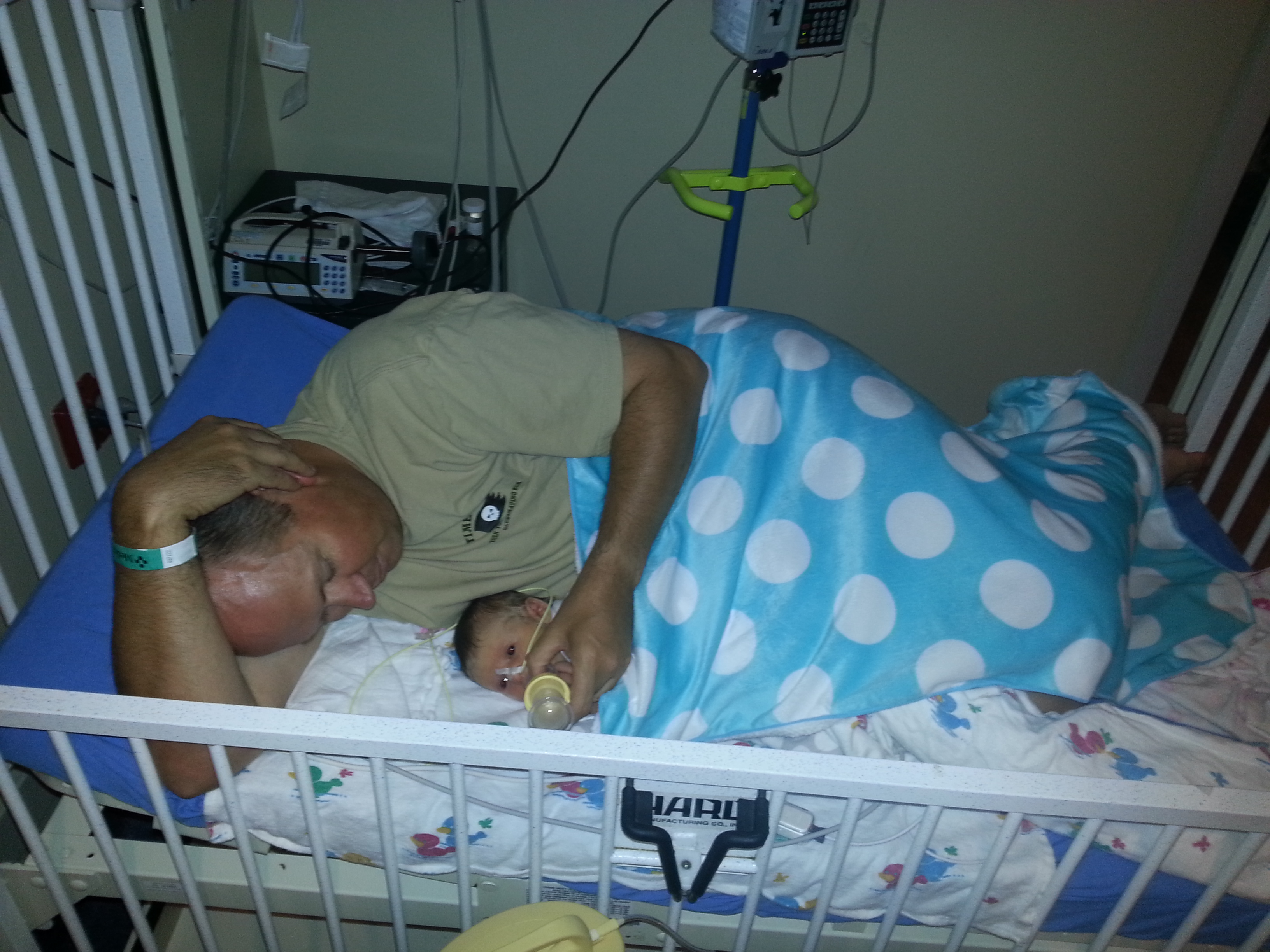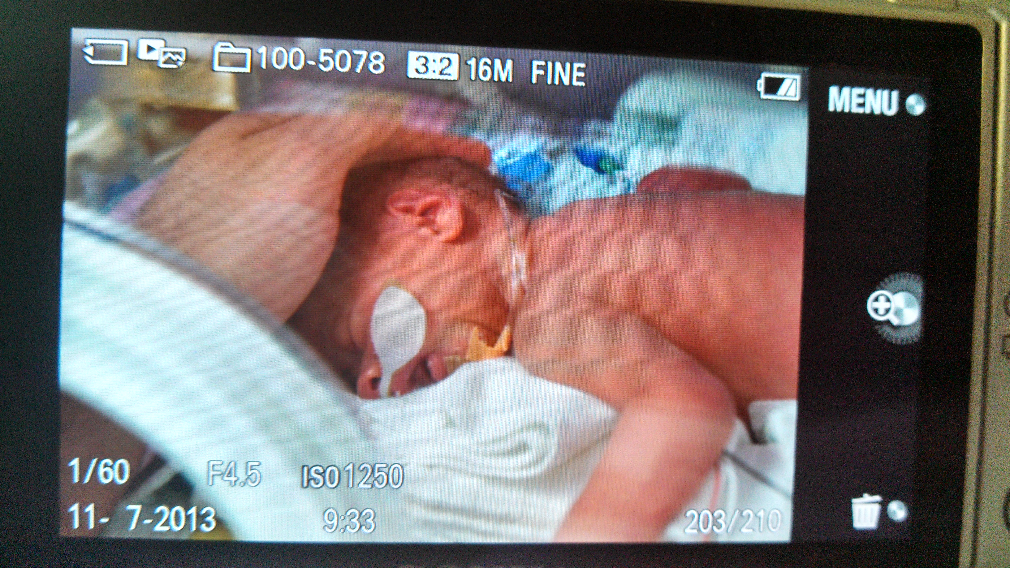 I know he's not really in this pic...but hours after DD was born and I still couldn't visit her, he would snap pics in the NICU for me and bring back the camera. We couldn't touch her skin too much, so it was often just a hand on her head. :-)