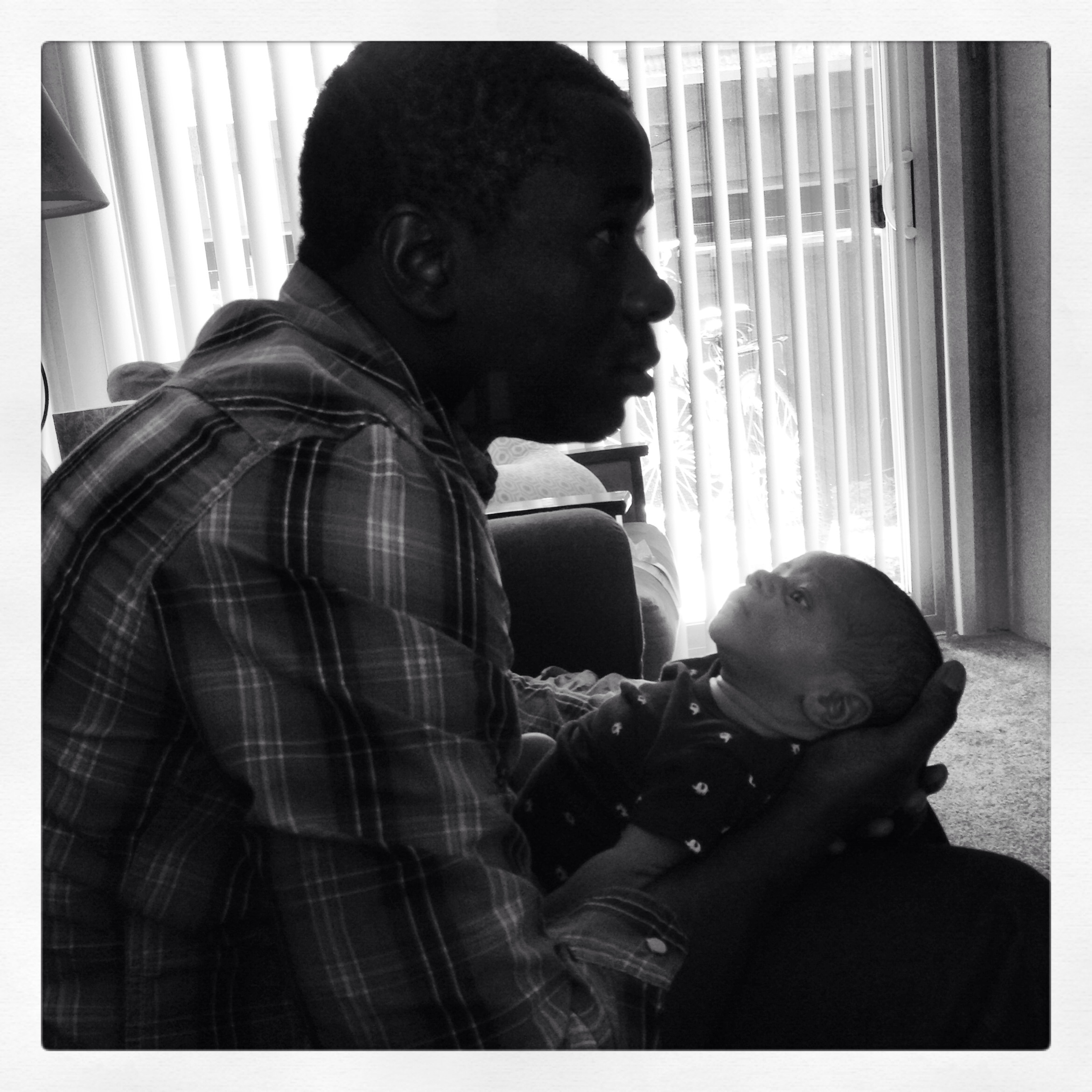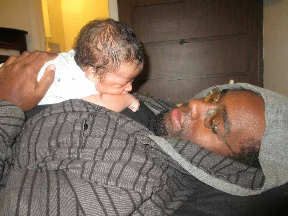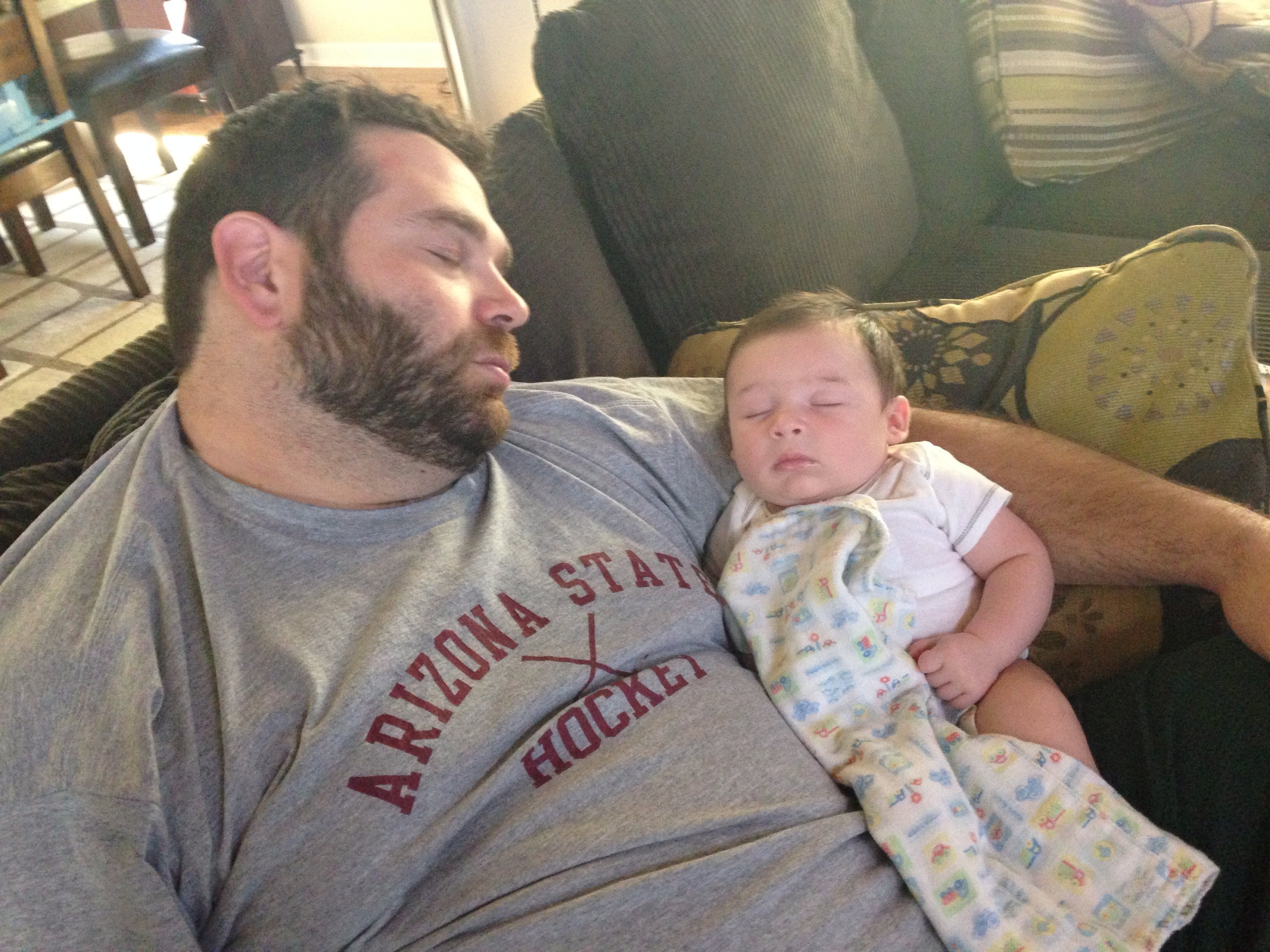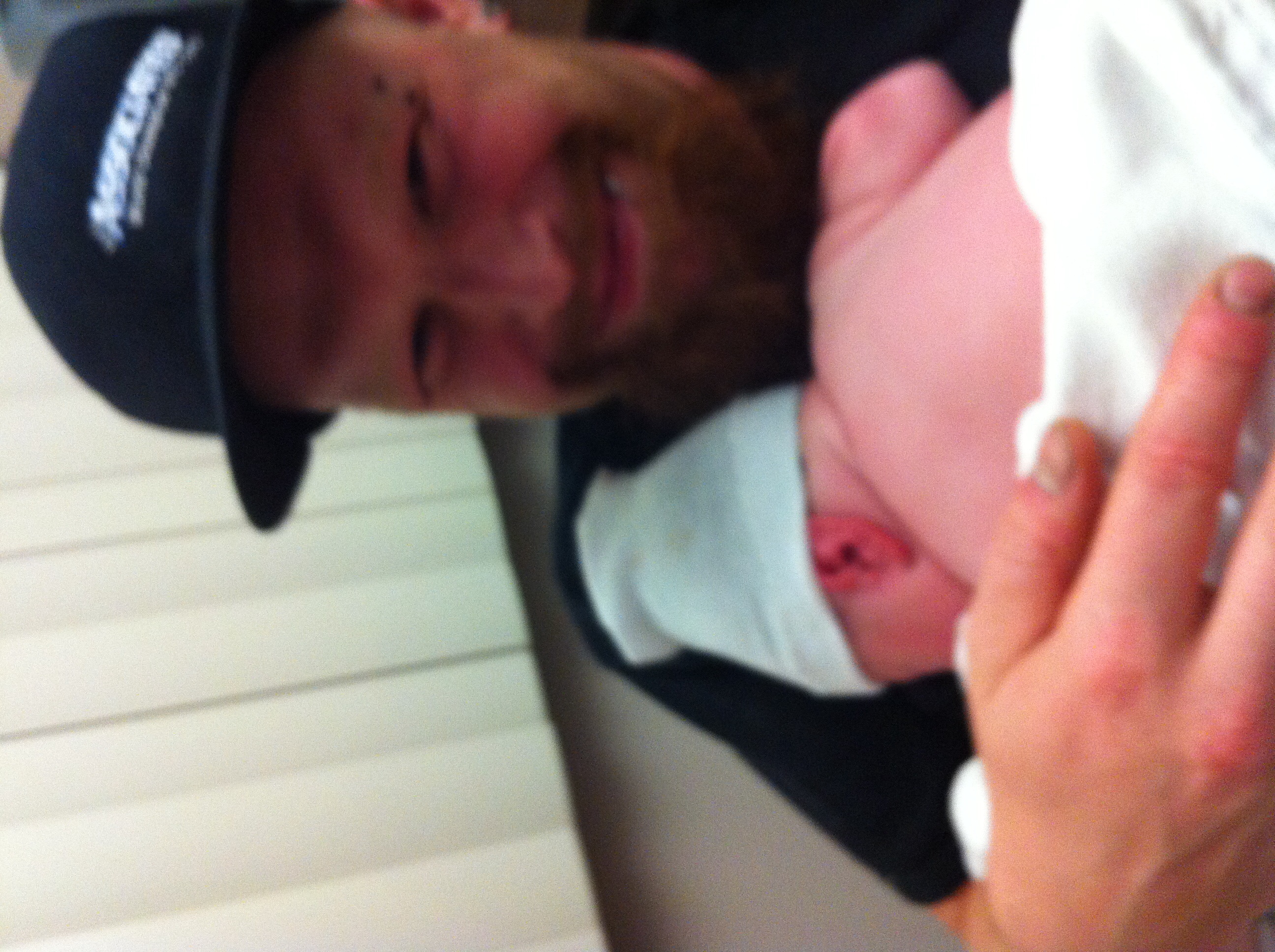 I know he's not really in this pic...but hours after DD was born and I still couldn't visit her, he would snap pics in the NICU for me and bring back the camera. We couldn't touch her skin too much, so it was often just a hand on her head. :-)
