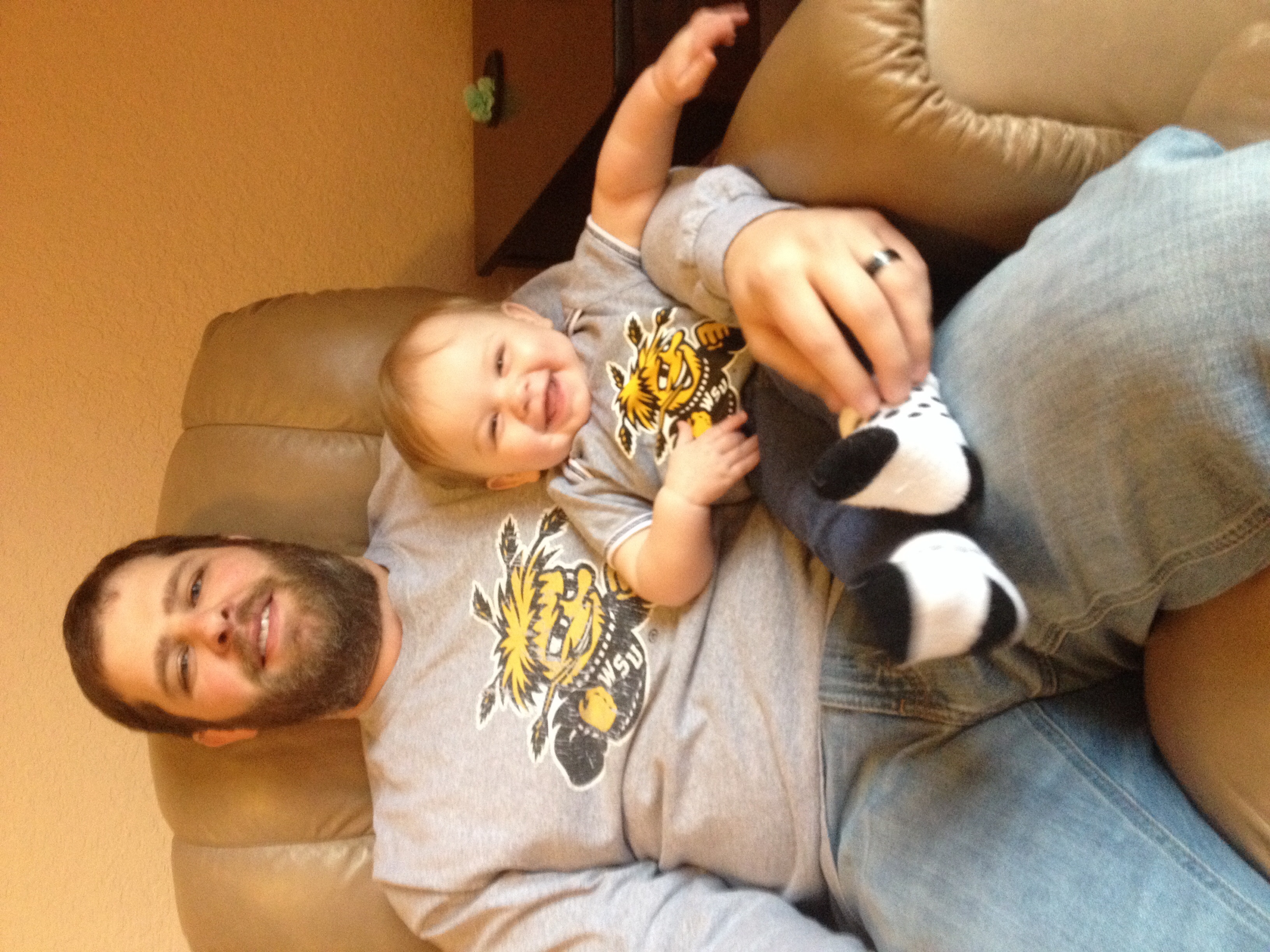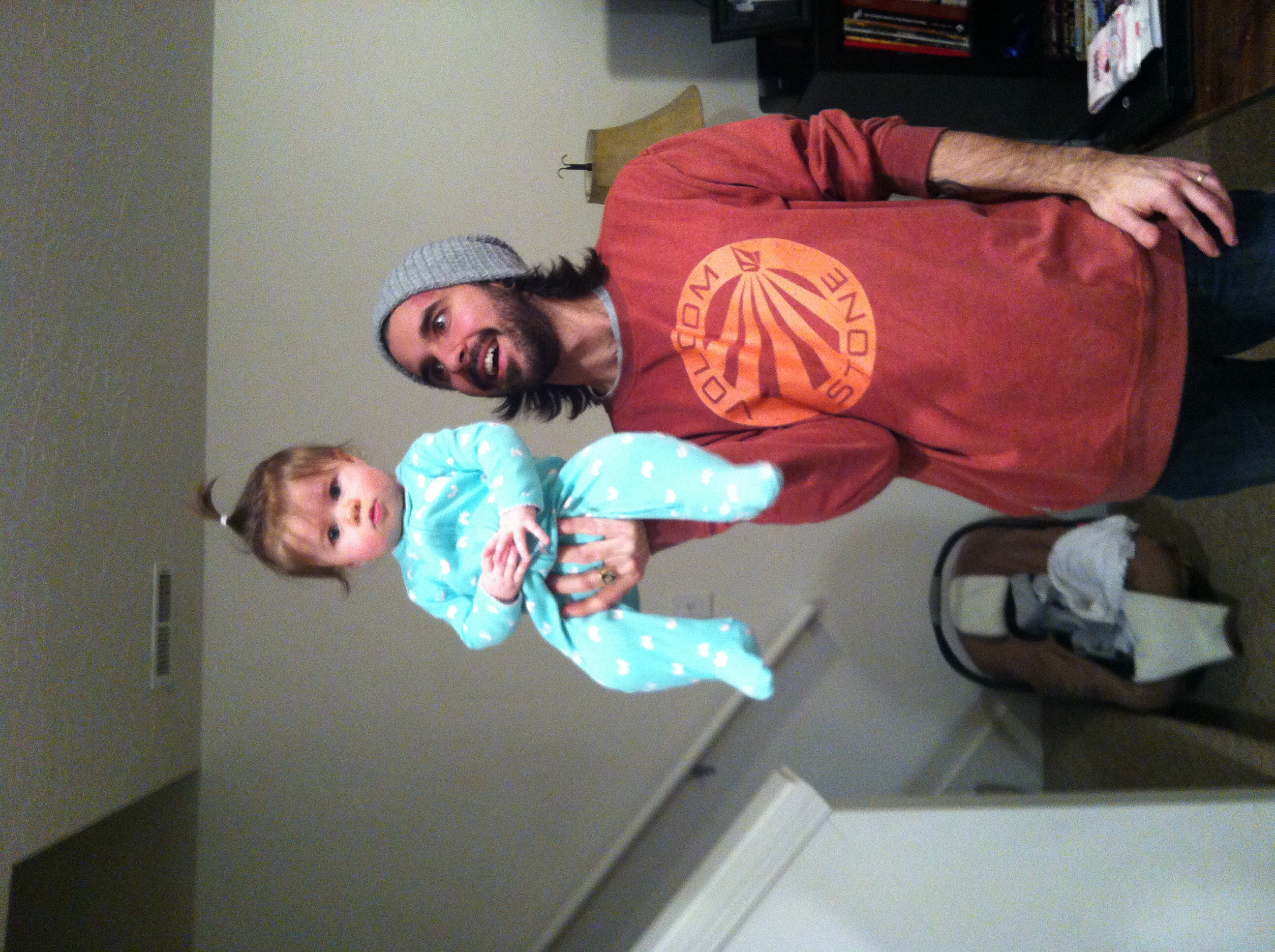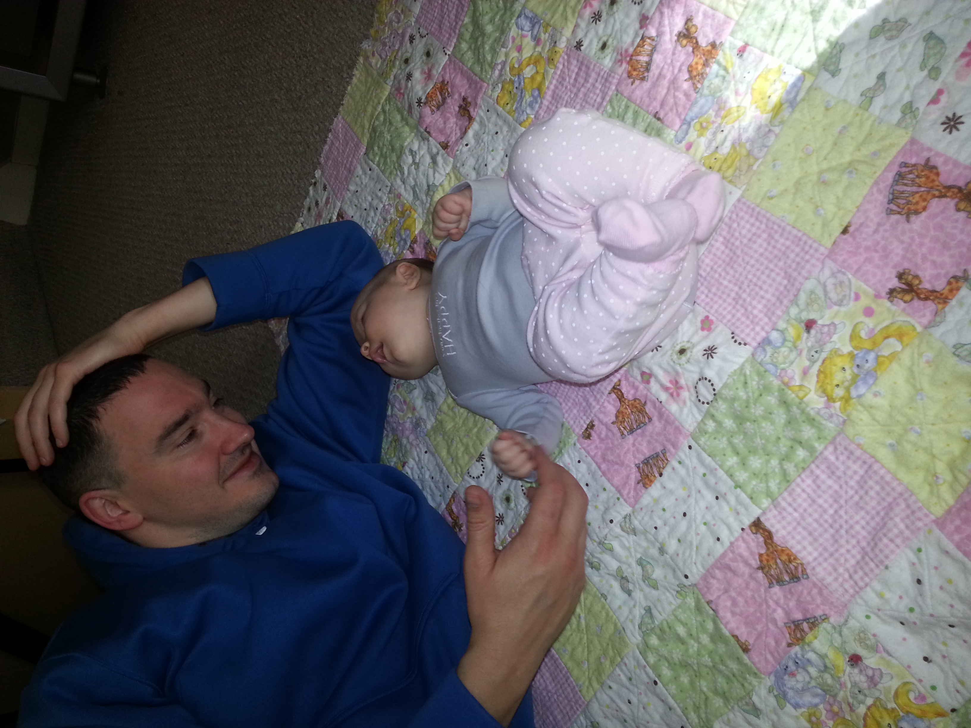 This is from a couple of weeks ago. She loves riding on daddy's back. It's so cute. She plays with his ears the whole time.