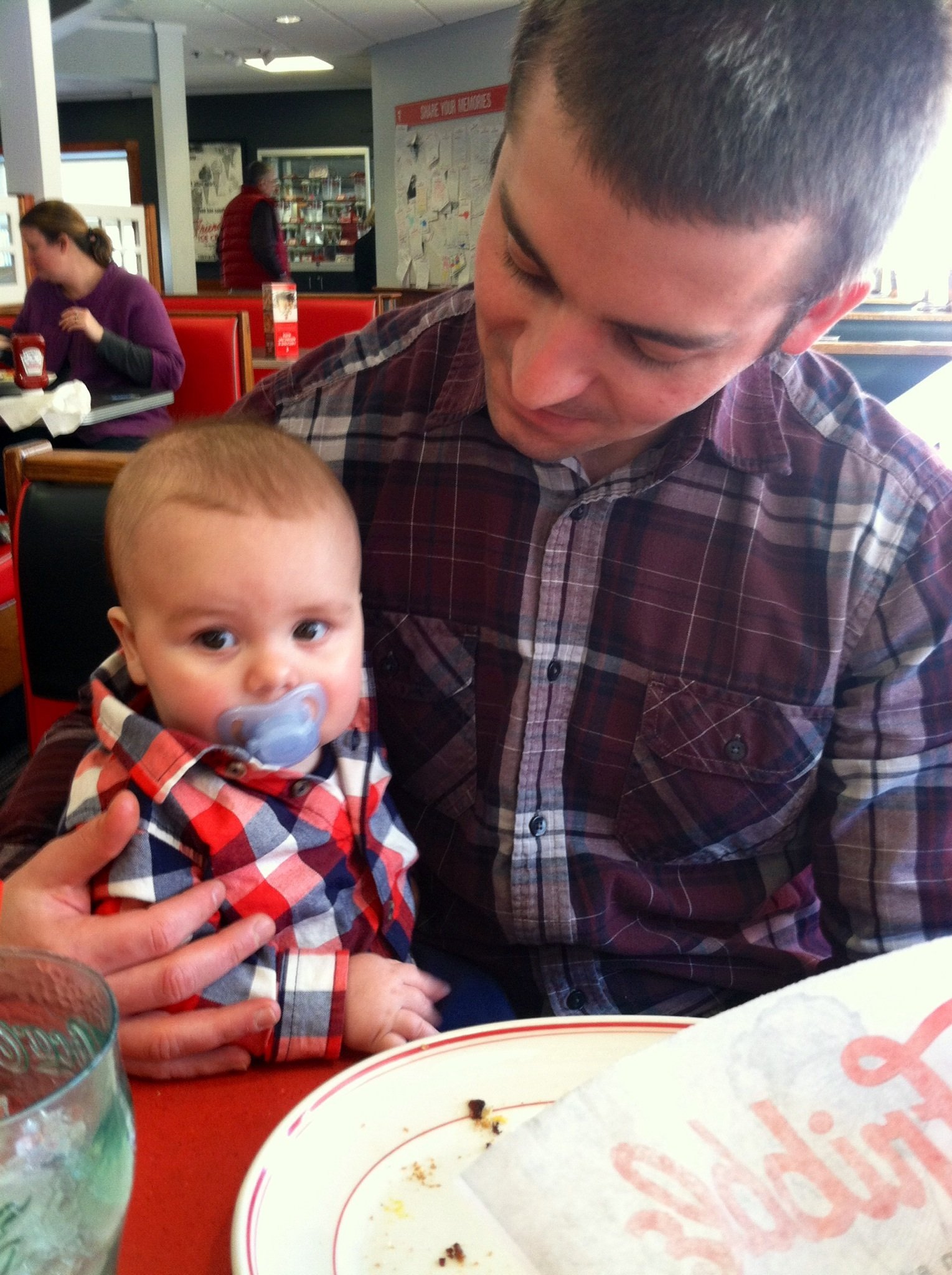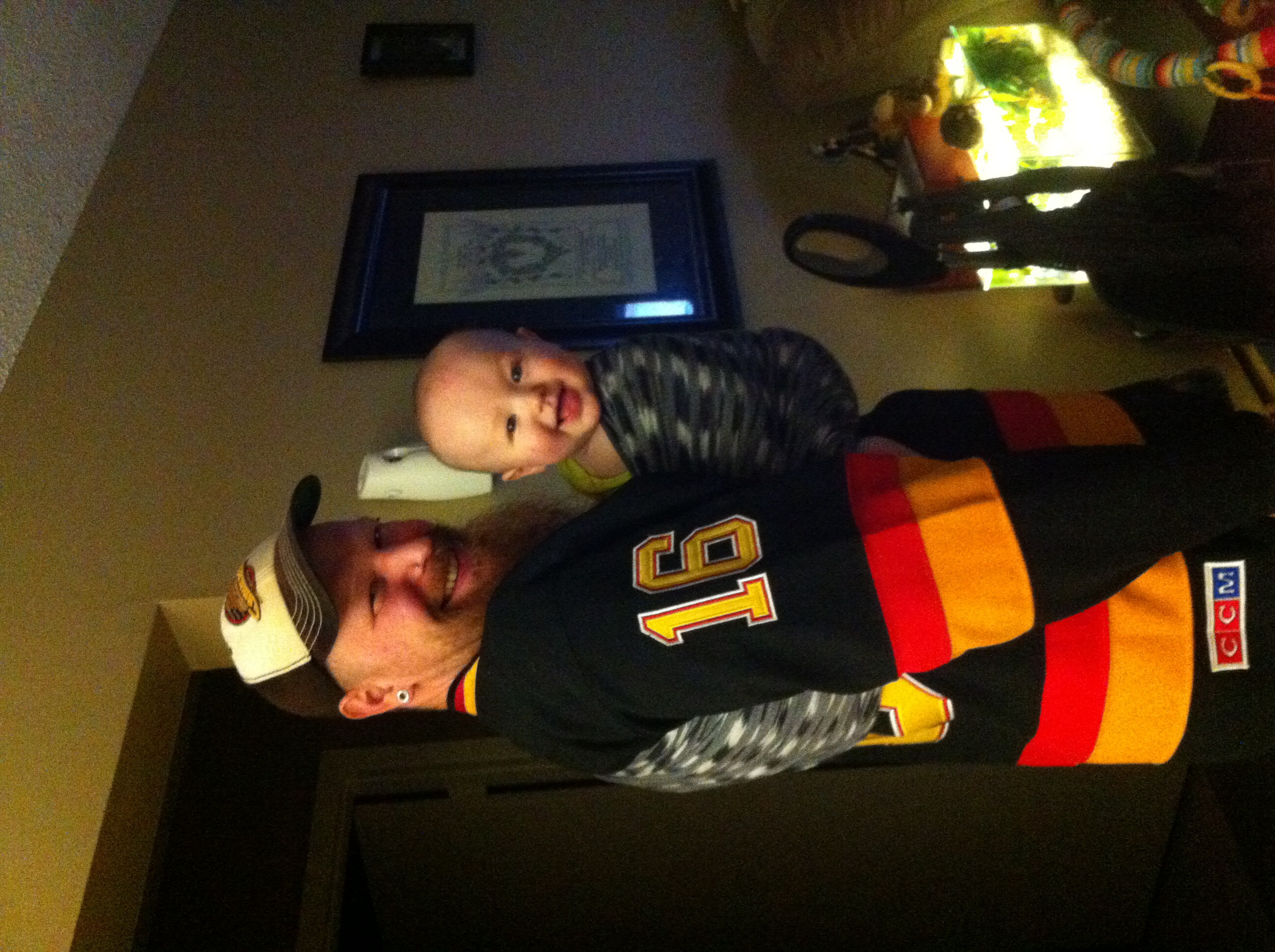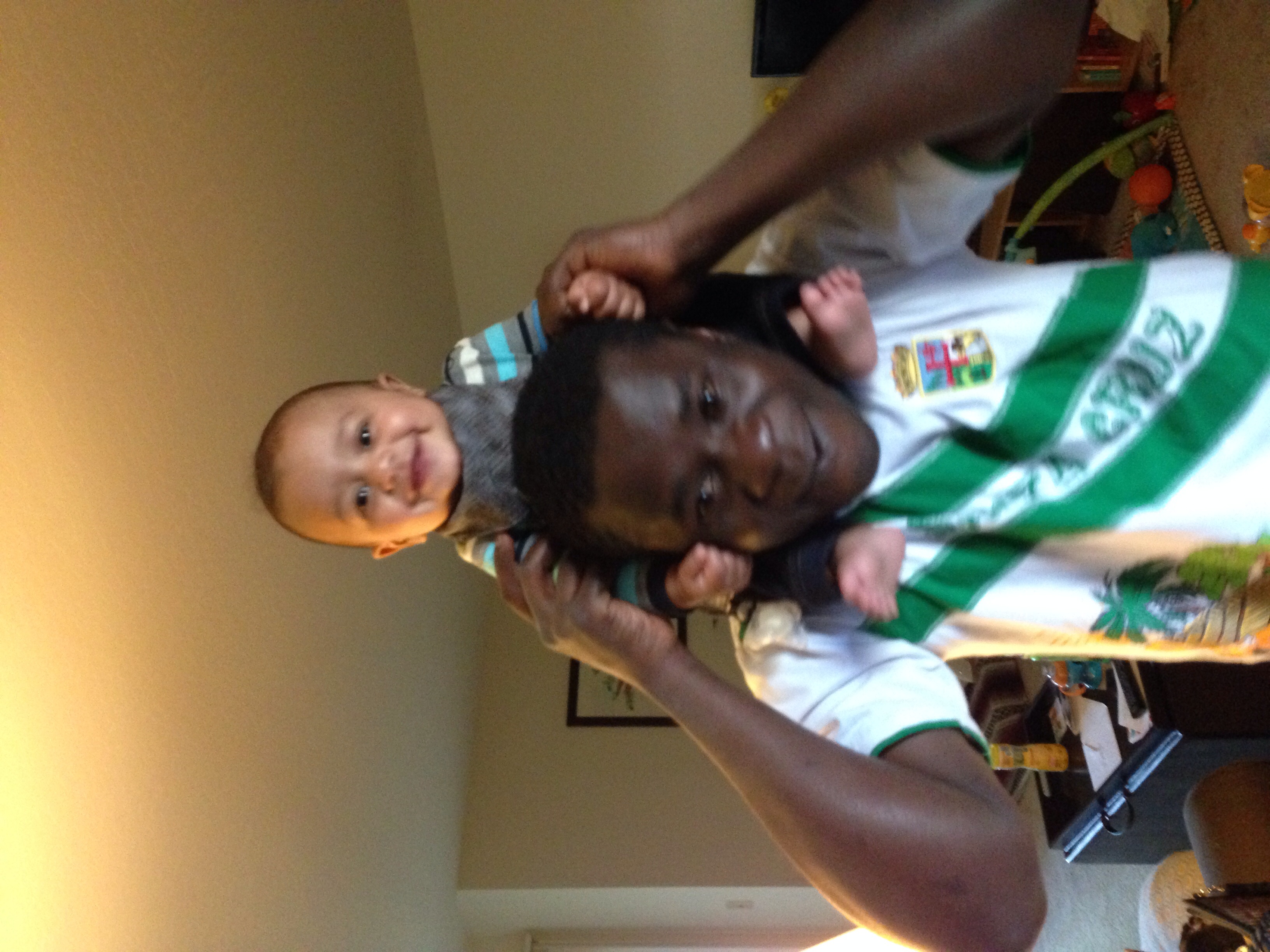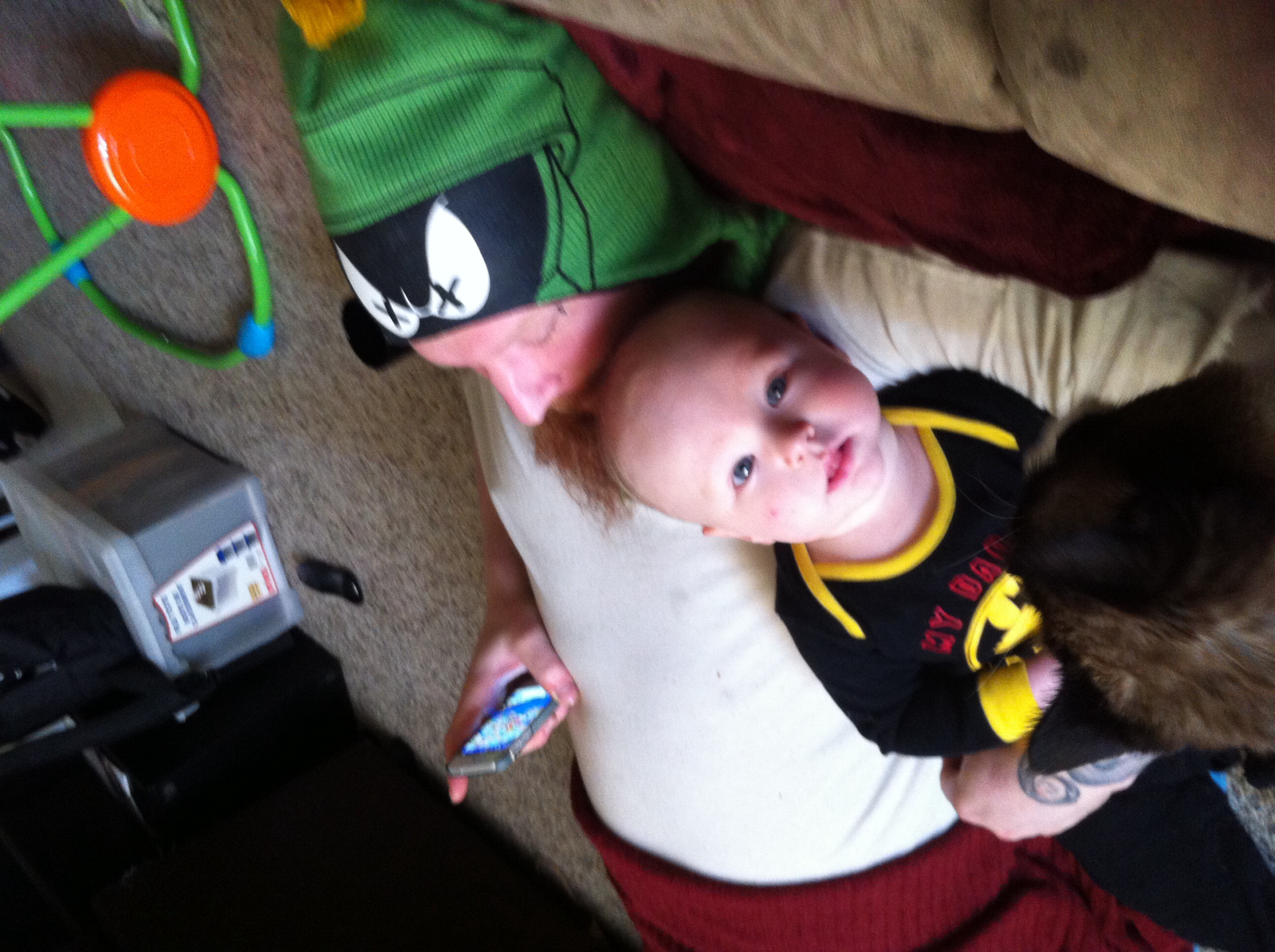This is from a couple of weeks ago. She loves riding on daddy's back. It's so cute. She plays with his ears the whole time.