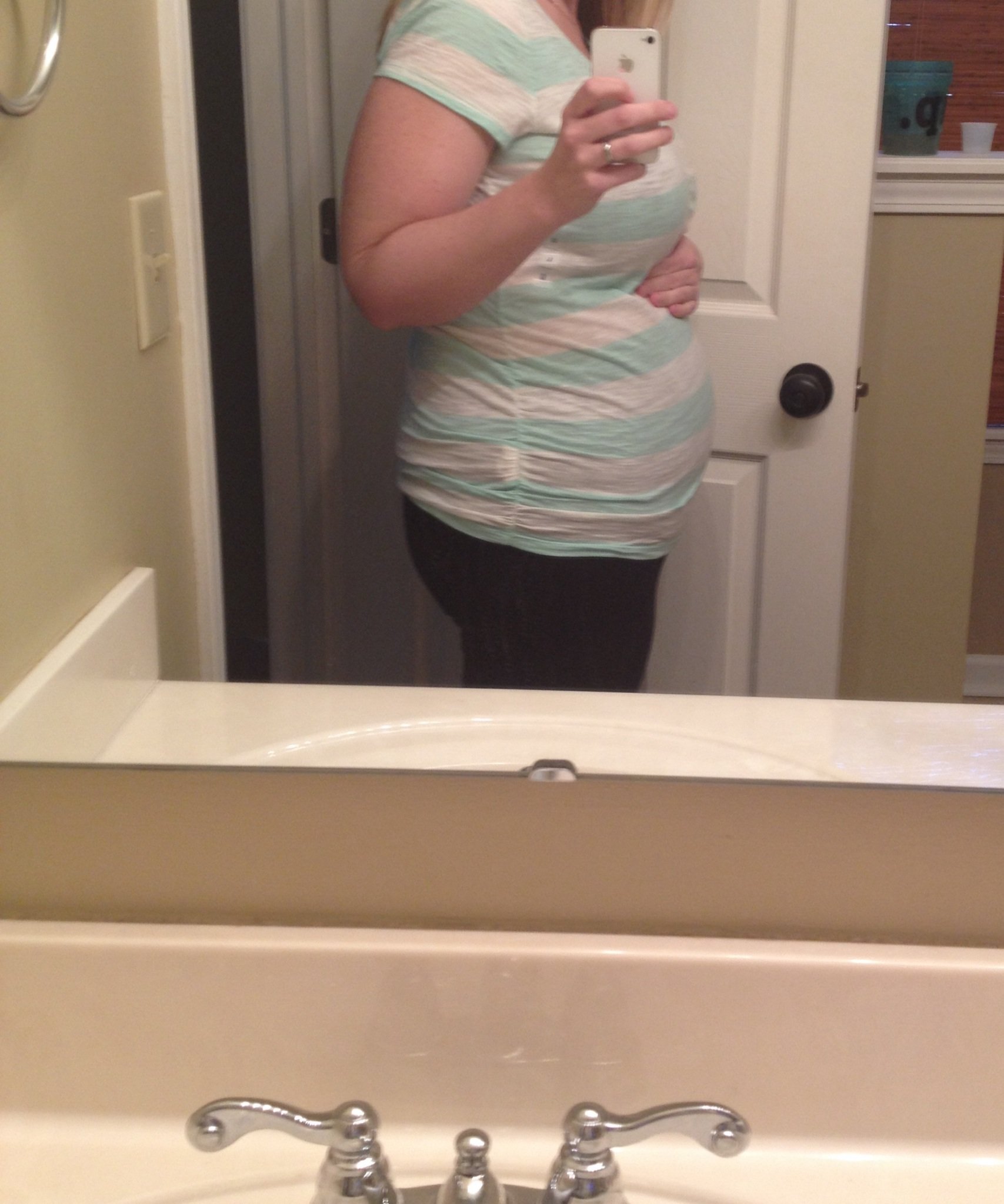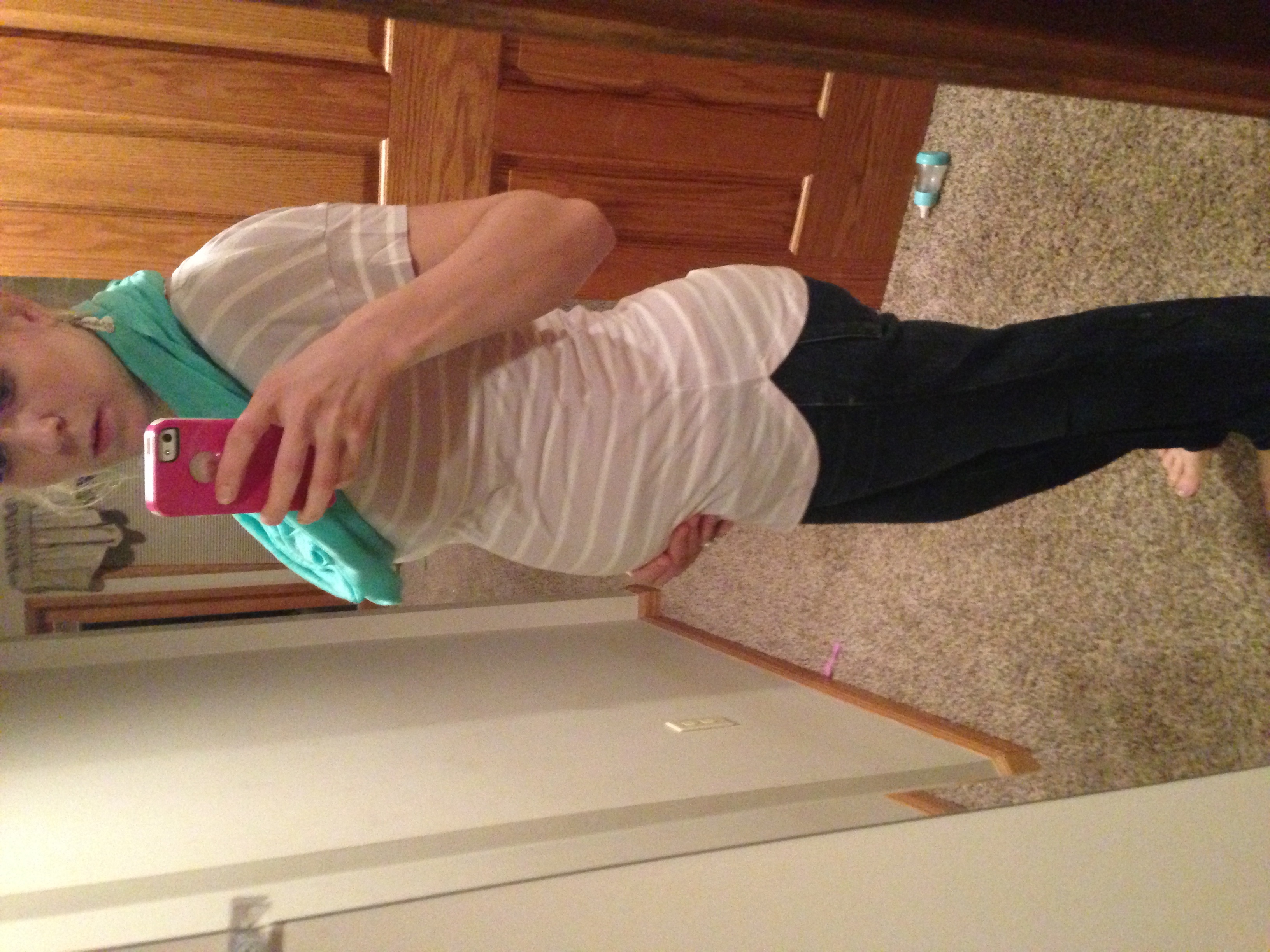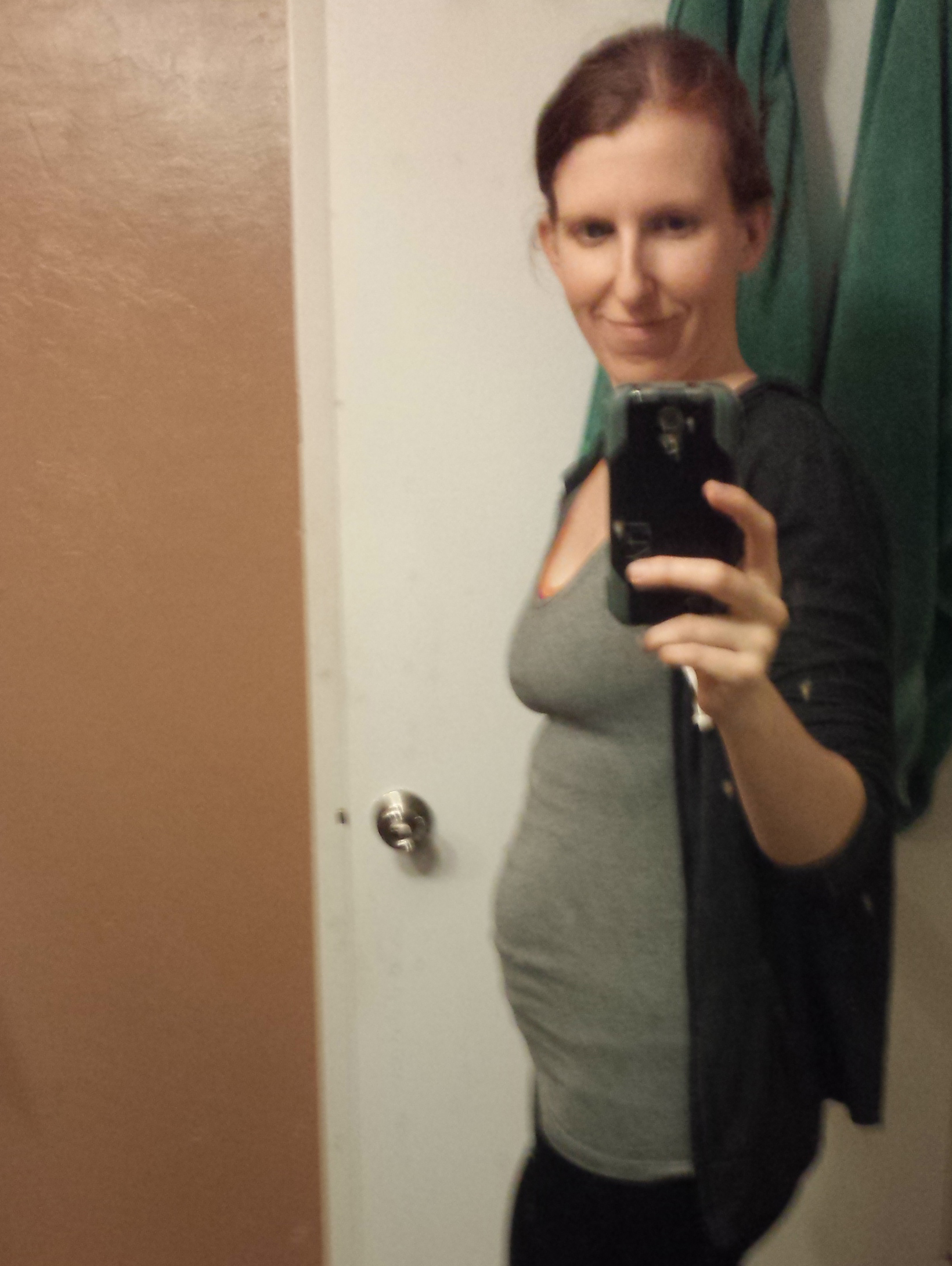 Took this yesterday at 15wk5days. Got my first bump comment today from someone who knows I'm pregnant. I was totally over the moon that someone that doesn't know me well has noticed! 8->