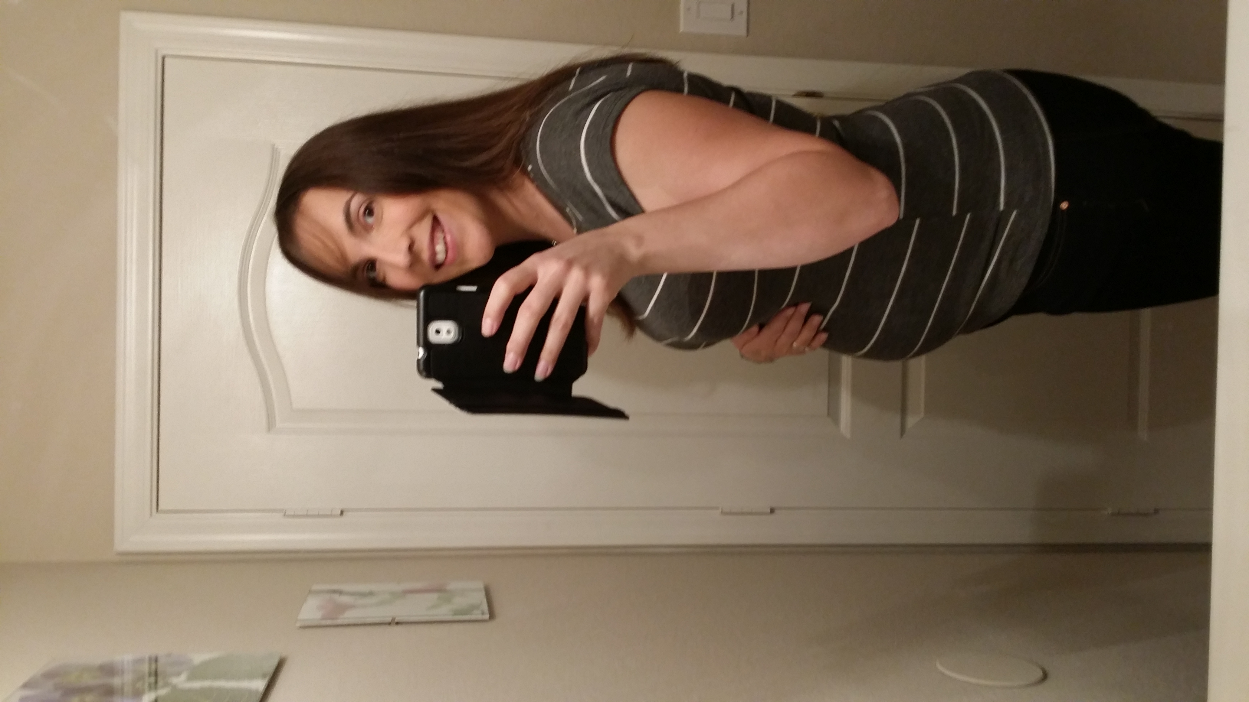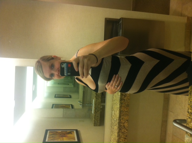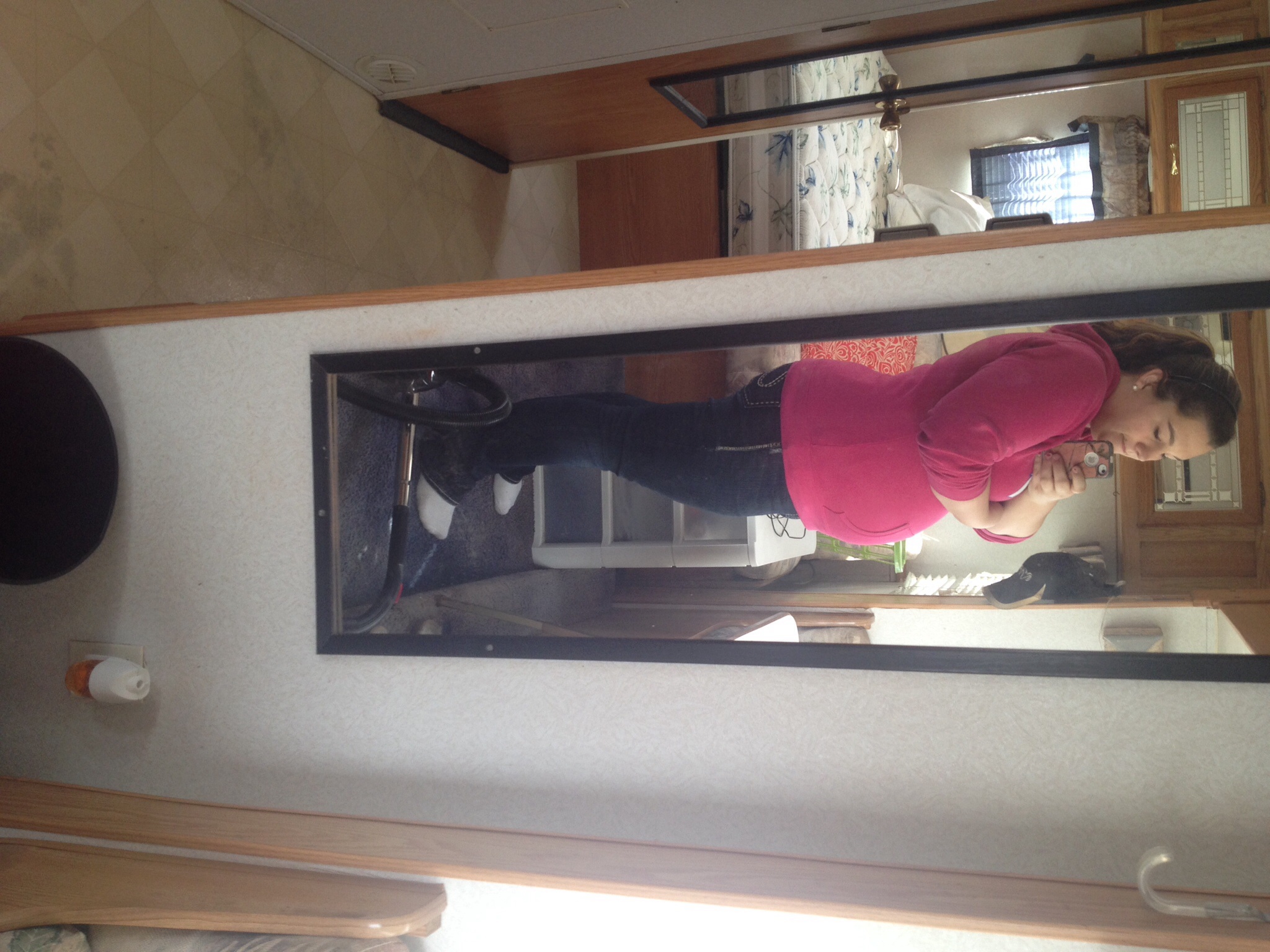 I know what you mean. I feel like when I am in maternity clothes (or at least 1 piece is) I look pregnant but today I had the bright idea to wear a top and bottoms that are my regular clothes and I just feel fat today. I knew it before I left the house too but just didn't care