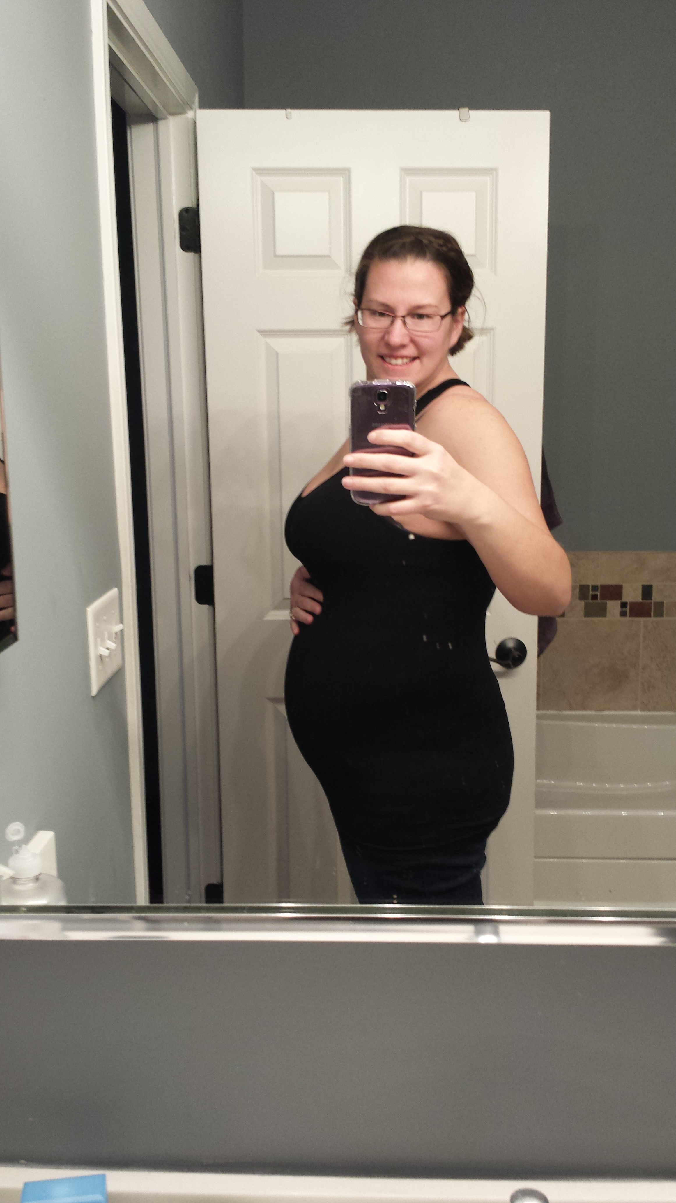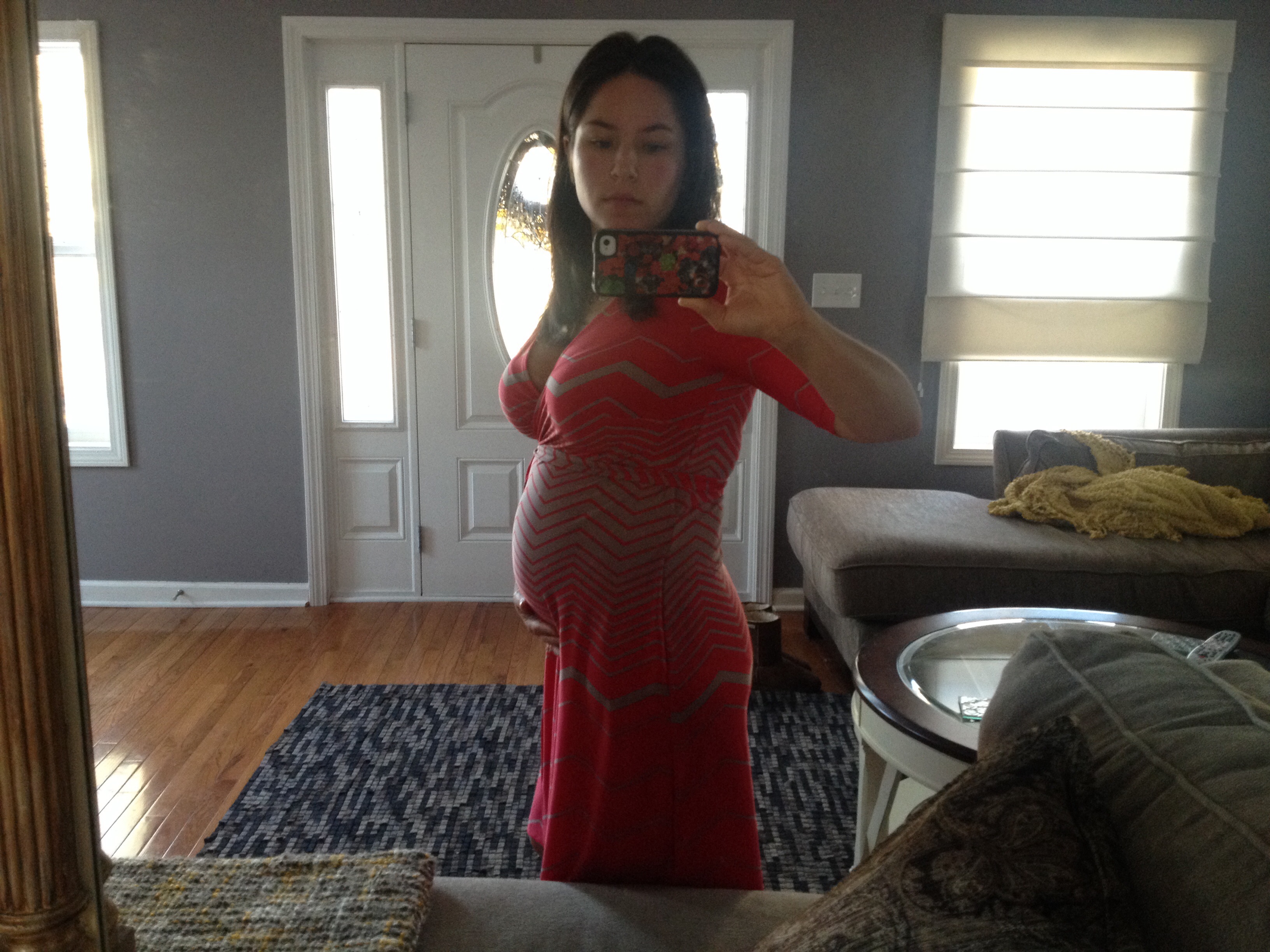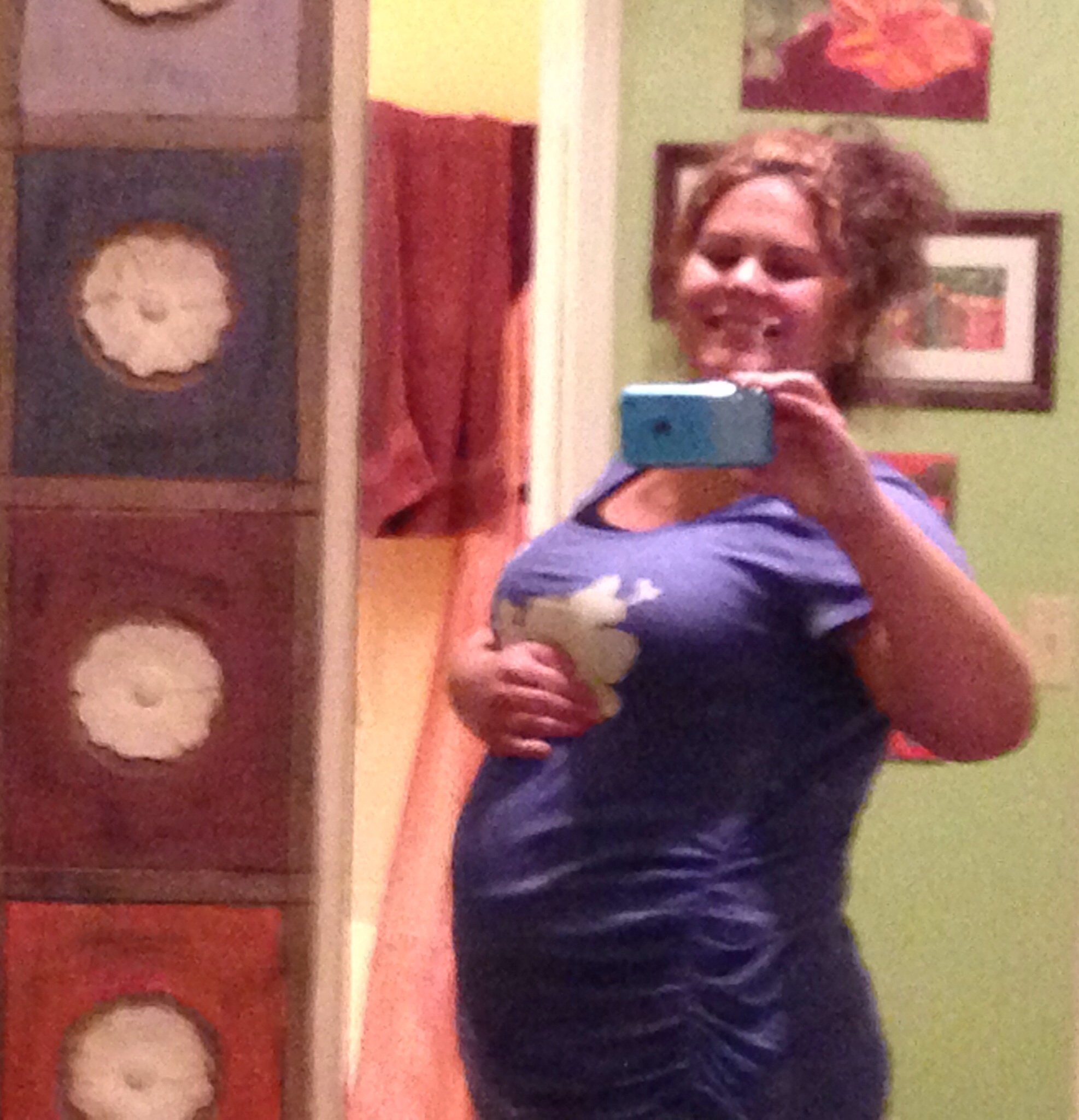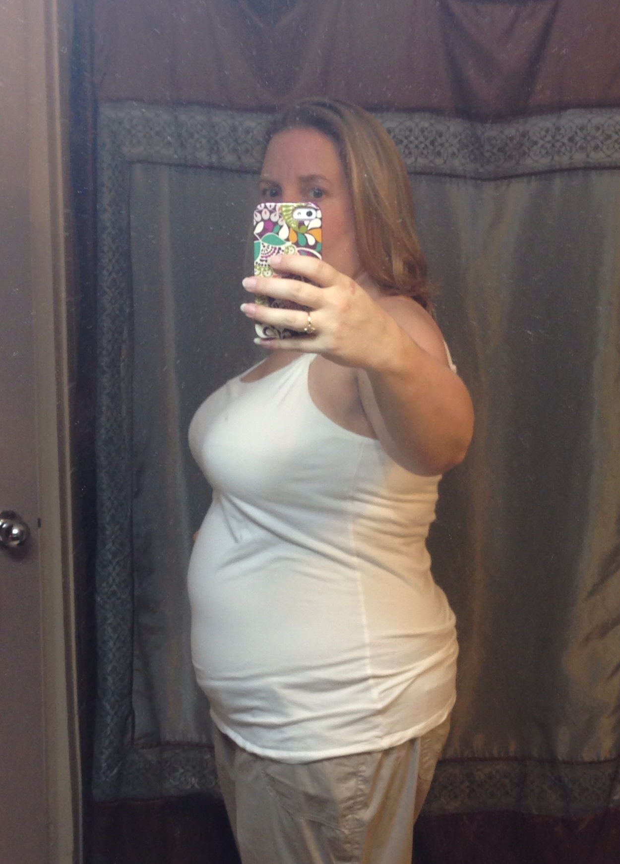 21 weeks, last Friday. Wanting it to round out a bit so I can actually look definitively pregnant and not "Is she pregnant, or is she fat?"