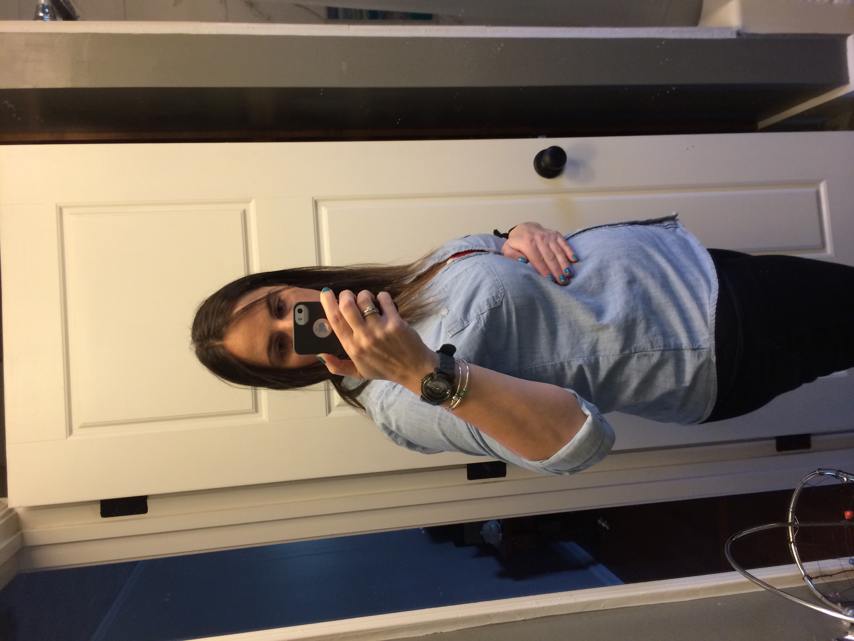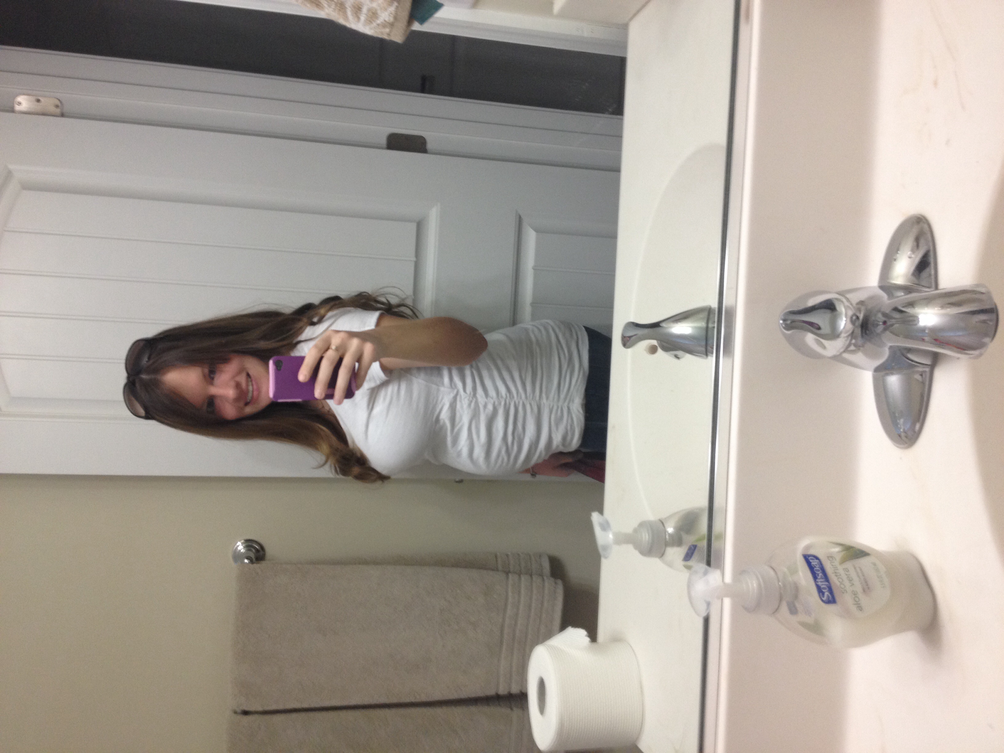 Always late, I just can never take a picture until I get home. I can't take bathroom selfies at work, the mirror is too high. I can barely see my head.