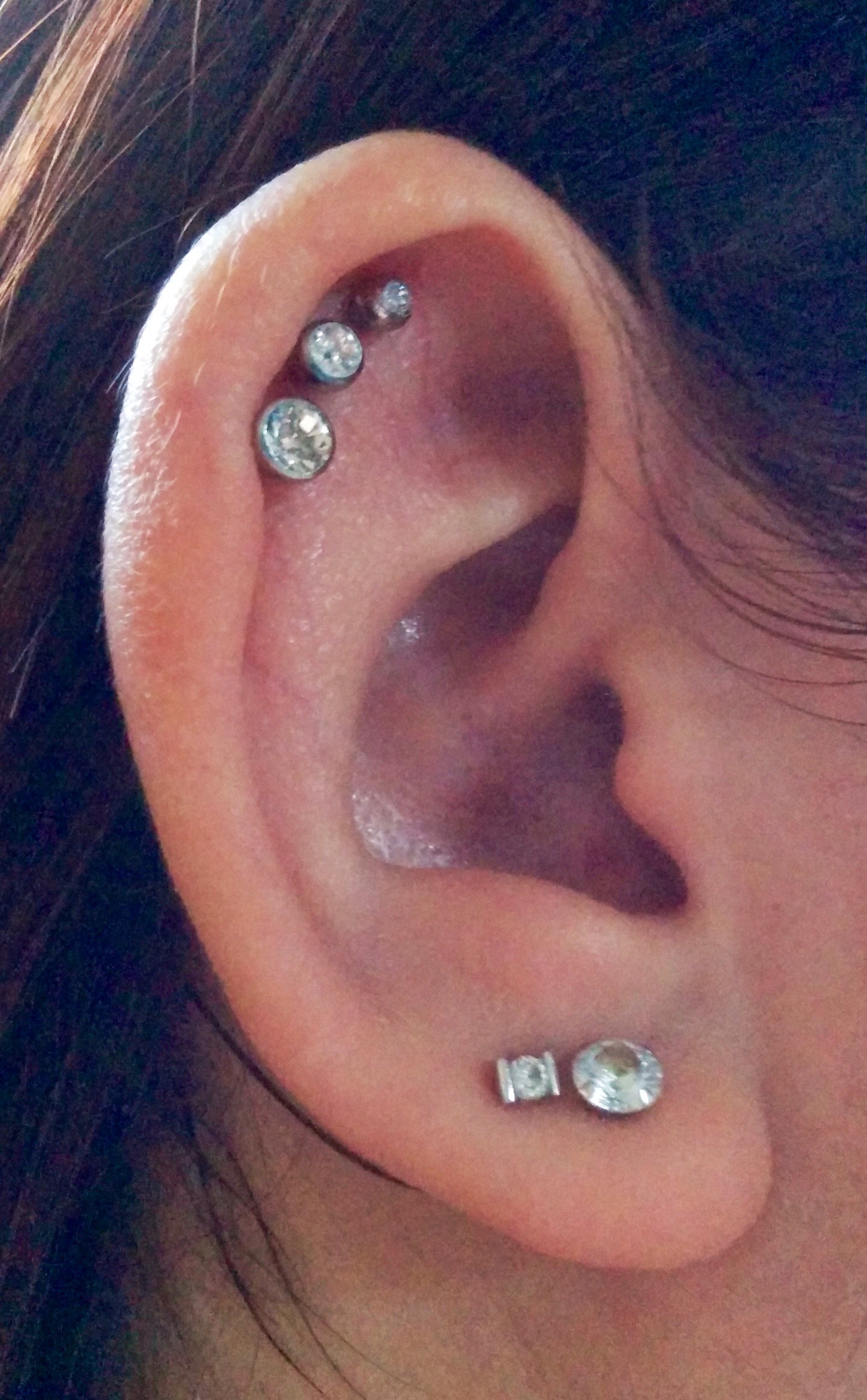 I currently only have 3 holes in each ear. They all used to be gaged, but I let them close up. I also used to have snake bites (bottom lip pierced on both sides) and my nose double pierced.