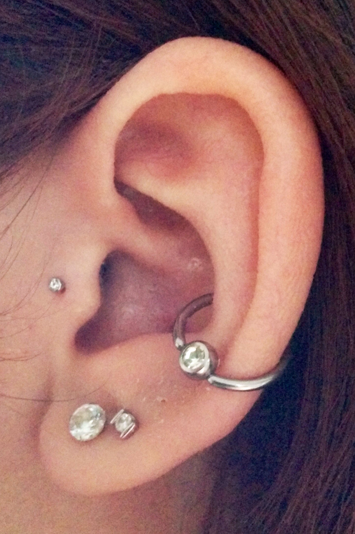 Yeeeea... I'm all about putting holes in my body, haha. I currently have 12. I've retired 3, but I did have 15. Mine are all relatively tasteful though, all of my jewelry matches (all white cubic zirconias). The only hoop I have in right now is my conch.