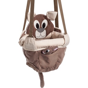 Eta if he's in the jumper I'm right beside him do he doesn't swing and hit the door frame or anything.!