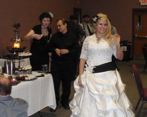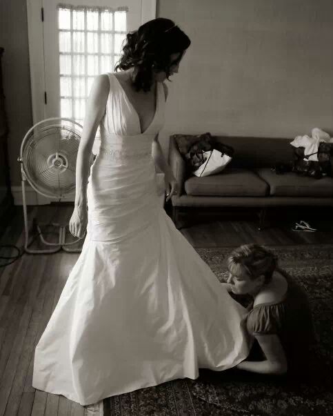I just got married this past Jan. so I haven't gotten all of my pics back from the photographer yet, but here is one that I have. I loved my dress! Sorry its so big...couldn't make is smaller from this computer.