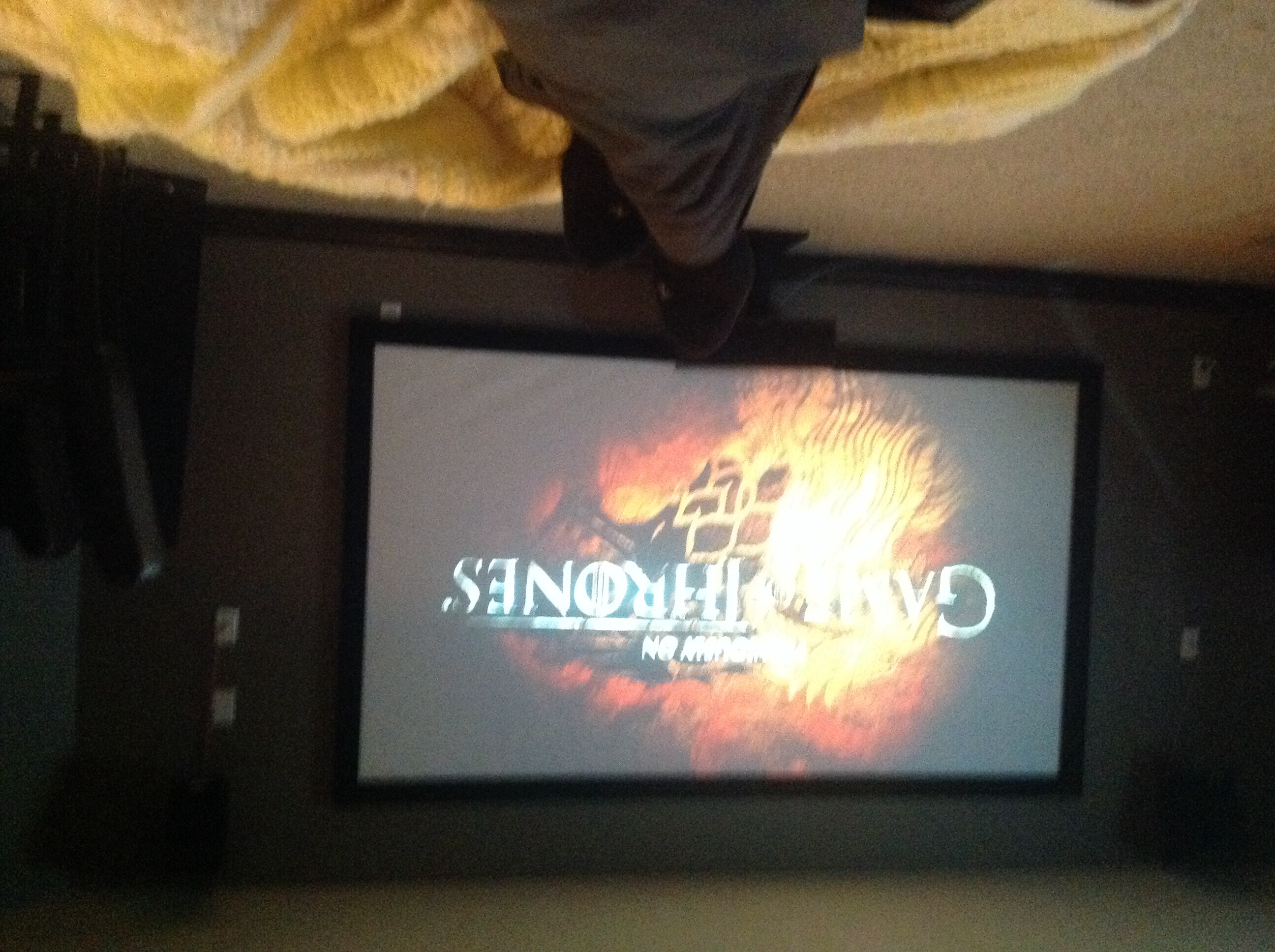 I am babysitting my nephews, downside: I am by myself with four kids under seven. Major upside, my brother has a projection tv, posted upside down but hey, it's badass.