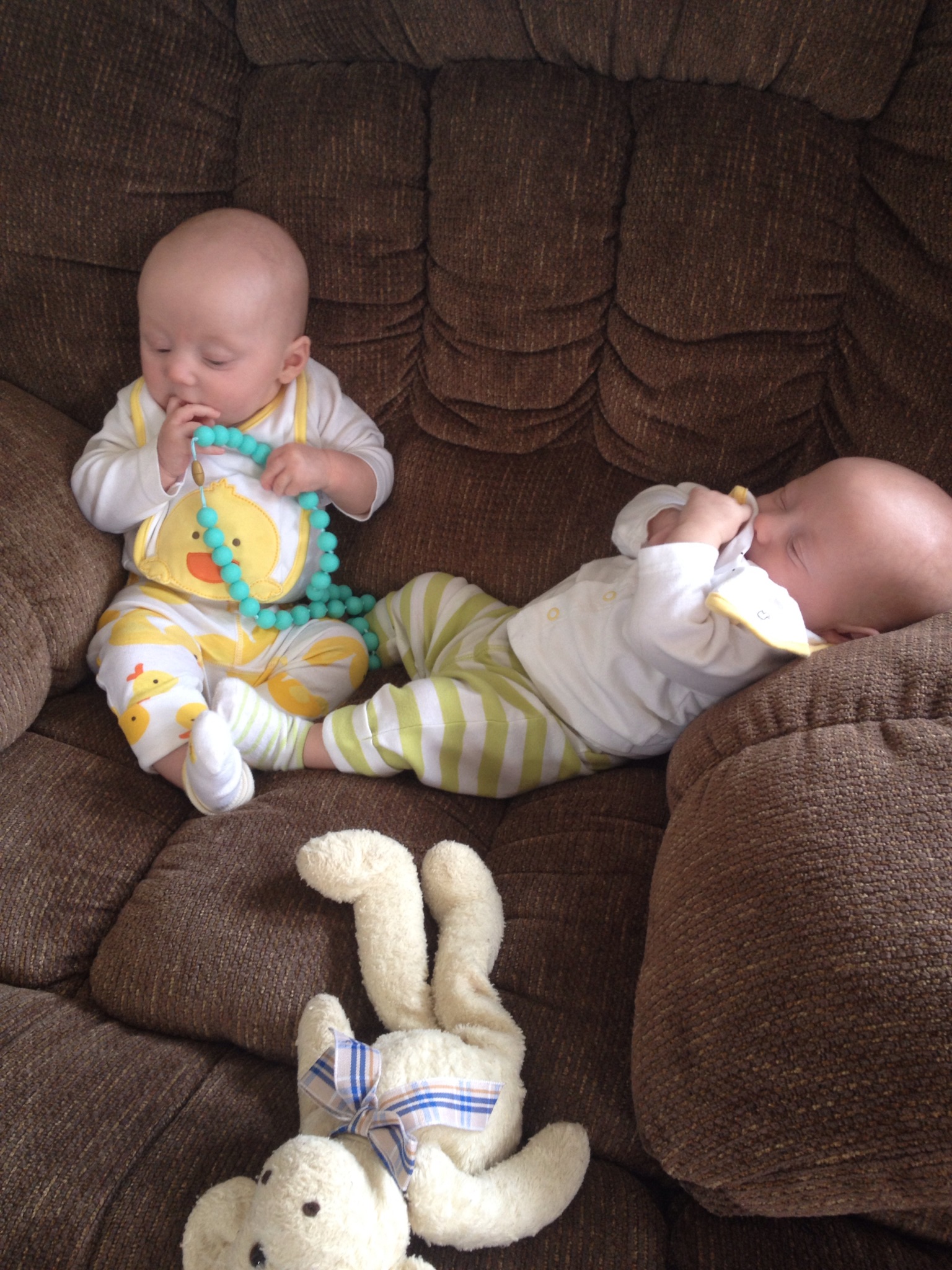 3. Accomplishments / Struggles: the distractions! Sooo hard to tandem right now with all the things to see/touch/the brother. Accomplishments- still no formula at 9 months! They were on the small side at their checkup, but pedi says they are growing just fine so trying not to worry.
