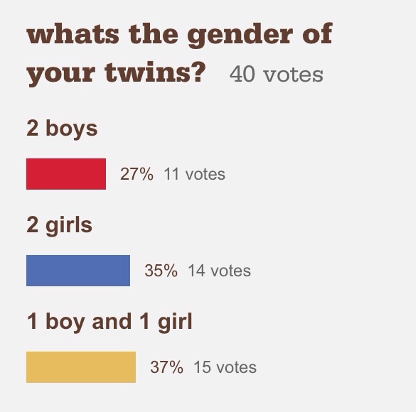 mine shows b/b 22% with 7 votes, g/g 32% with 10 votes, b/g 45% with 14 votes.