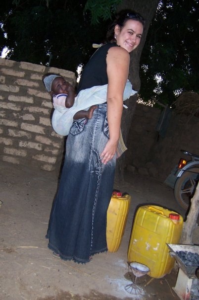 Baby wearing African style. I tried to do it and they have the babies so low sometimes I was worried the whole time and kept my hand on her until took her off.