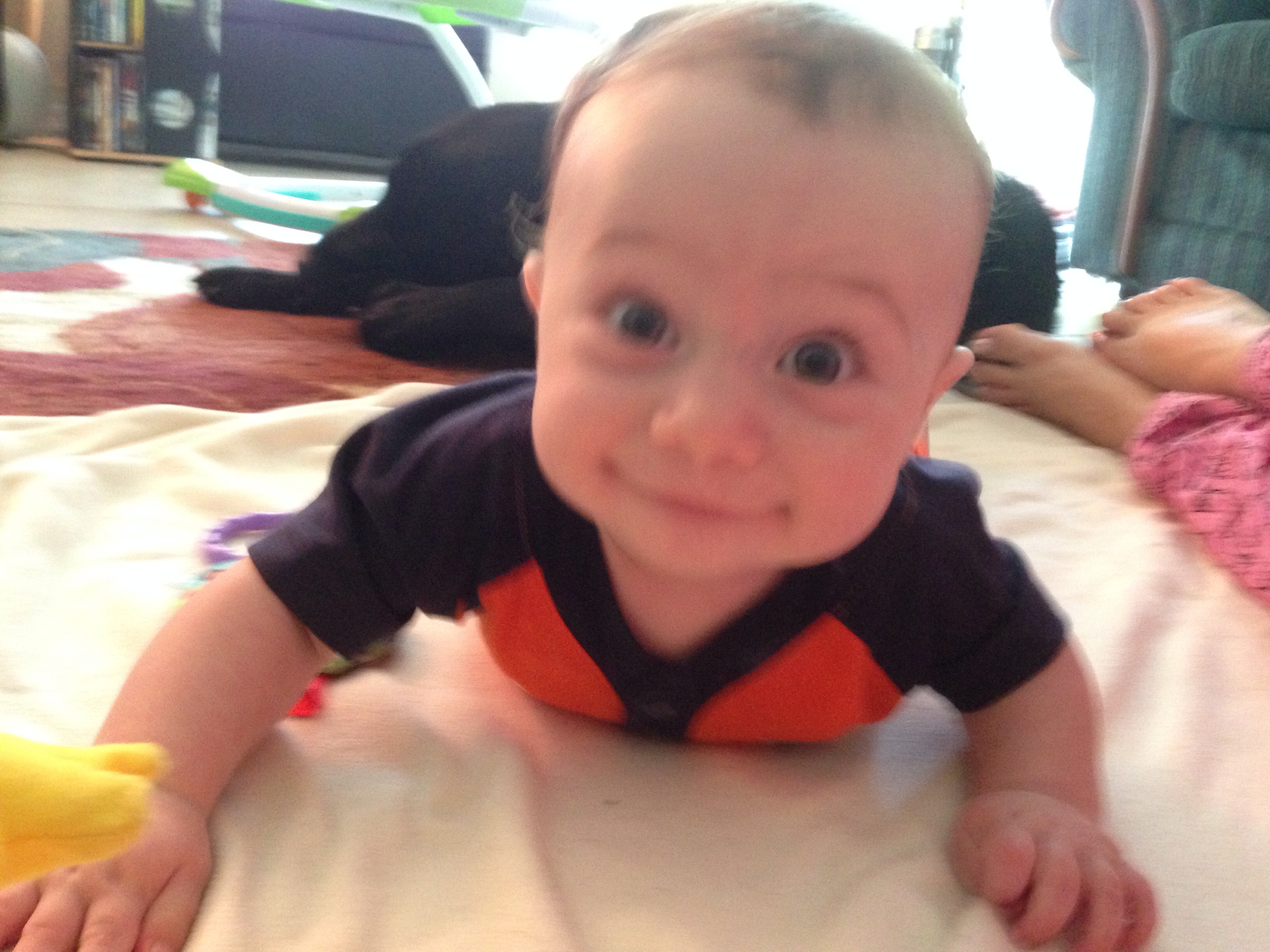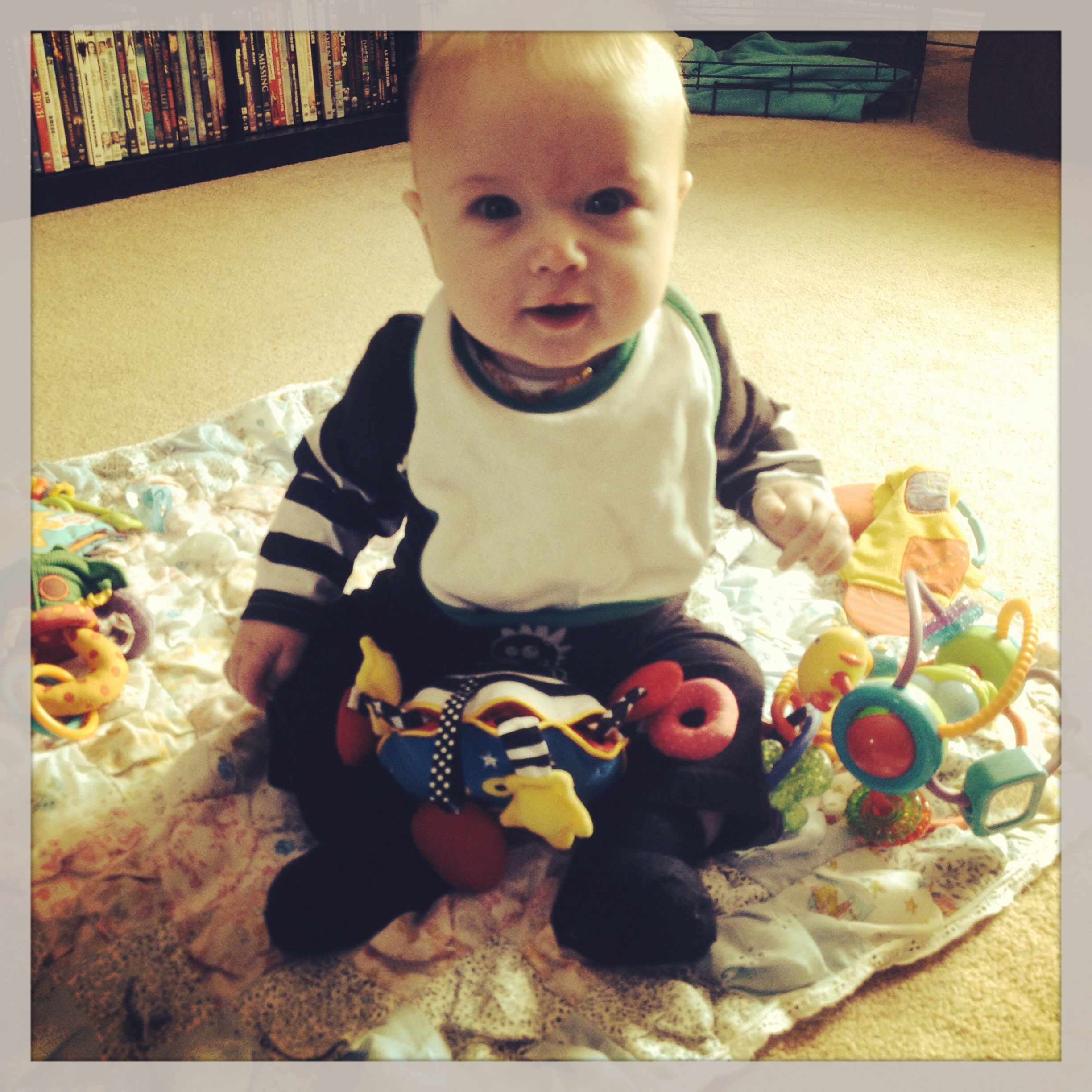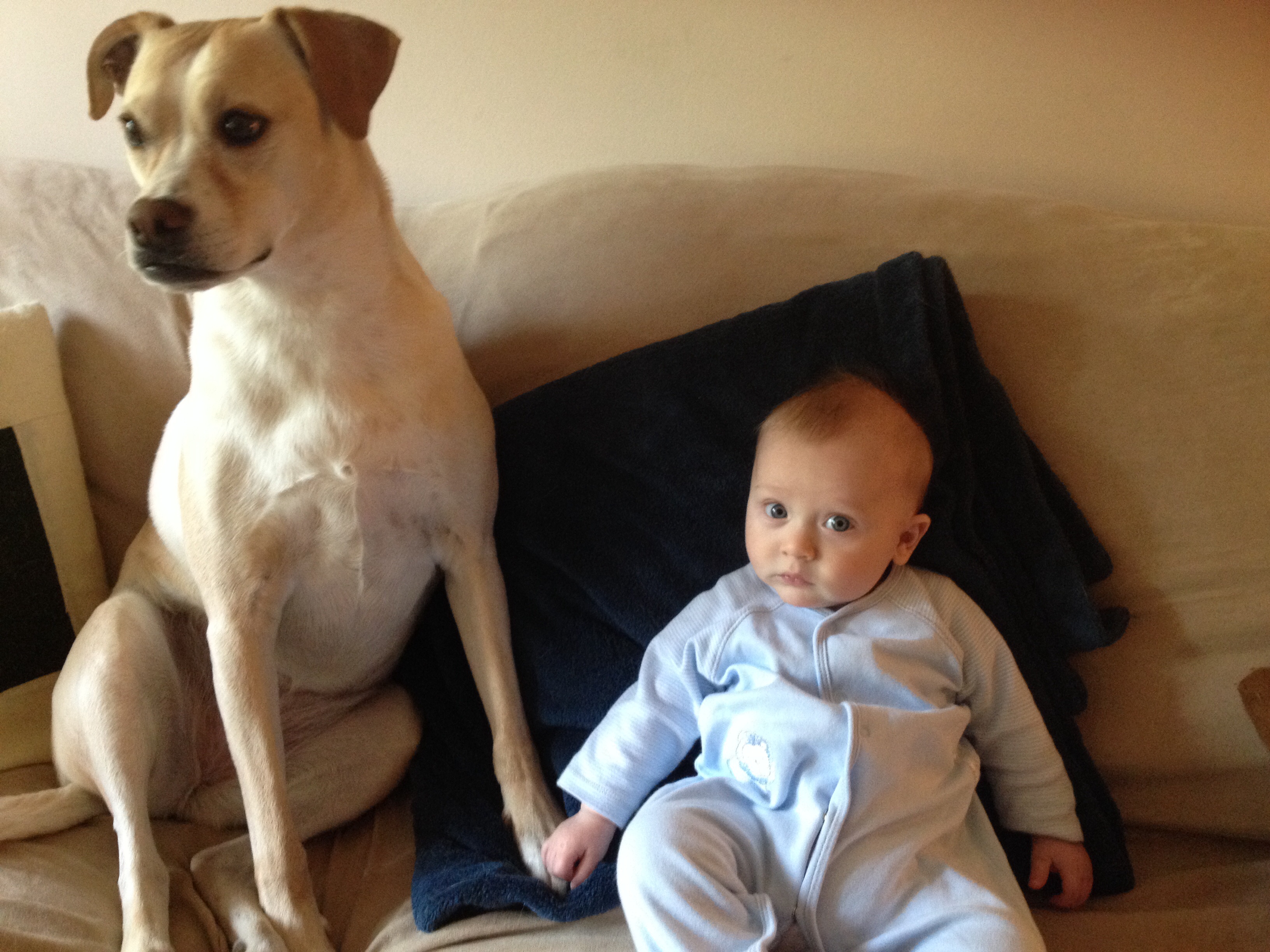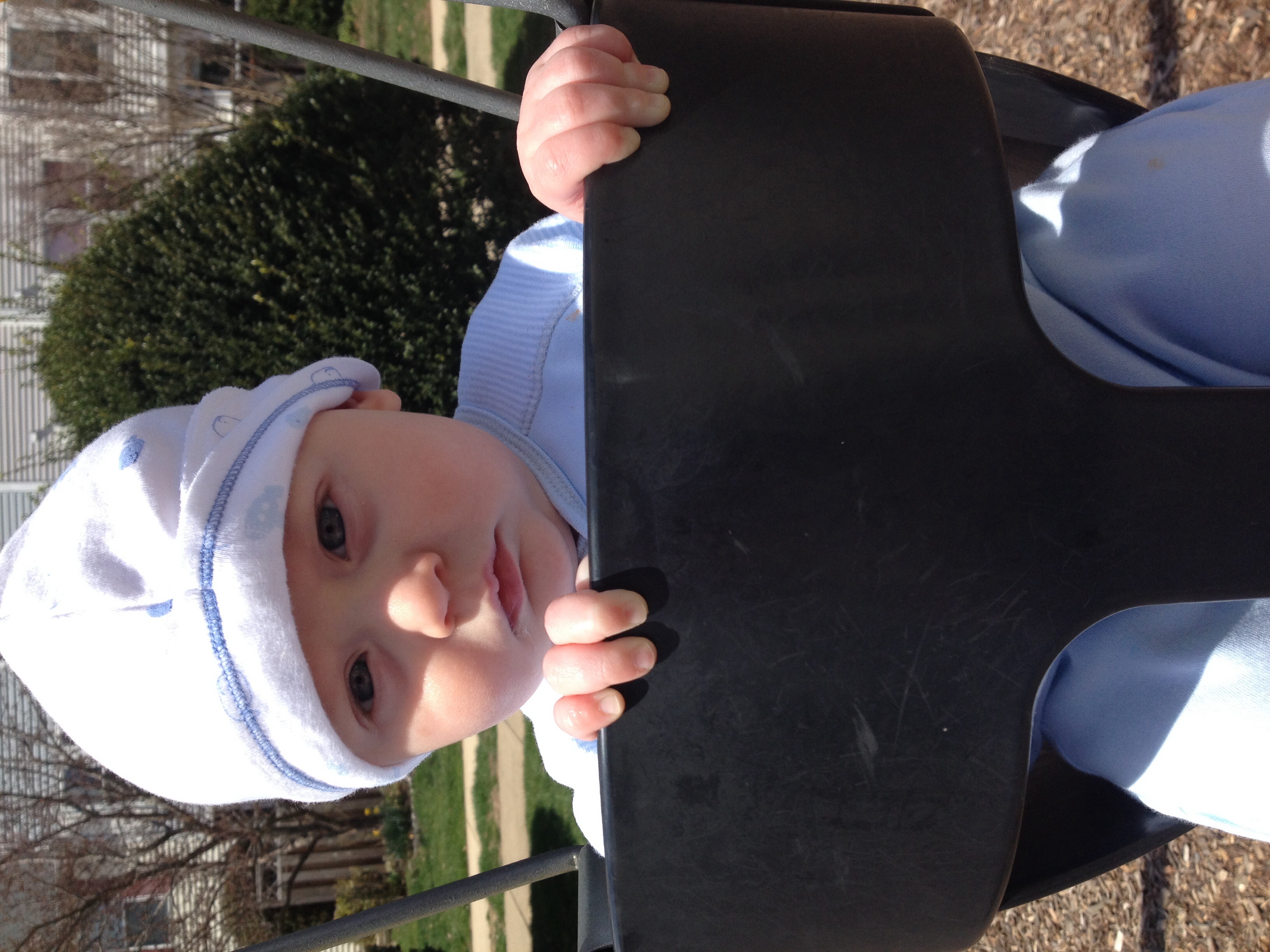 Someone's growing up wayyyyy too fast. I'm not ready for this. It was SOOO nice here on Sunday so we spent the whole day outside walking, playing in the exersaucer, and cuddling. And one from yesterday just chilling with his Paisley.