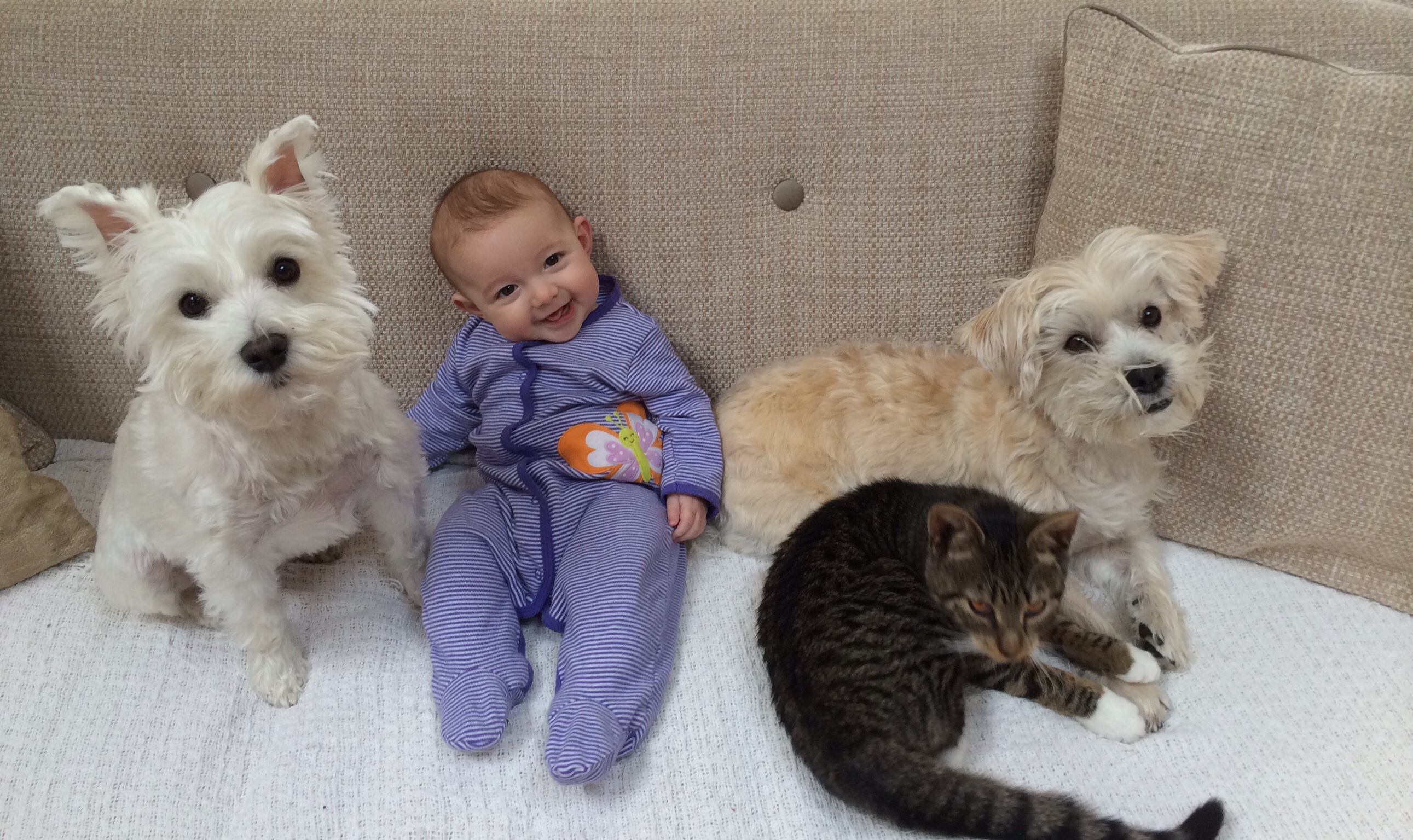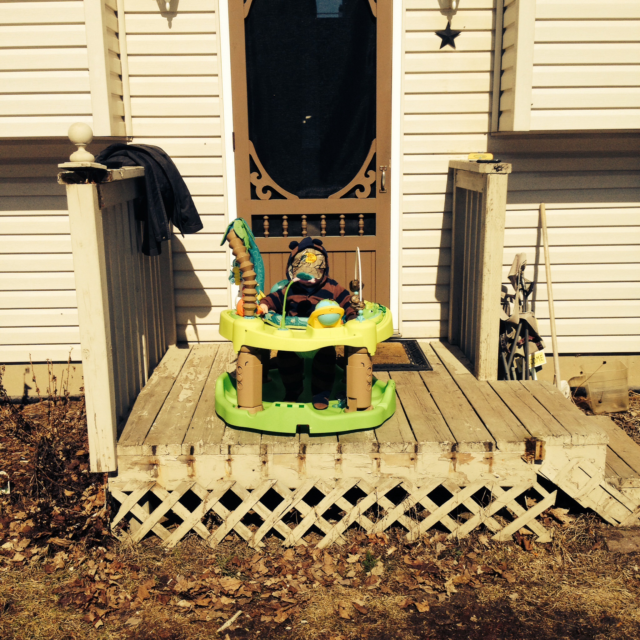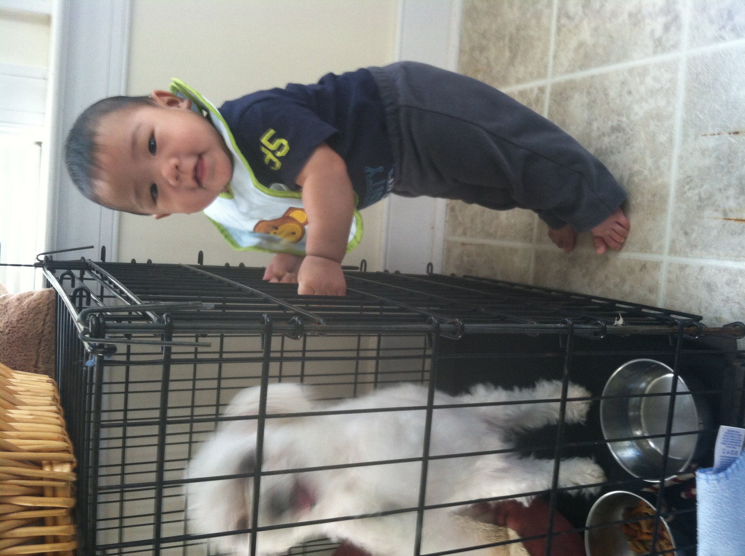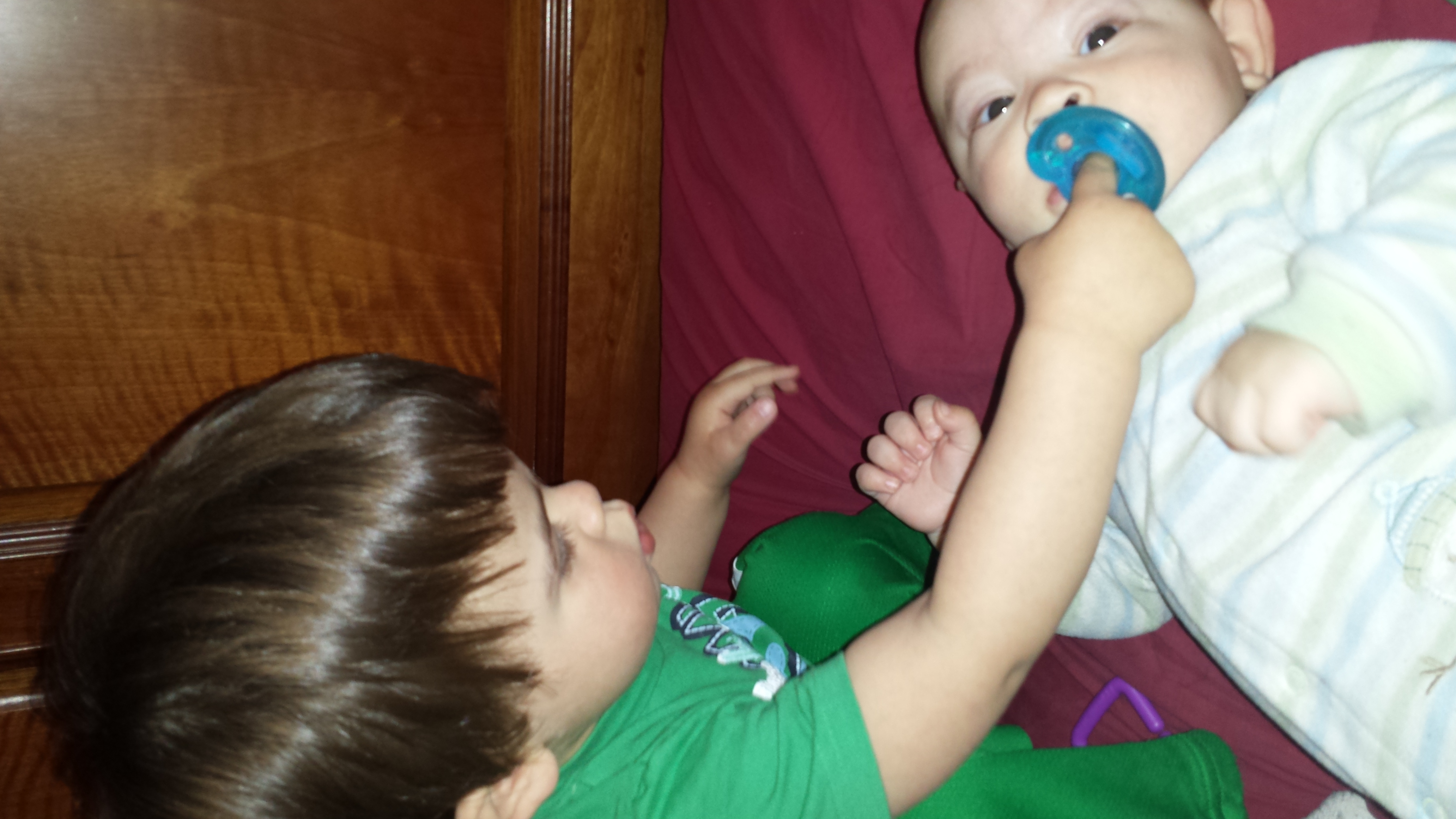 Someone's growing up wayyyyy too fast. I'm not ready for this. It was SOOO nice here on Sunday so we spent the whole day outside walking, playing in the exersaucer, and cuddling. And one from yesterday just chilling with his Paisley.