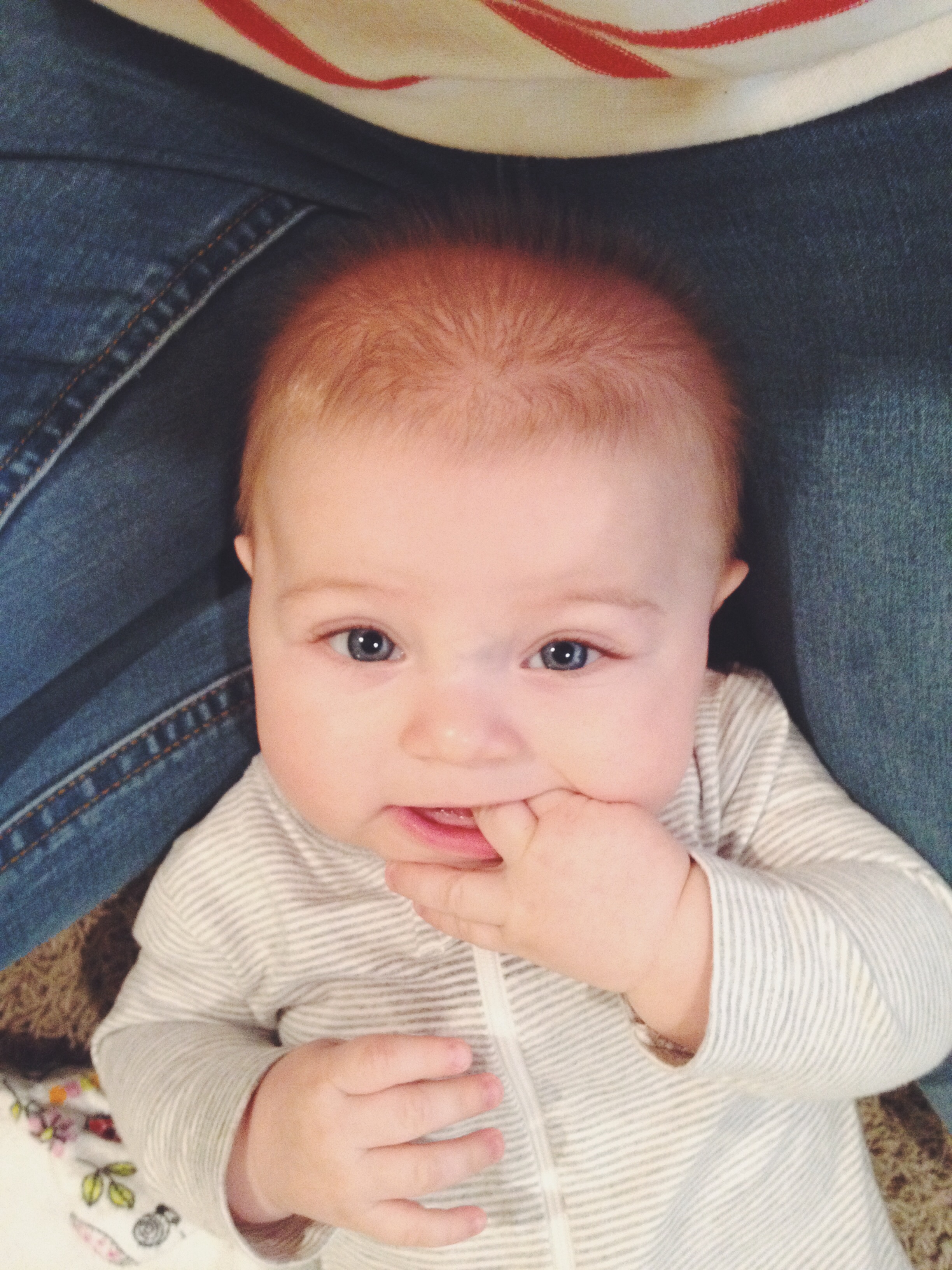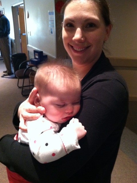 Emily fell alseep on Mommy at church on Sunday. She's 19 weeks. Don't mind Mommy's lack of makeup and undone hair : (