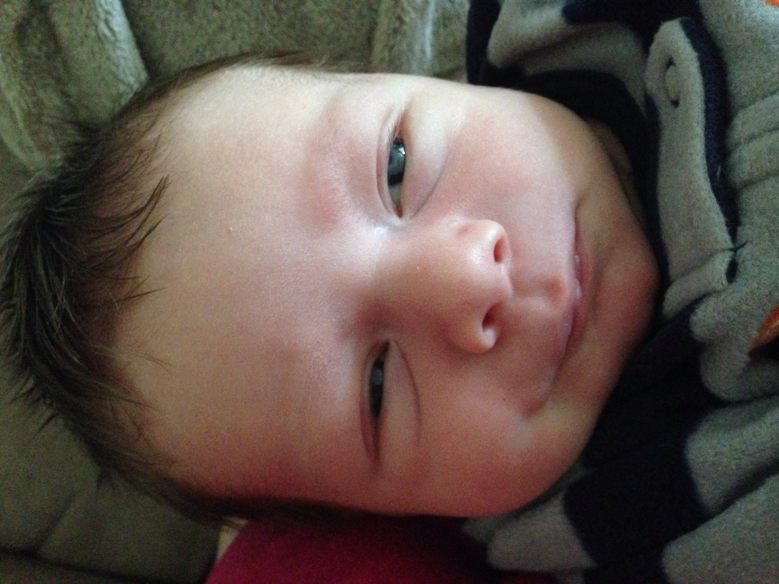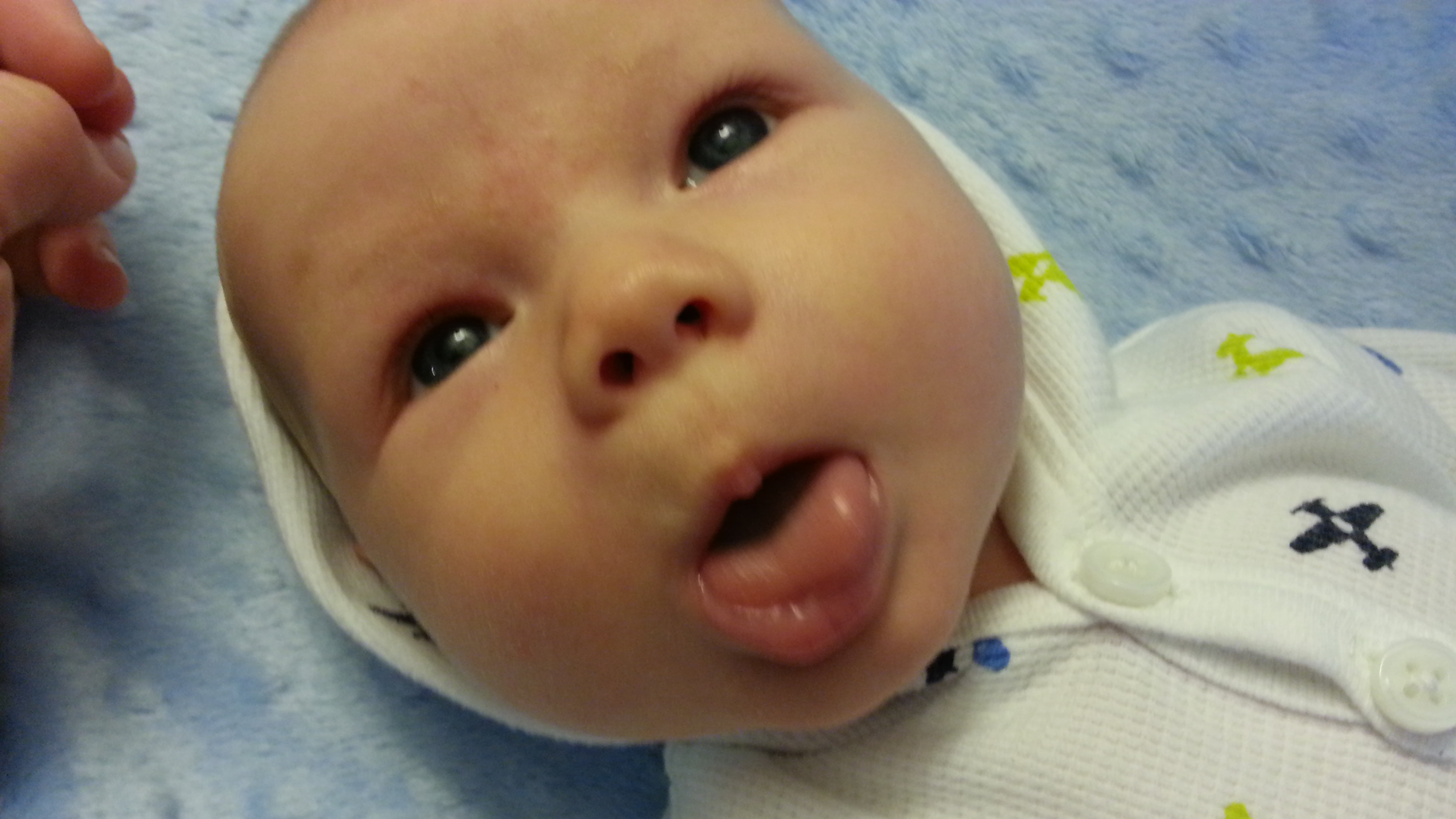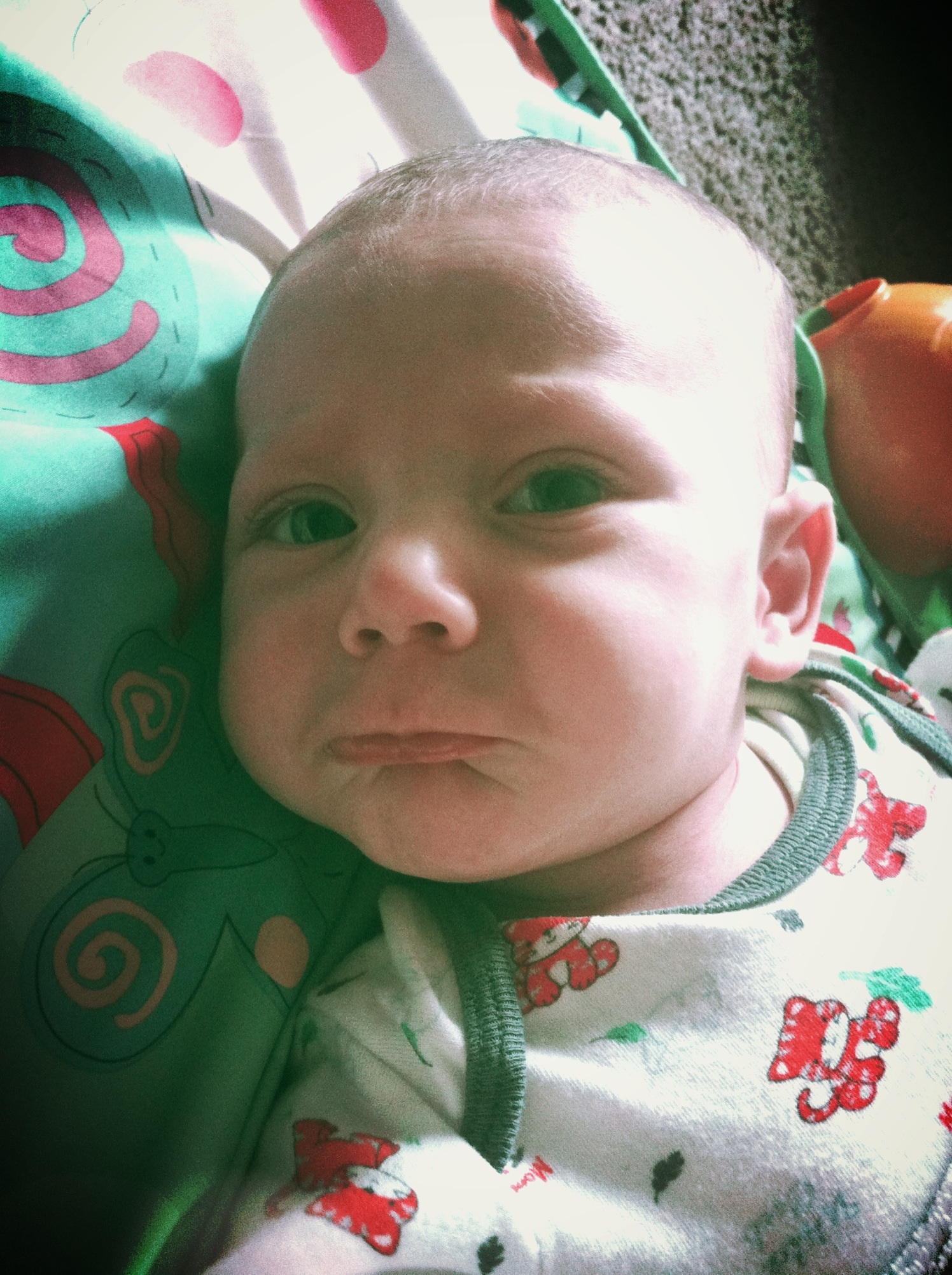 The second one is when I started getting he first smiles at a few weeks old, and when I got the camera, he decided he needed to push really hard for his afternoon poop.