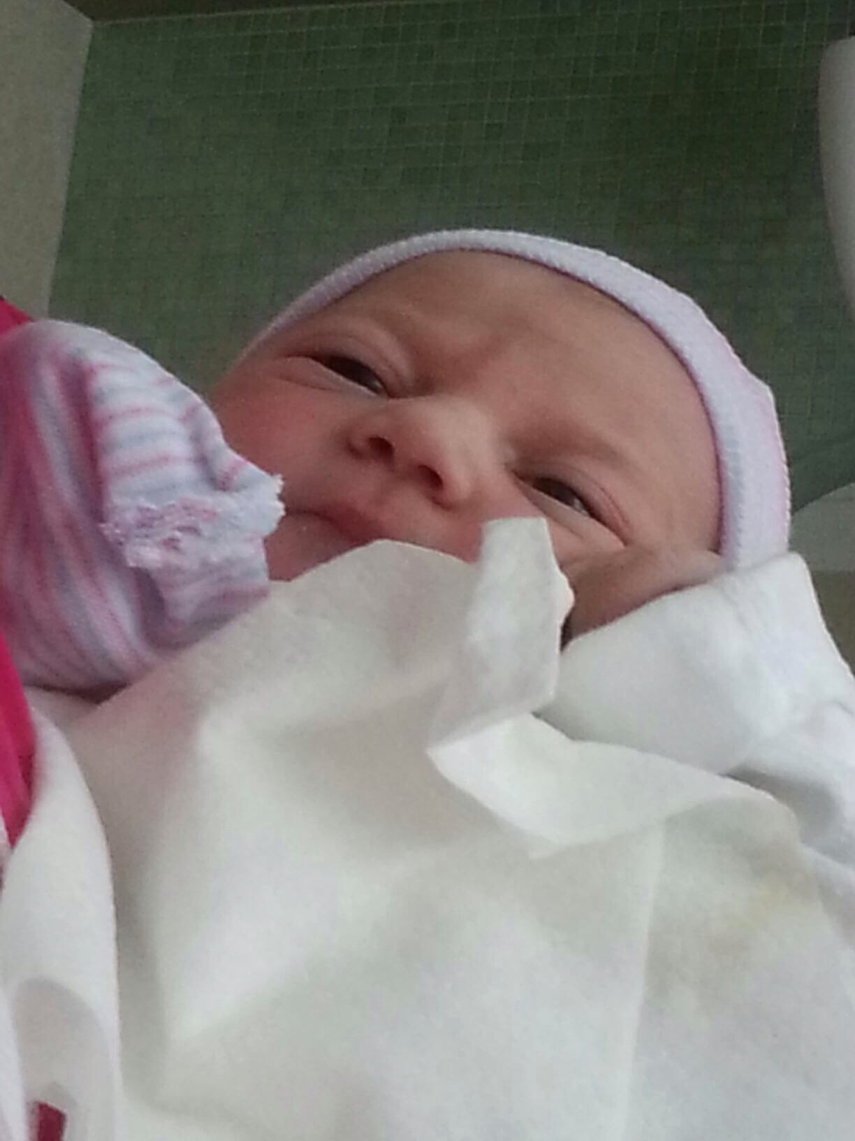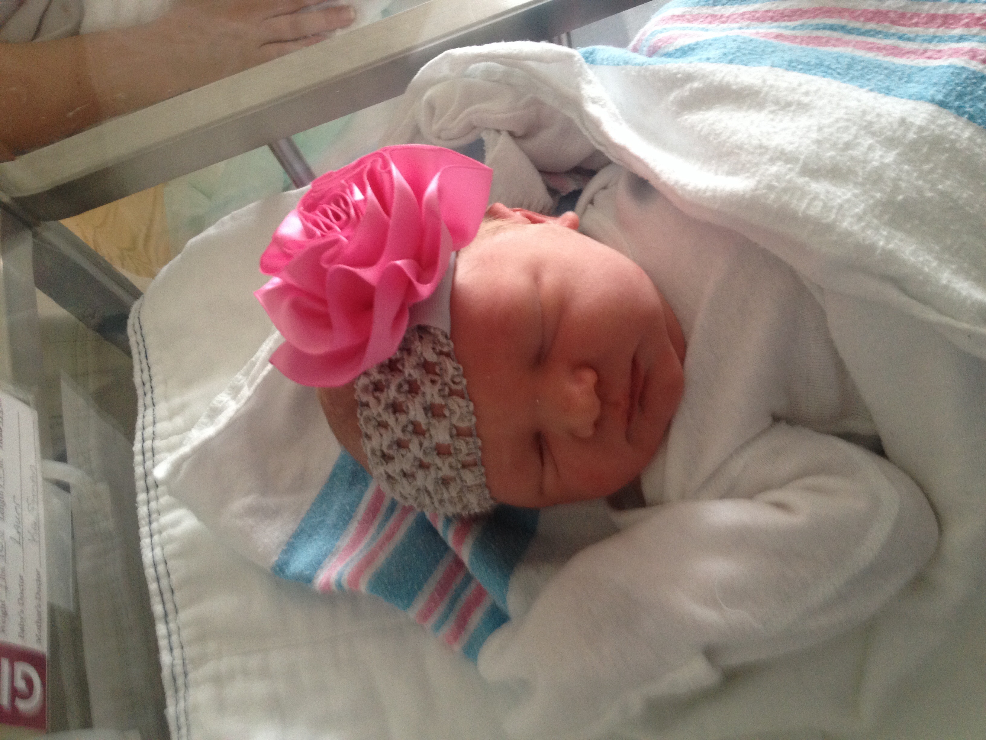 "Ellie" Elizabeth Cass 4/10/14 @1:40pm (39wk 2days) 8 lbs 2 oz, 20'' Vaginal with epidural