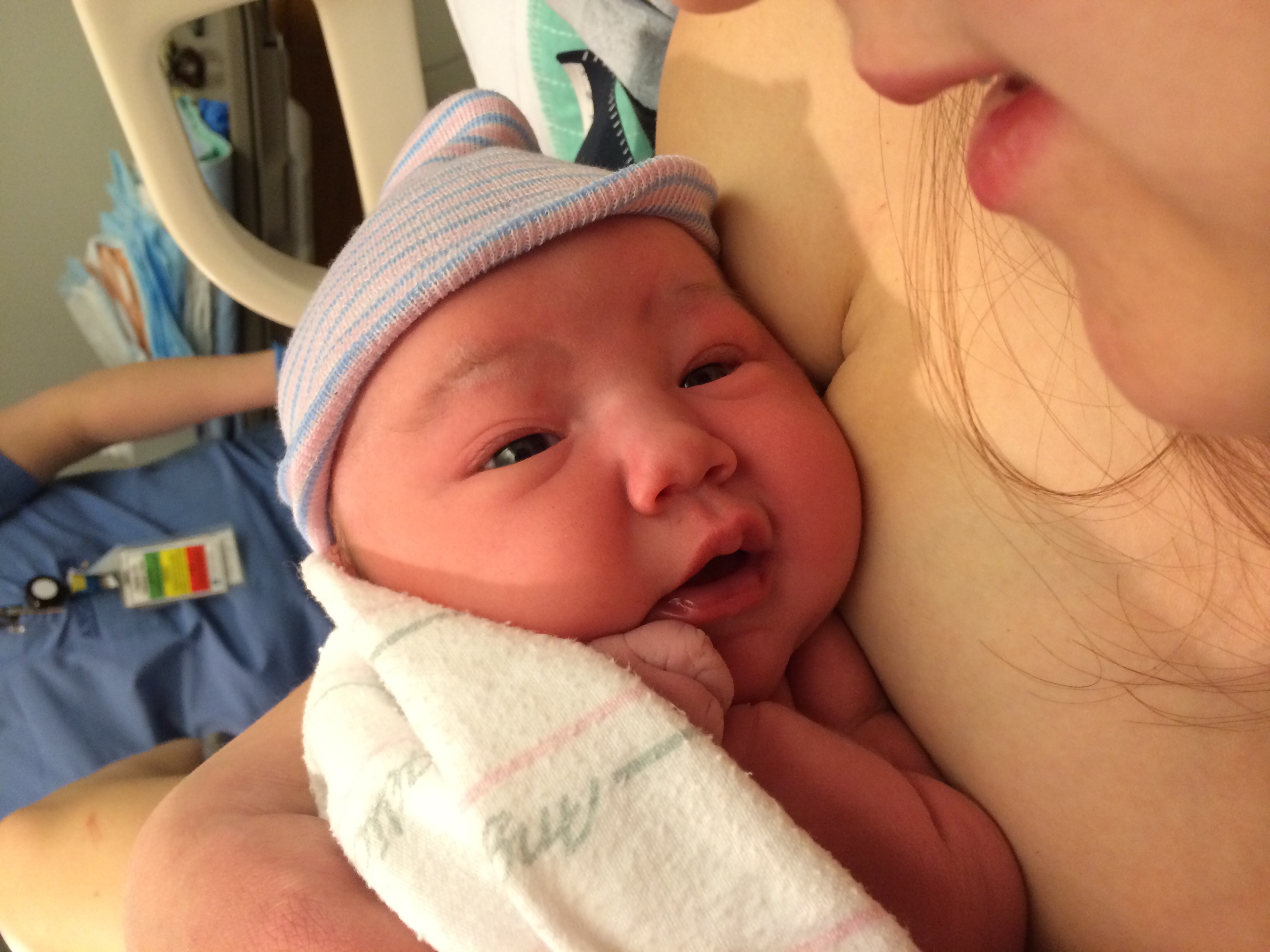Cooper Montgomery 8lbs 12oz 4/11/14 @ 40w4d Induction, Vaginal with Epidural 3hrs 45min from the start of induction to delivery. Everything went great!