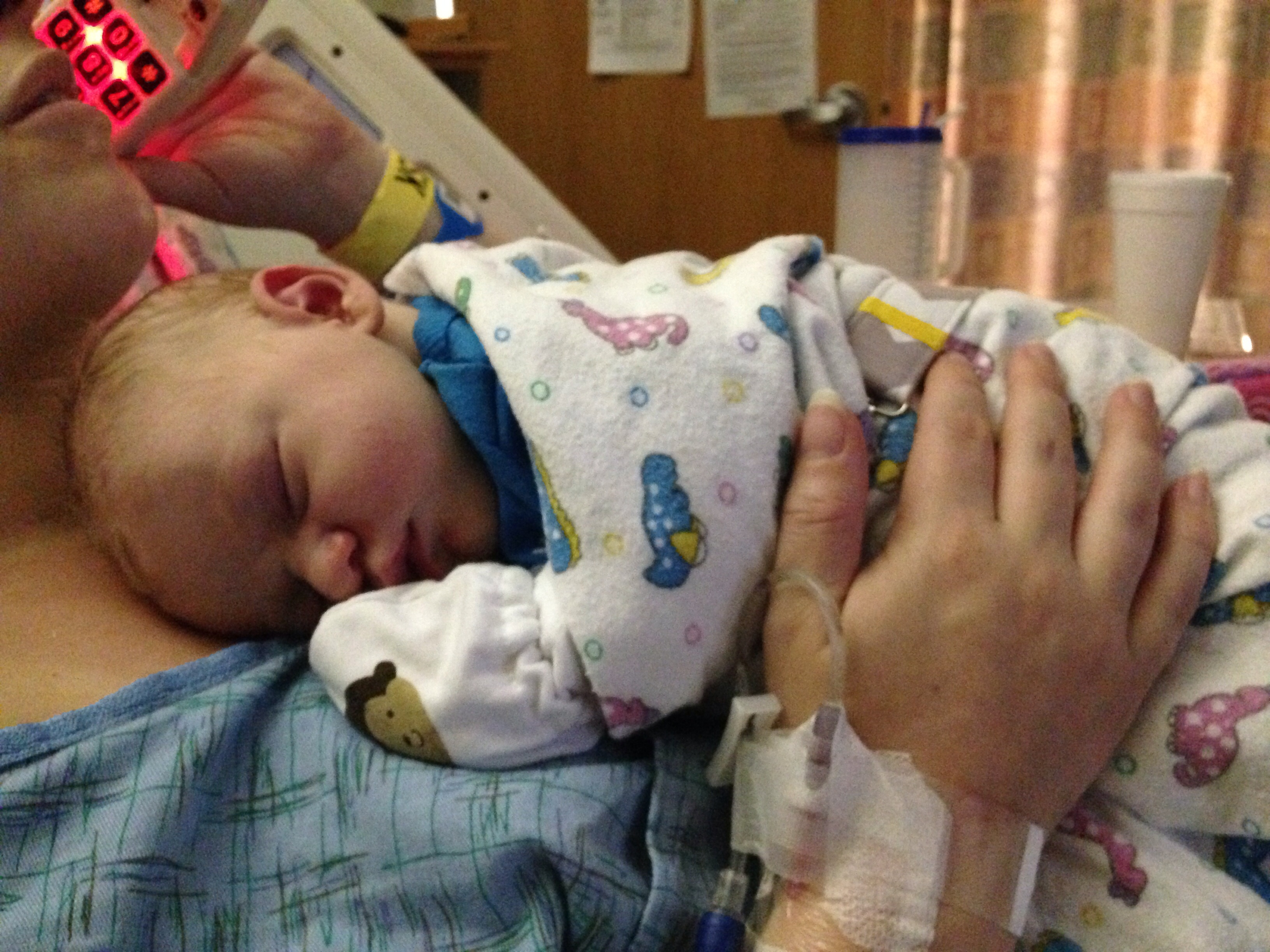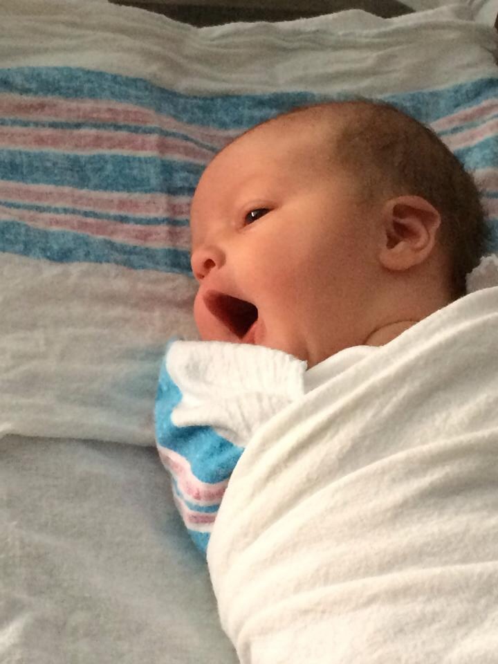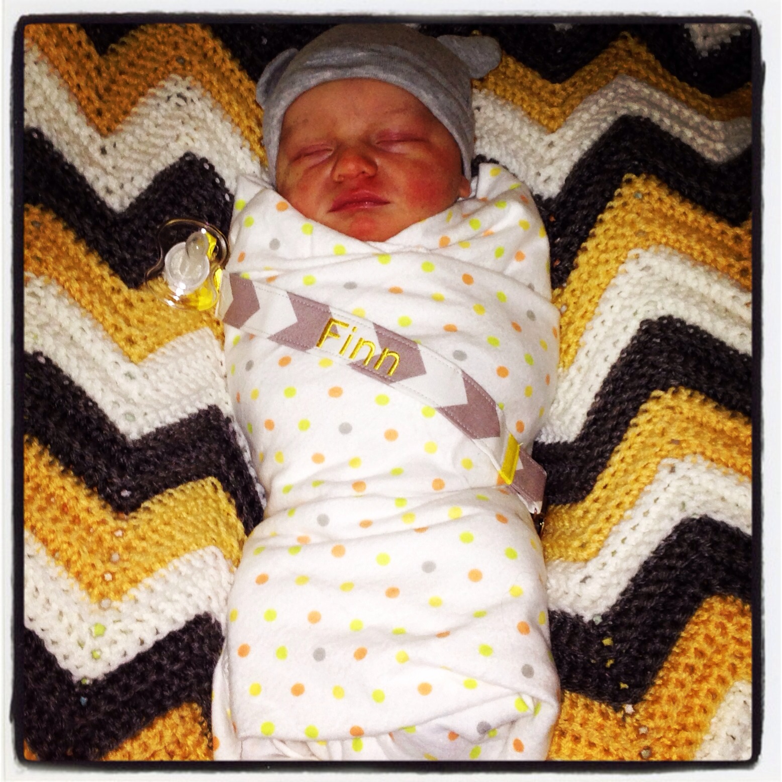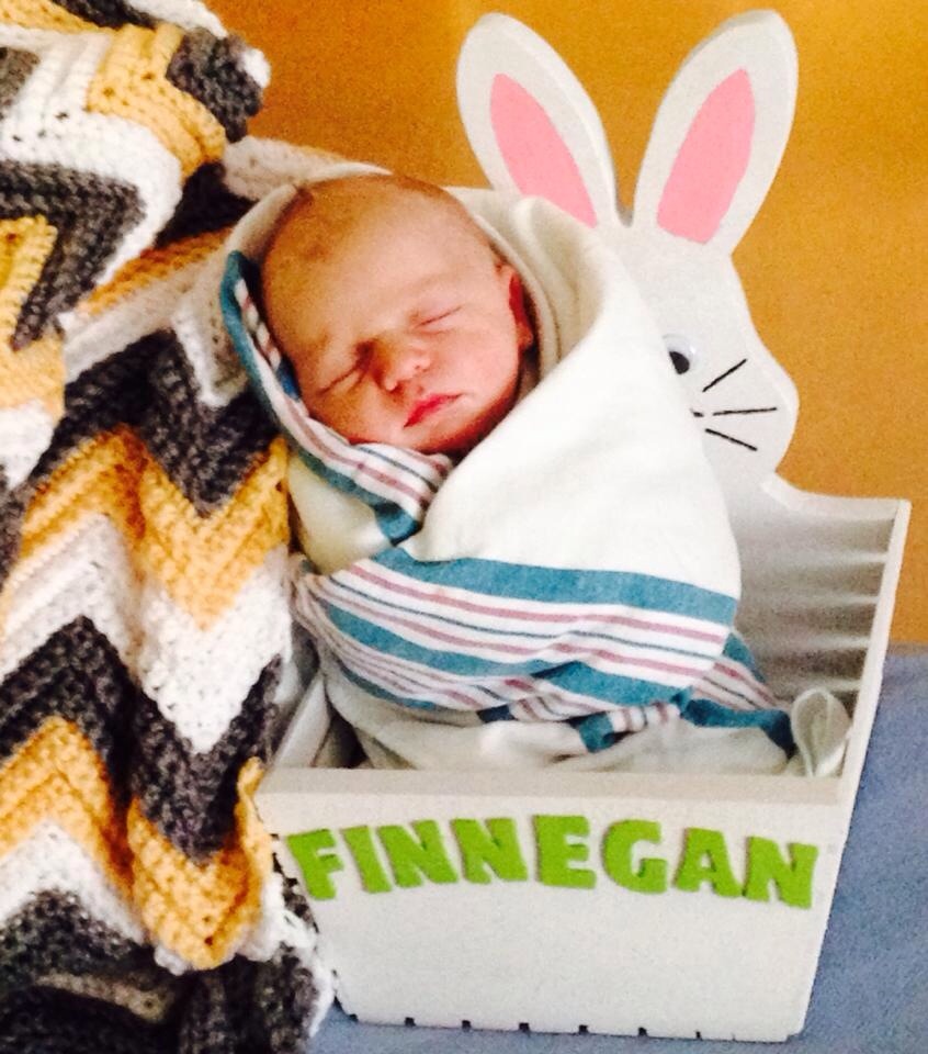 Baby's name: Finnegan John Born: April 14, 2014 at 11:59pm Birth weight and length: 7lbs 14oz and 19in attempted natural vaginal birth but accepted an epi after a few hours and pushed for a long, straight 3 hours. Ending in a c-section.