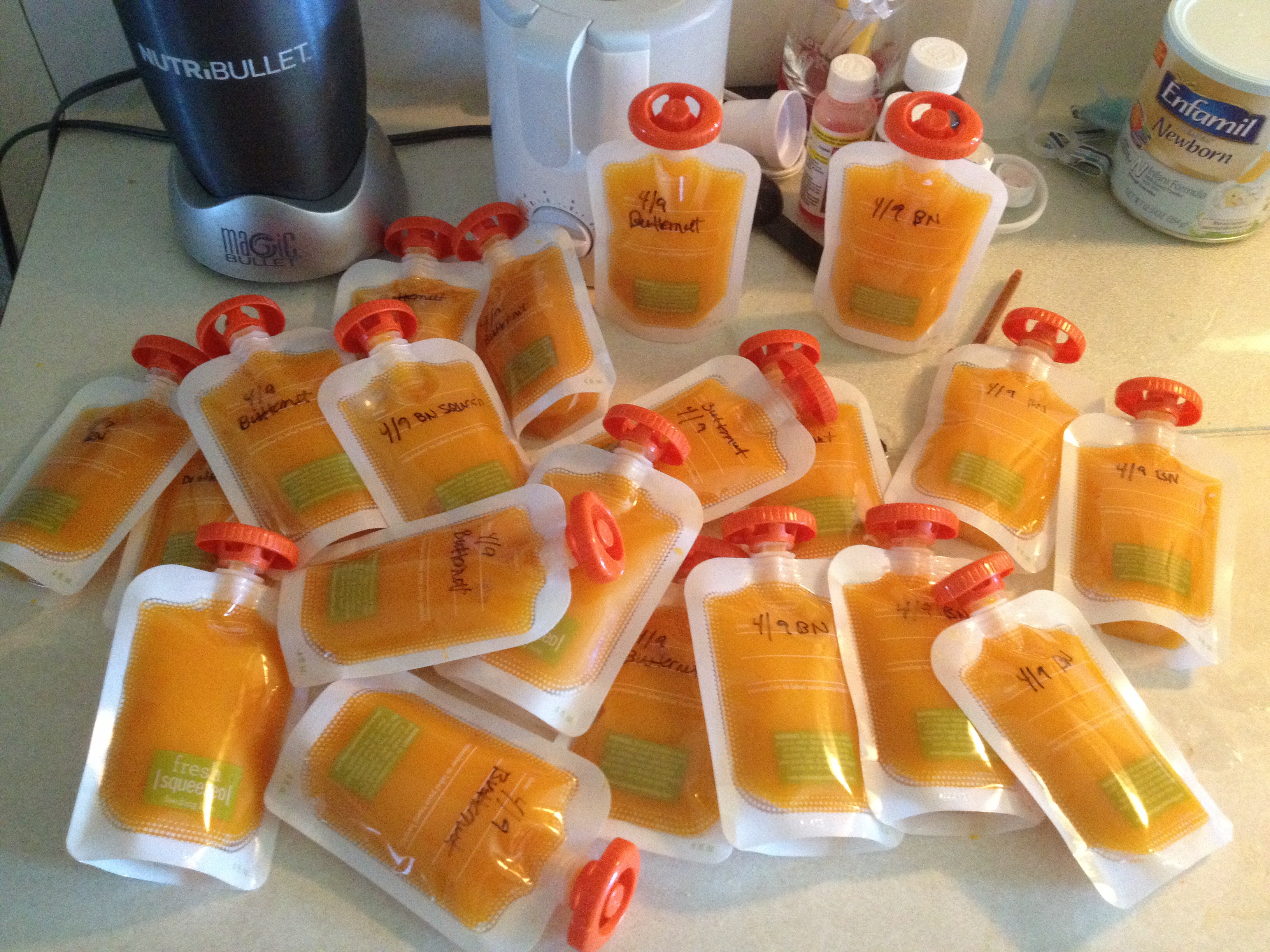• I have Annabel Karmel's (spelling?) book but I never followed it for the purees. I just cooked fruits/veggies then puréed them in the cuisinart then froze in ice cube trays