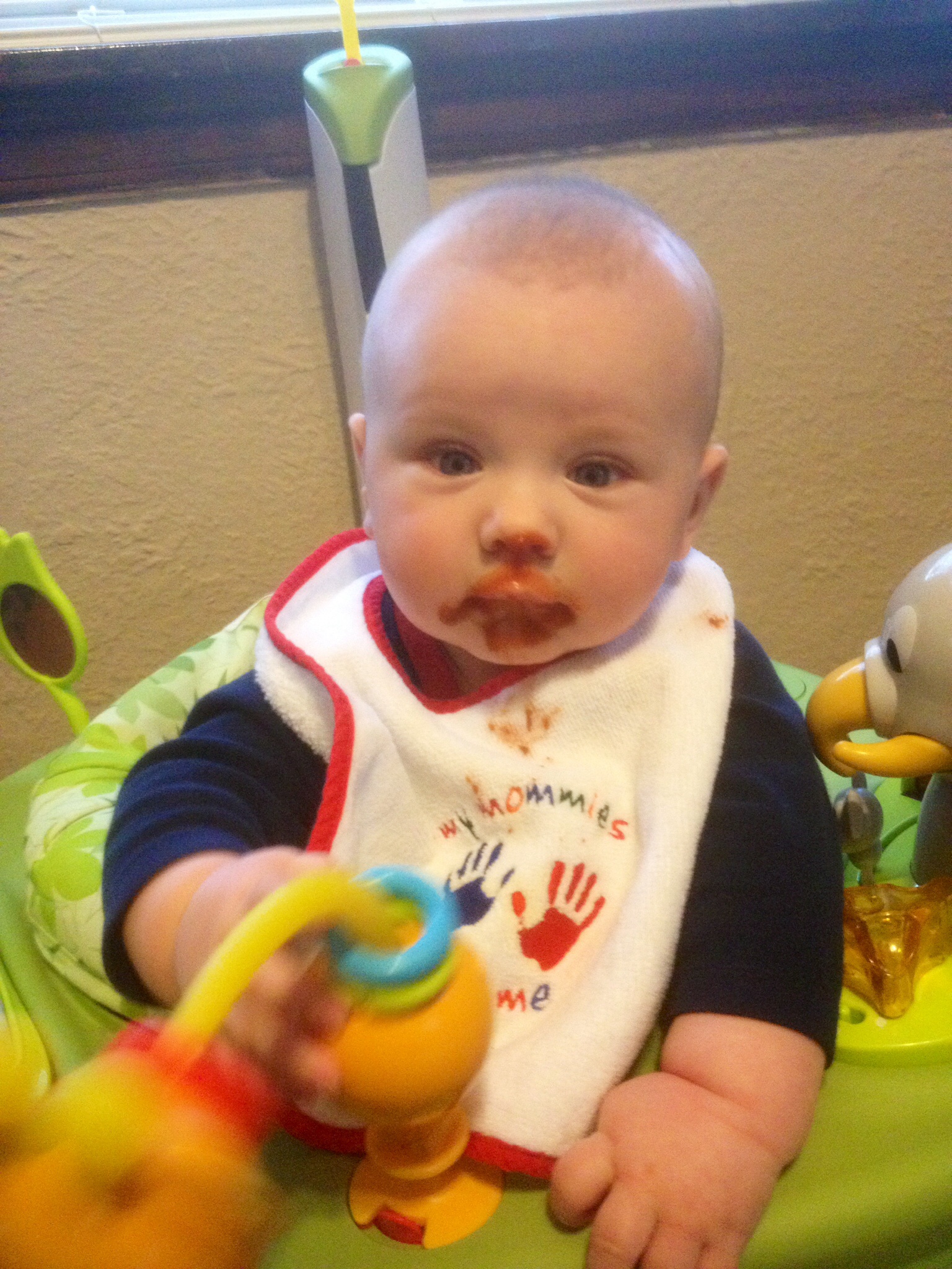Gabe is a handful these days and this weekend was exhausting (but still good)! He's really starting to express his opinions, mostly by throwing his head back and screaming when things aren't going as he'd like. Ugh. Ahhh well, at least he HAS opinions. We will work on how he expresses them.