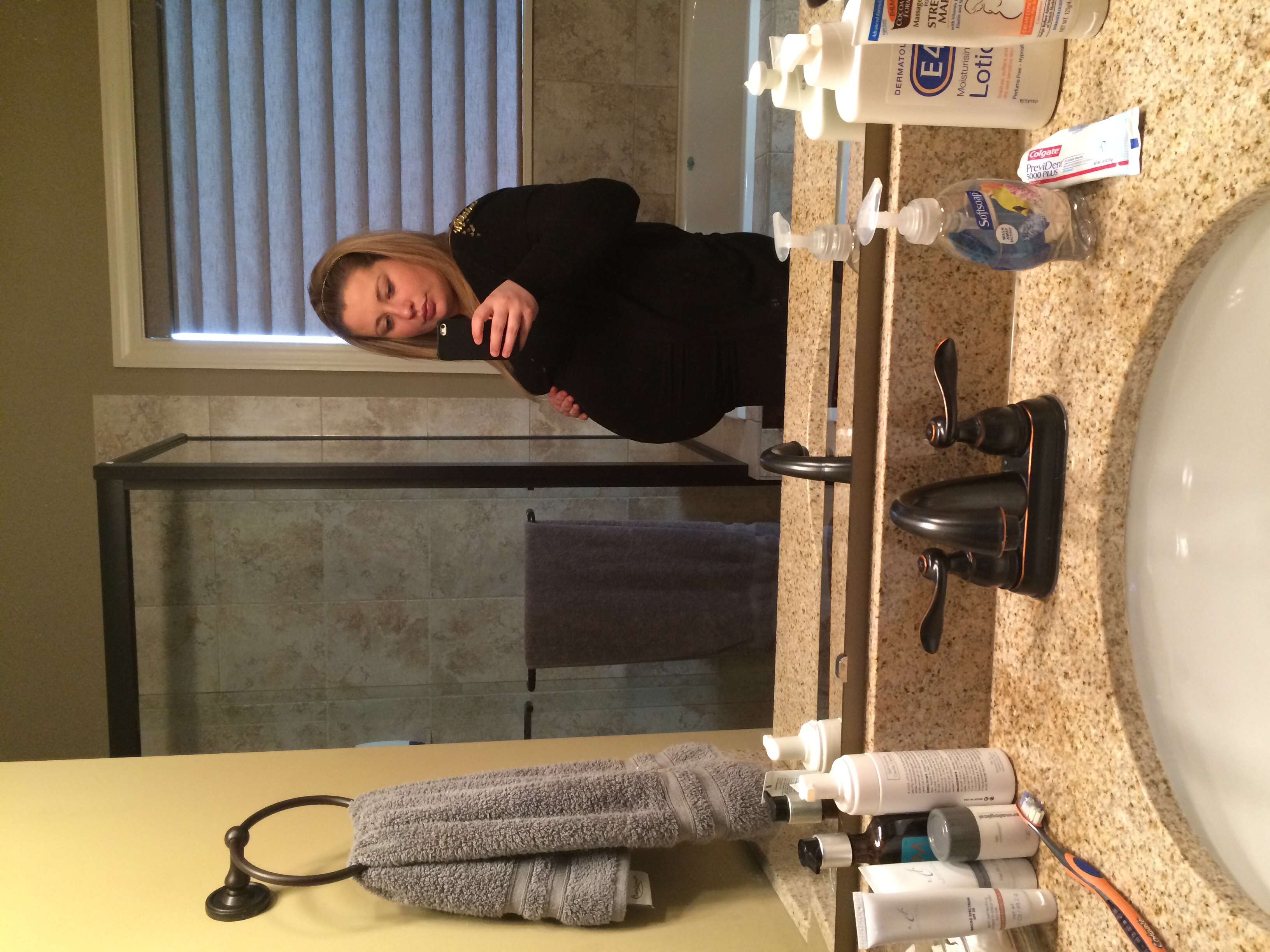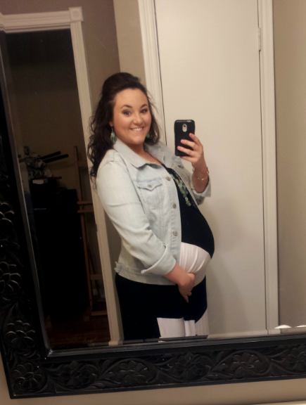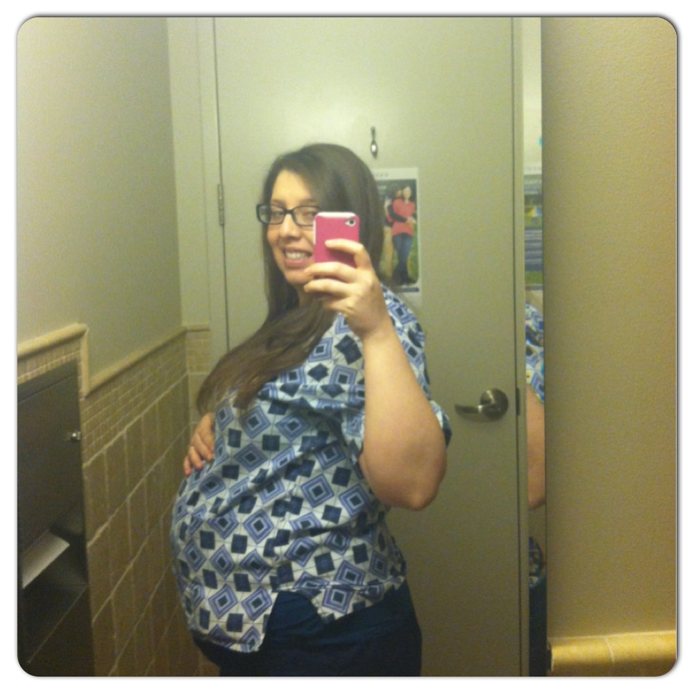 Modeling my new "can't live without" accessory. Honestly ladies, the belly/back supporter is the best $30 I've spent in forever. If you work on your feet I consider it an absolute necessity! The bump here is 29+4…