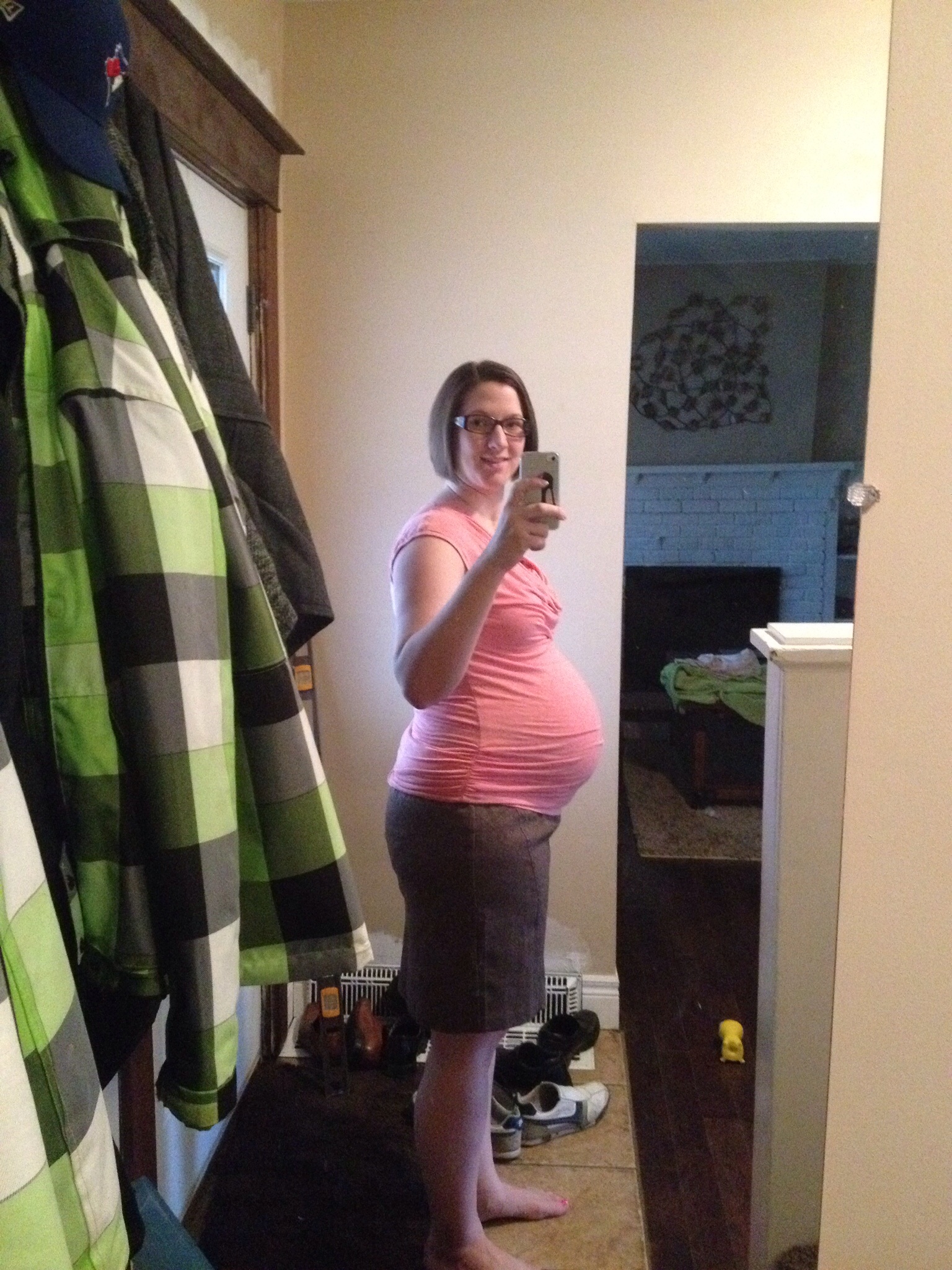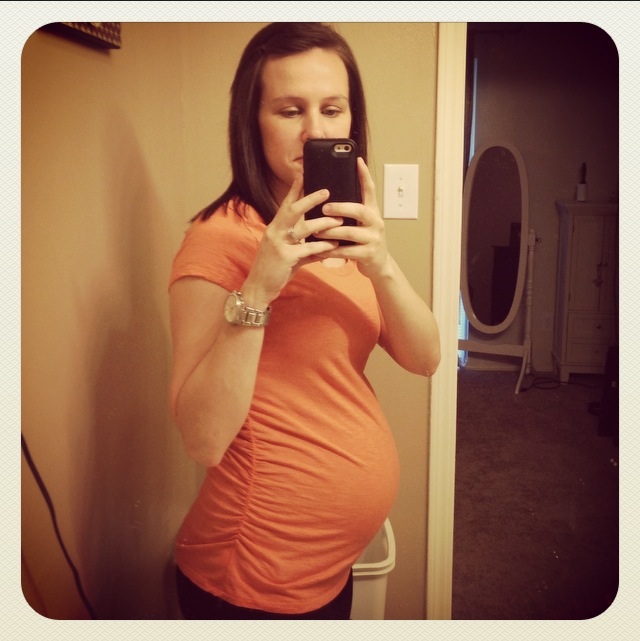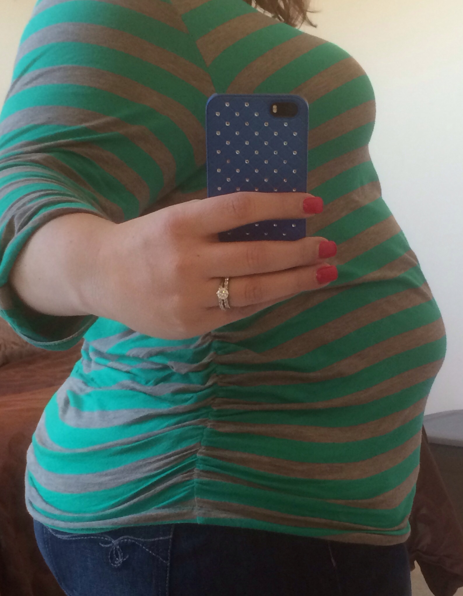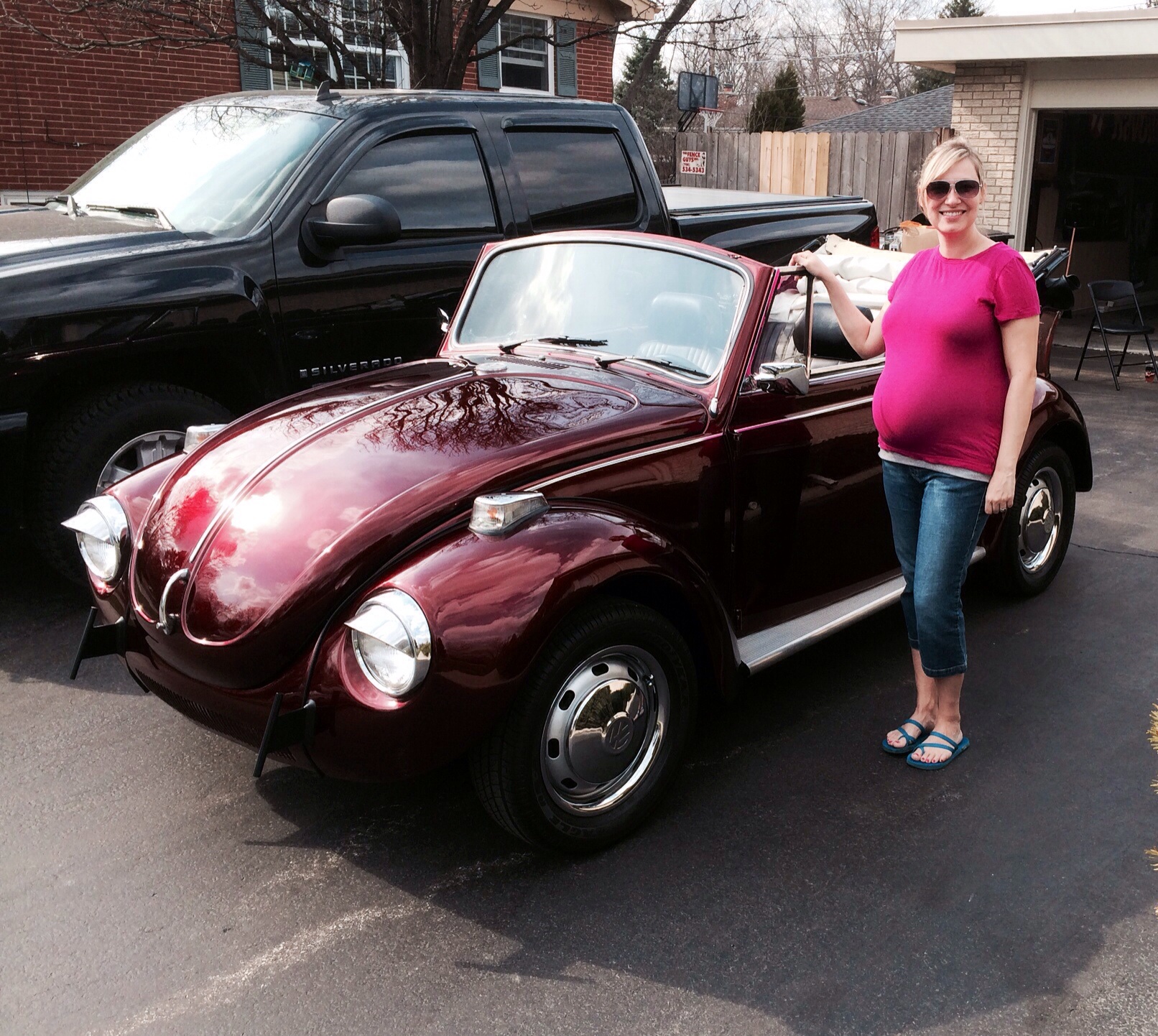 32 weeks... My husband restored this 1971 beetle for me and it was finally nice out this weekend (then it snowed 2 days later) so I was standing by it and he took this picture.