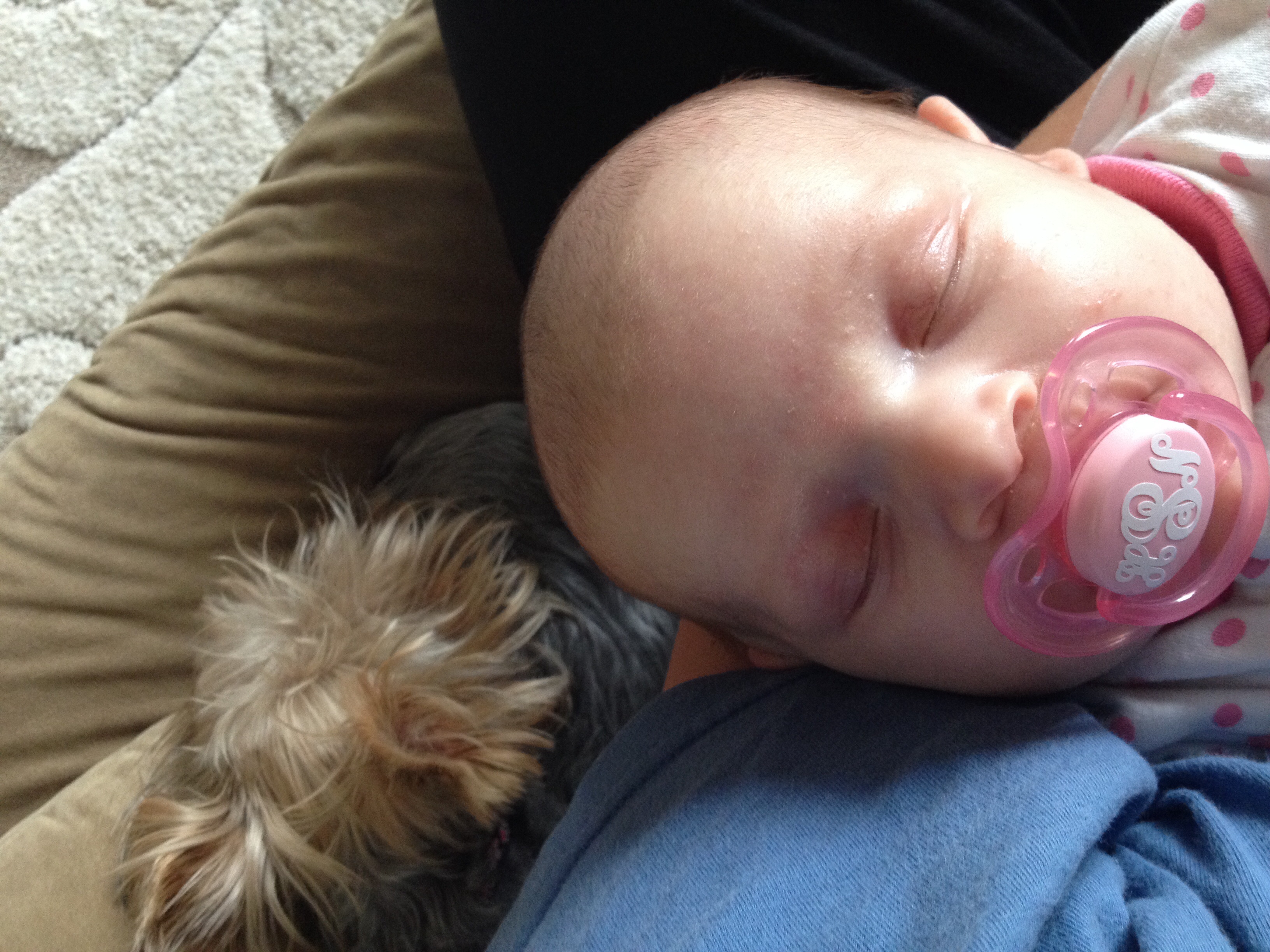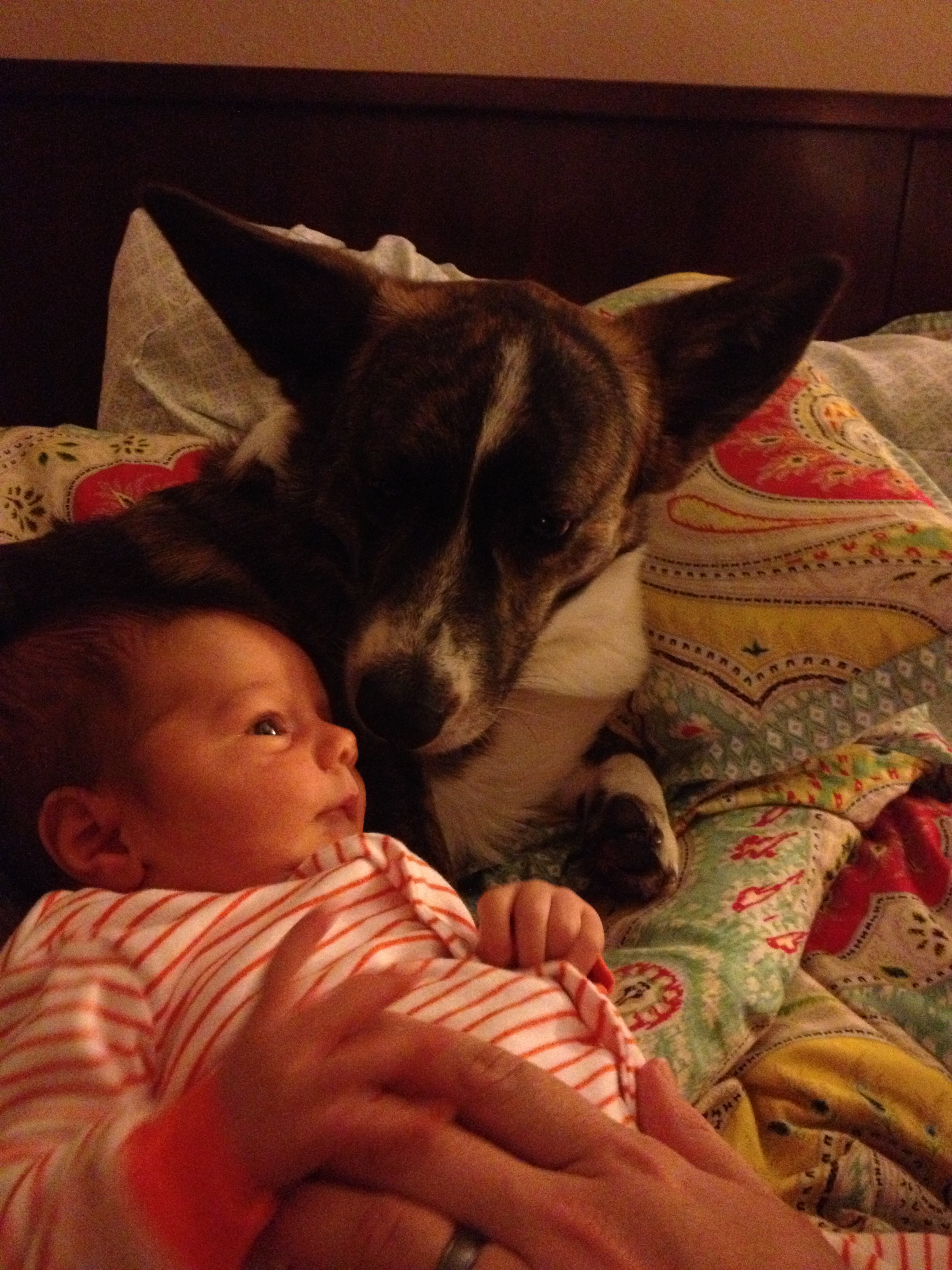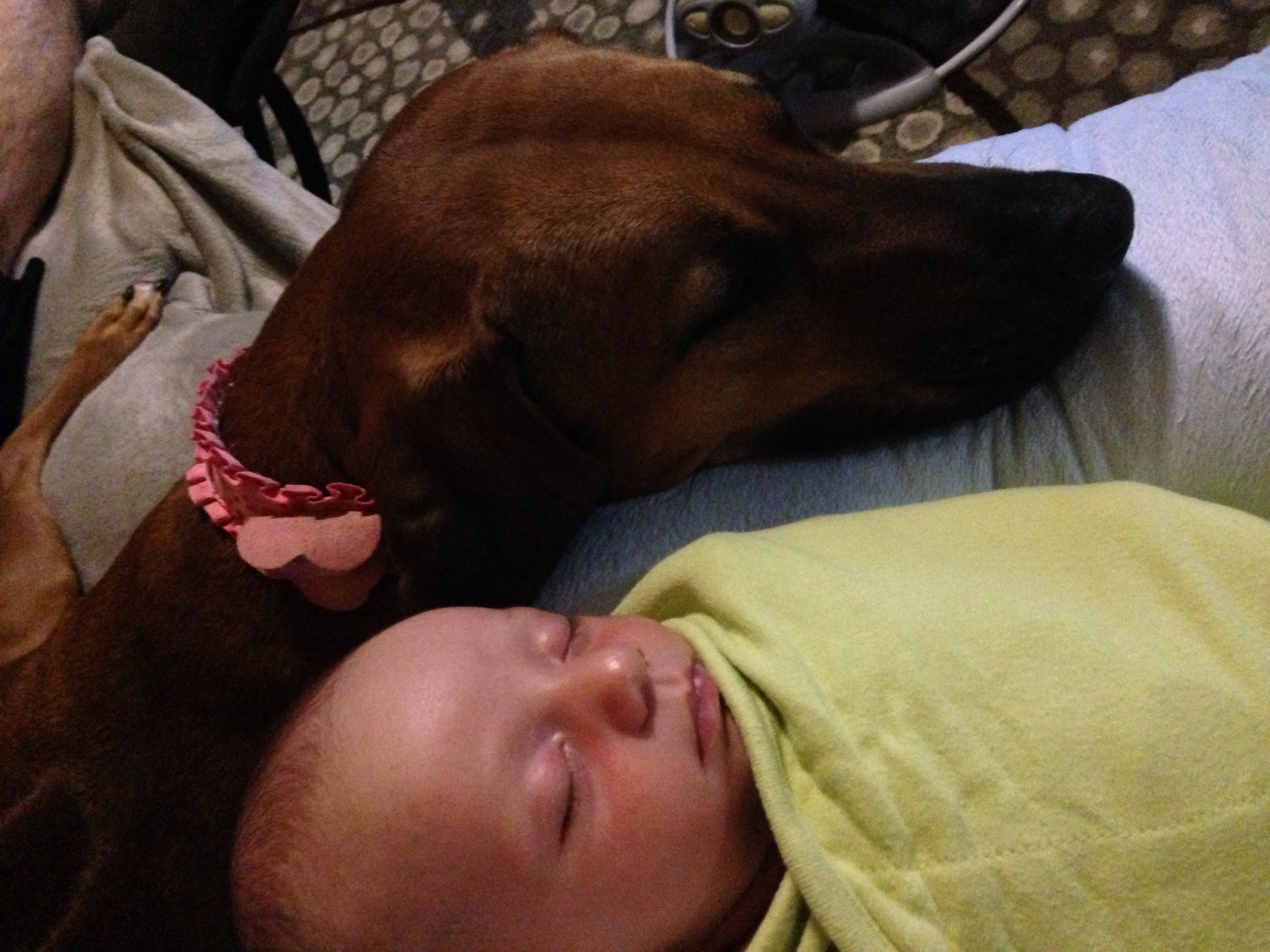 • I'll just sit as close to you as I can ( lexy STAYS on my lap no matter what im doing with Harper! ) can I have a turn ? I'm next . And I'm sure our oldest dog is saying " you brought another one home ?