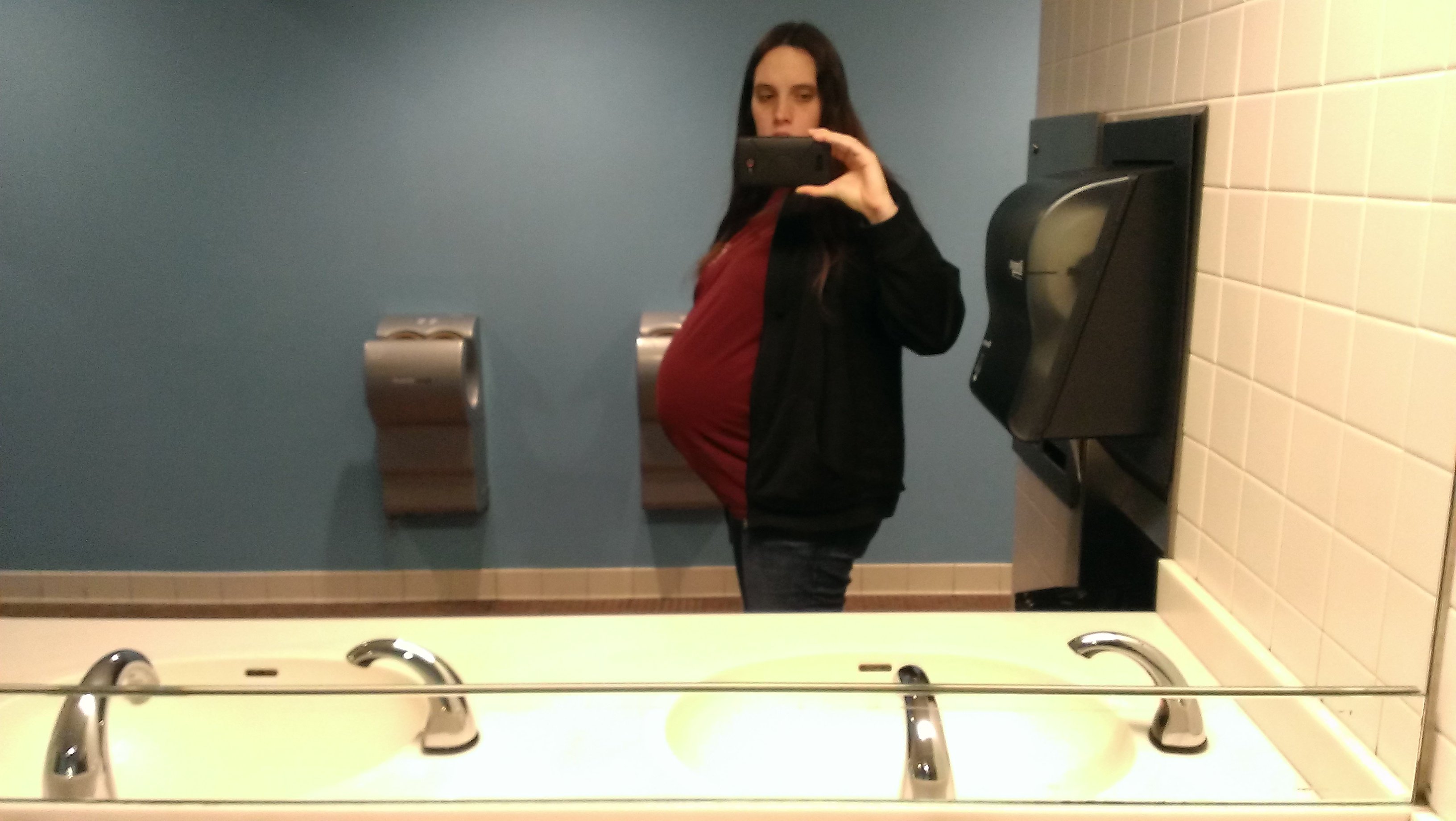 Work has kept me hopping these last few days, I cannot wait to go on mat leave! I'm also down to DHs shirts and what few pants fit me!!