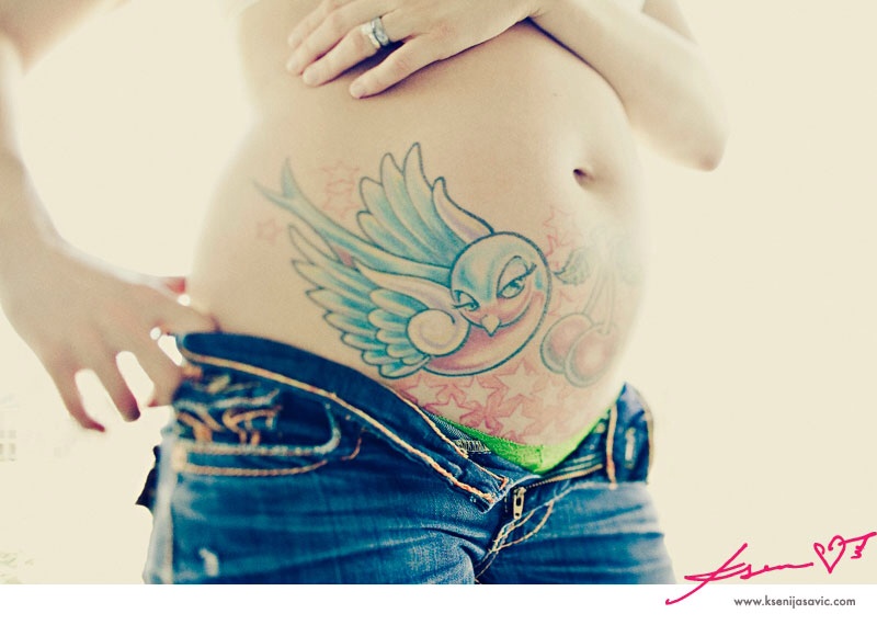 I have been looking for examples of tattooed maternity photos, and most of them have the couple decked out with full sleeves. I am trying to think of ways to show my SO's tattoos as well as my own, but still have it not look trashy! I have a tattoo on my side from my armpit area down to a little above my knee, and my boyfriend has one on his forearm, and a half sleeve. Any ideas, or would you be willing to show how your tattooed maternity photos turned out?